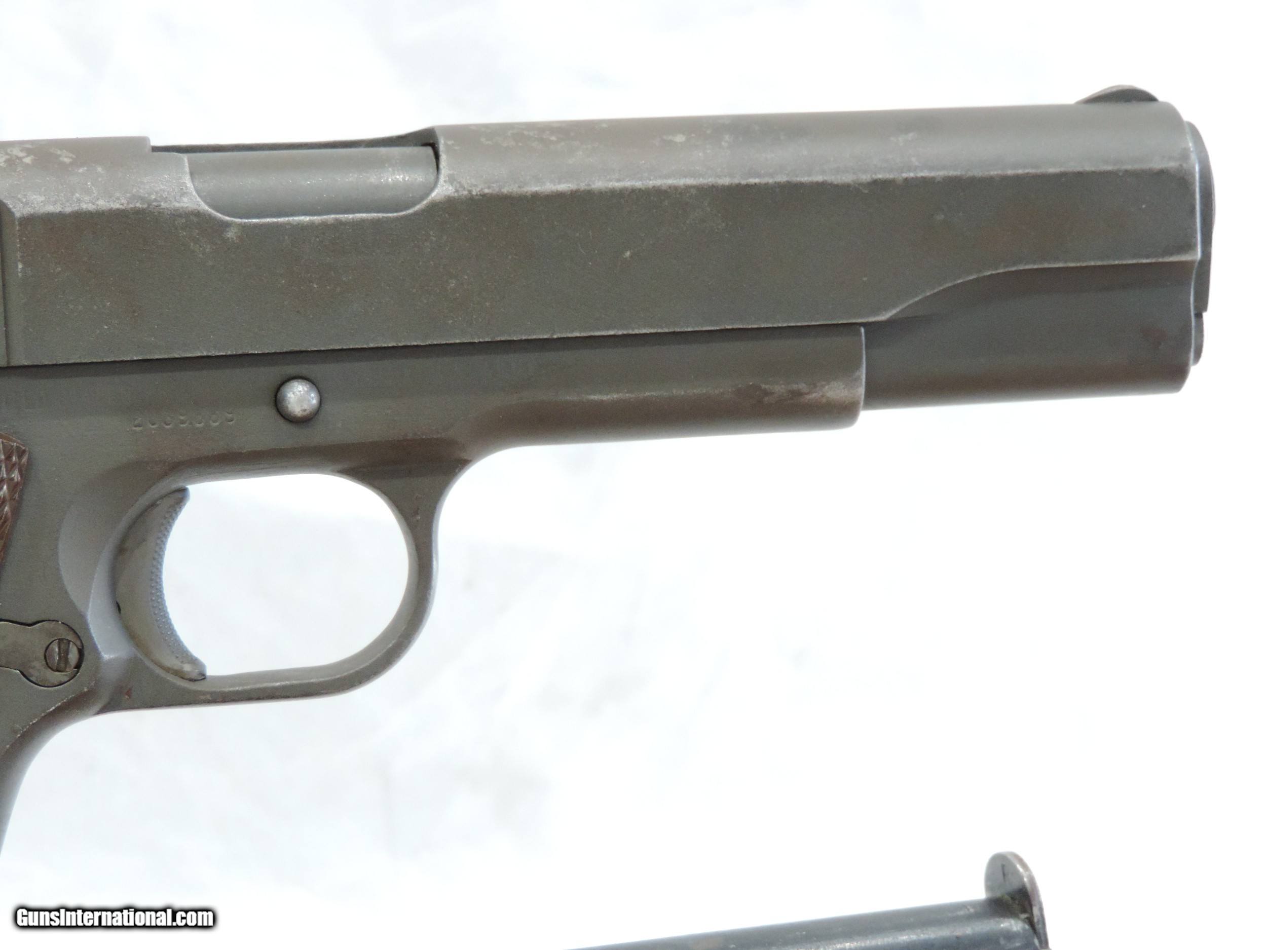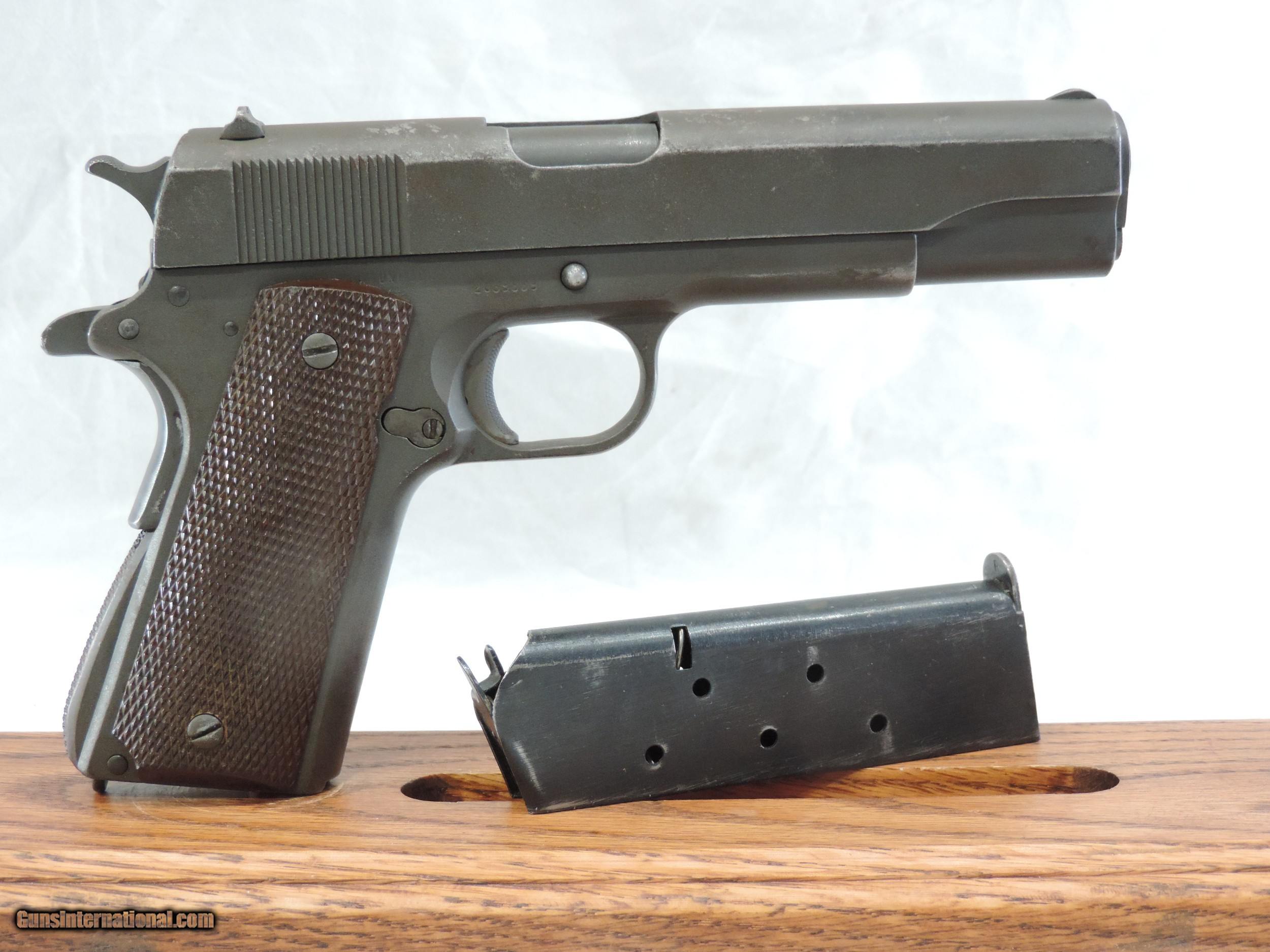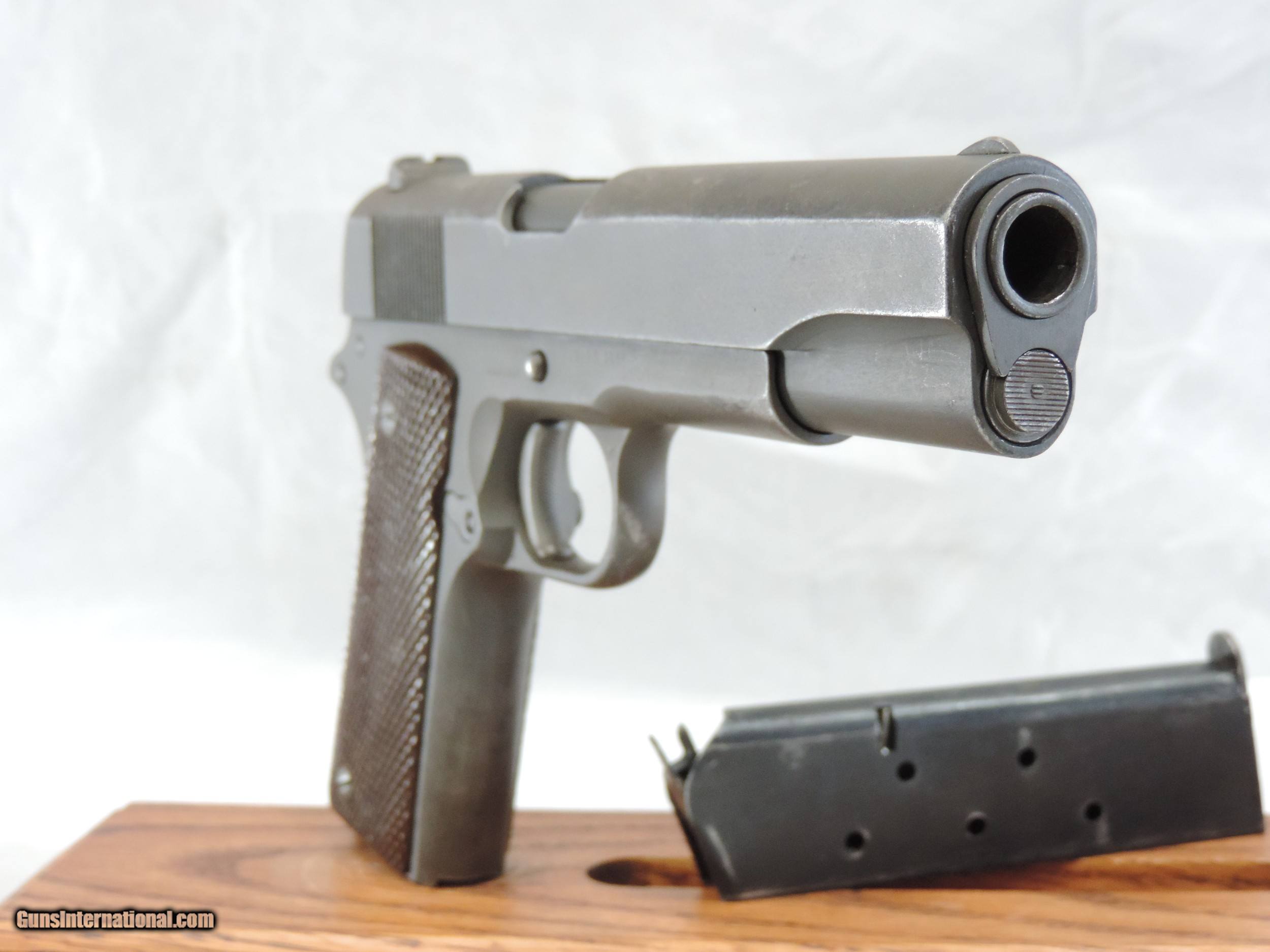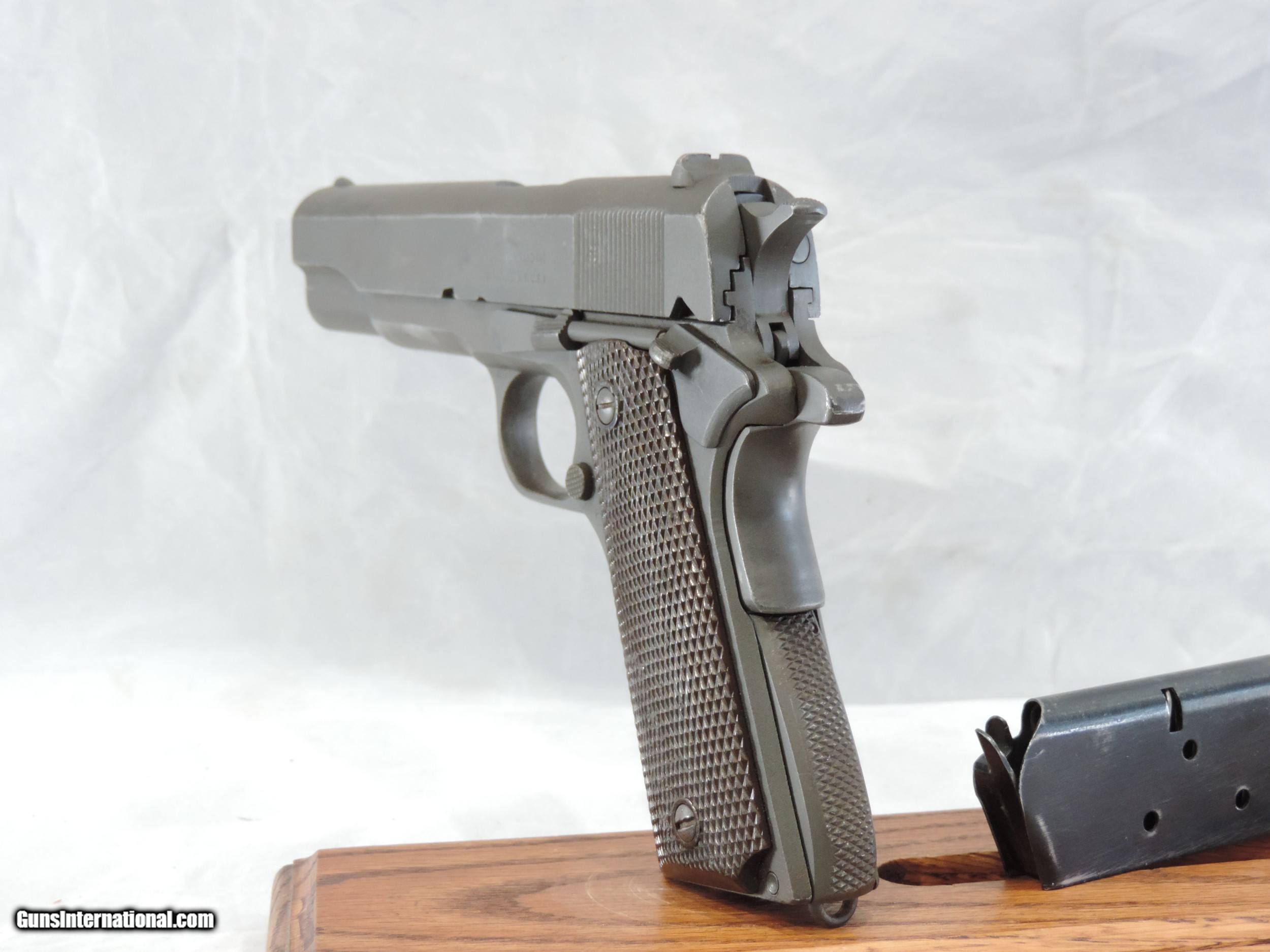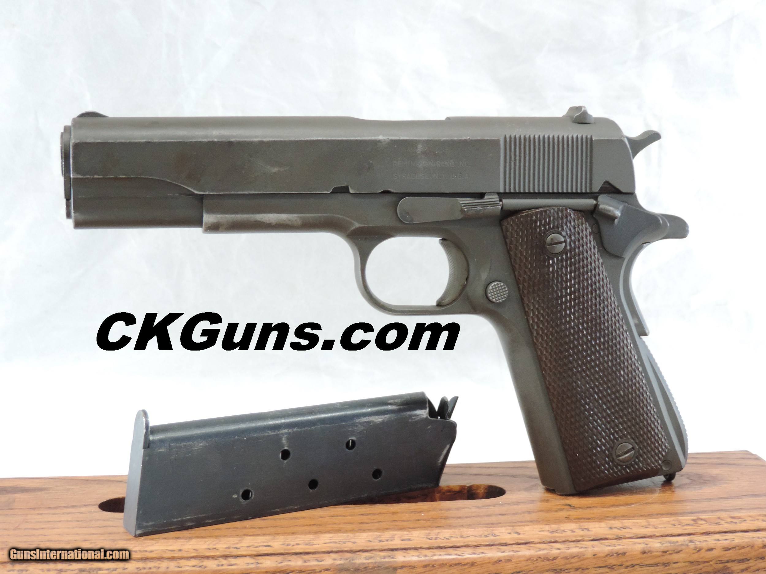Description: INV. 9738 REMINGTON RAND U.S. 1911 A-1, CAL. .45ACP SER. 2039889. THIS U.S. MILITARY ICON APPEARS TO HAVE SPENT IT'S SERVICE AS HOLSTER "HOLSTER QUEEN". THE ONLY BLEMISHES ON THE ARSENAL FINISH APPEARS TO BE FROM HOLSTER CONTACT AND THE USUAL SHARP EDGE SILVERING. THERE ARE NO RUST SPOTS OR SCRATCHES ANYWHERE. THE REMAINING FINISH WOULD WOULD RATE ABOUT 85%. ALL PARTS ARE CORRECT AND HAVE THE PROPER "P" AND THE "FJA" INSPECTOR'S PROOF. THE GRIPS ARE FLAWLESS AND ARE CORRECT "SMALL RING" TYPE. THE GRIP SCREWS ARE ALSO PERFECT. THE SLIDE RAILS BOLT FACE AND FEED RAMP SHOW LITTLE IF ANY USE.THE BORE IS SUNSHINE BRIGHT WITH RAZOR SHARP RIFLING. IT COMES WITH ONE CORRECT "R" (RISDON) STAMPED MAGAZINE. HERE'S GREAT CHANCE FOR THE CHAP THAT DOESN'T WANT TO SELL THE FARM TO GET A GOOD EXAMPLE THIS FAMOUS ICON. MODESTLY PRICED AT.....$2395.*** ***100% SATISFACTION GUARANTEED. To purchase this firearm or if you want to request more information contact us at: Email ckguns[at]ymail[dot]com Phone 201-512-0002 Cell 201-575-6838 FAX 201-215-4759 We accept most major credit cards. Prices shown are Discounted 3% for Cash or Check. The buyer must be familiar with all the laws governing the purchase and the ownership of firearms in their own city and state. The Yankee Armorer, Inc is not responsible for any failure to comply with or observe these laws. The Yankee Armorer, Inc will only ship after full payment and receipt of all required documents. Shipping: Add $35.00 for handguns, $45.00 for long guns. New Jersey buyers are subject to a 7% sales tax. The Yankee Armorer, Inc offers a 3 day inspection period with full refund upon return of intact firearm and in the original condition. The Yankee Armorer, Inc offers a no interest lay away program - 25% down; 25% in 30 days; 25% in 60 days; and full payment in 90 days. Any violation of this policy is subject to restocking and forfeiture of all payments. Any variation from this policy must be agreed to in advance. Unshipped Cancelled sales are subject to a 20% restocking fee. Be advised that all firearms sold by The Yankee Armorer, Inc. or the Gun Exchange, LLC (SELLER) are sold as collector’s items. They have not been fired or tested for safety and must be examined by a license gunsmith prior to use. By purchasing any item from the (SELLER), you are agreeing to hold the (SELLER) free from any damages or lawsuits of any nature. Any item left for transfer or storage will be charged to $25.00 per month, per item from the day of its receipt. Any variation from this policy must be agreed to in advance. Store hours 10:00 am to 5:00 pm Tuesday -Saturday. It's always best to call for appointment. Store 201-512-0002, cell 201-575-6838. SOLD Curio/Relic: Yes |