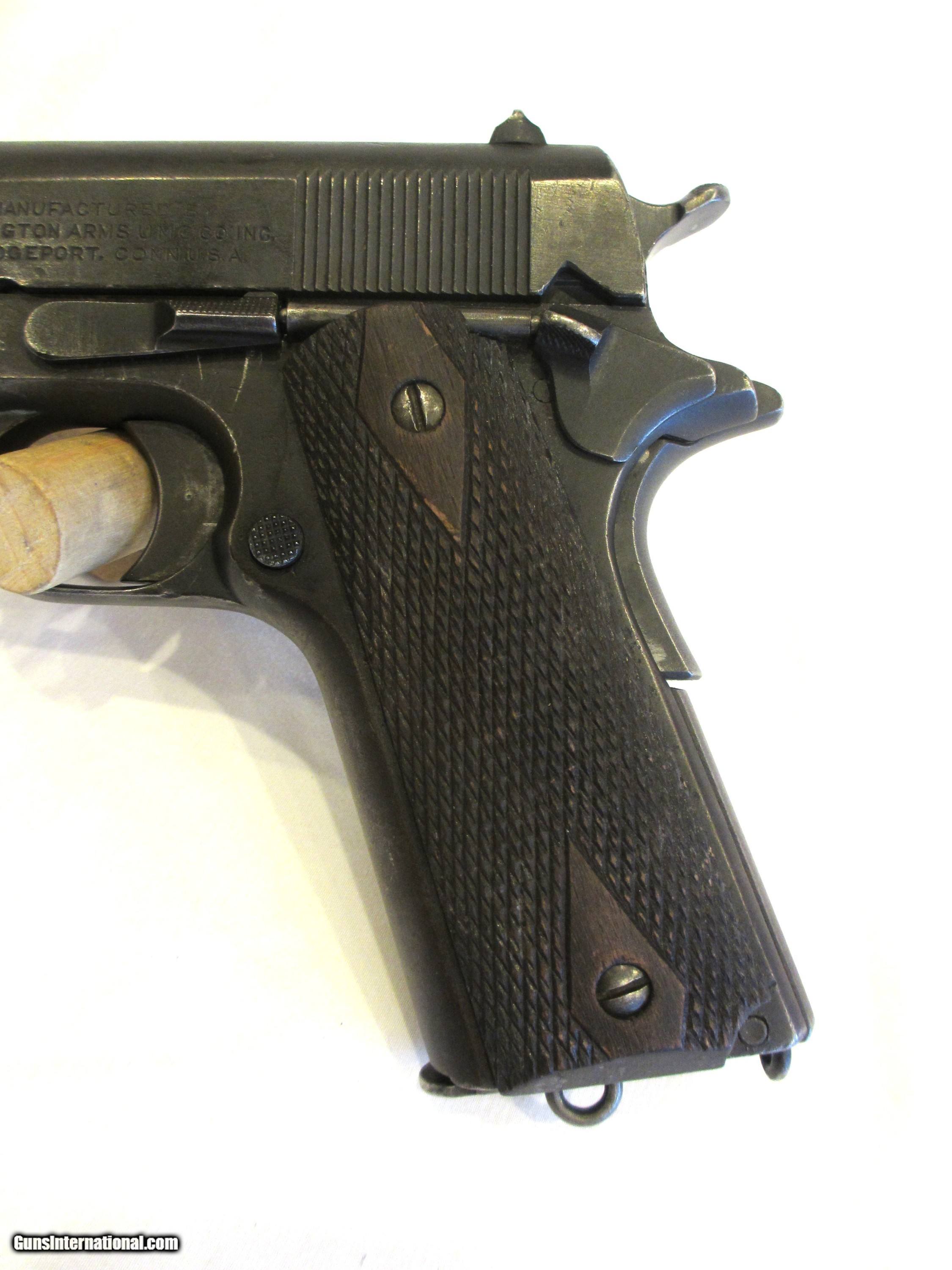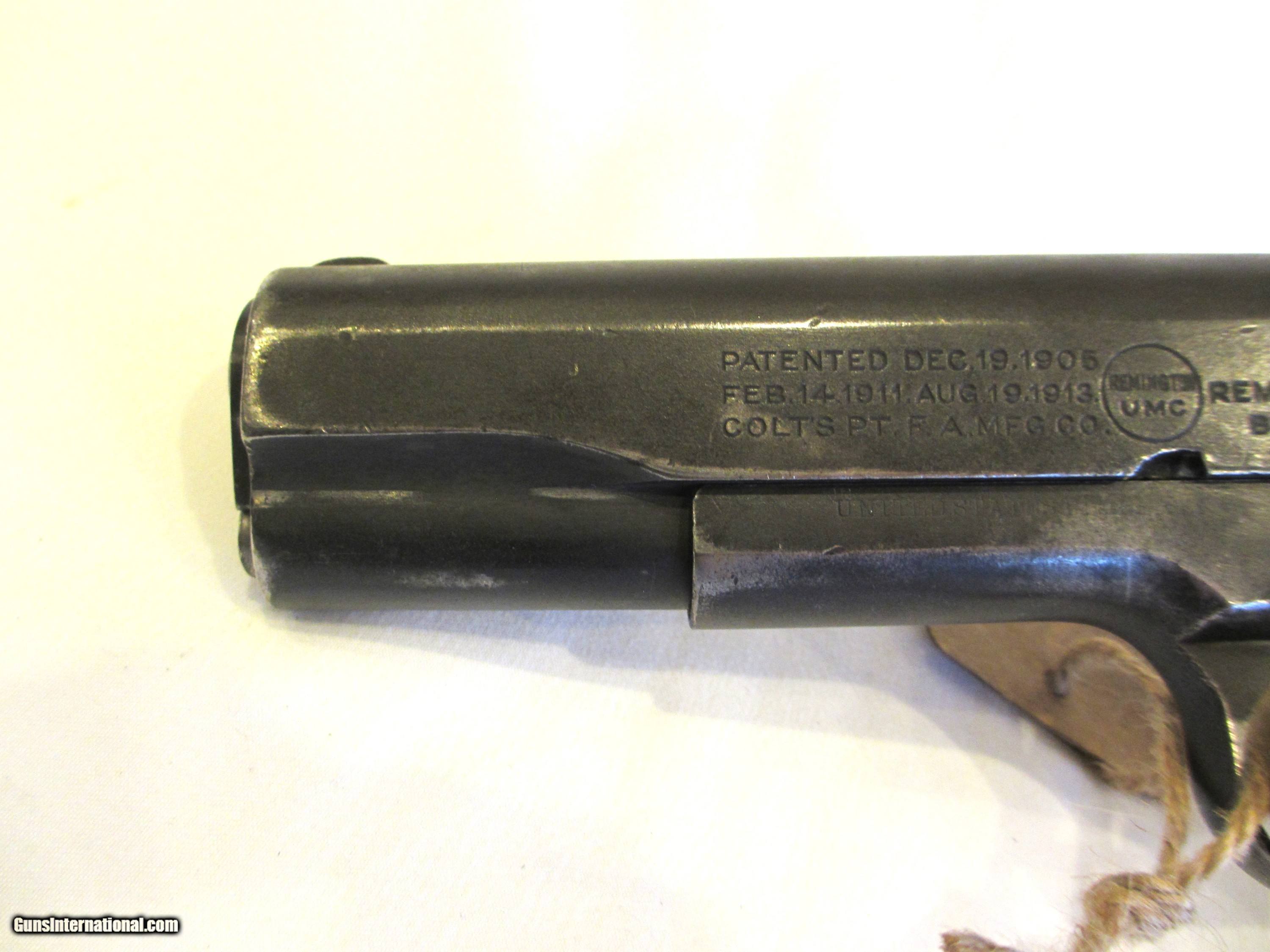 Description: Remington UMC Model 1911 – U.S. Army Serial: 2390 Early Remington UMC 1911 U.S. Army pistol. Slide and frame are both Remington UMC. Serial number places this pistol among the early U.S. military contract 1911s. Condition reflects age and service history. Highly desirable early military 1911 from one of the original wartime manufacturers. Call RW Outdoors at 406-842-5271 with any questions.