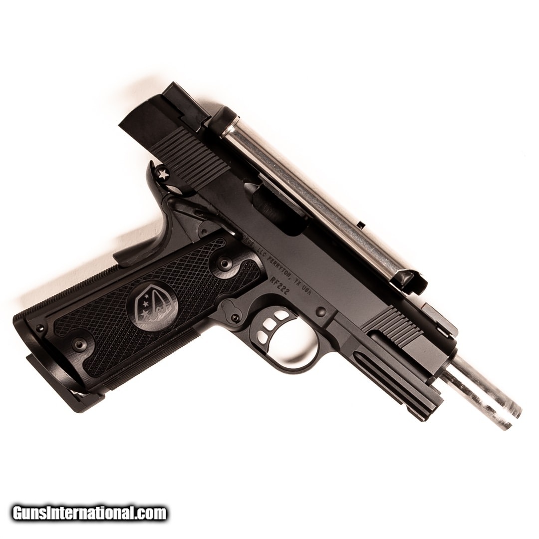 Description: Guns Listing ID: 655435 The Republic Forge 1911 Raider is a custom built, premium 1911 that has more modern and tactical features, all while maintaining the classic ergonomics that have kept this century old design relevant for so long. This handgun features two 8-round magazines and the original case with the manual. Get the best bang for your buck when you get a Certified Used Firearm . When you see the Certified Used stamp on any of our firearms, you can be confident that you’re getting exactly what you want – a gun only in very good to excellent condition and held to the highest quality standard. All Certified Used Guns come with a ‘no questions asked’ return policy . PLUS, ALL CERTIFIED USED GUNS SHIP FREE! SOLD Manufacturer: REPUBLIC FORGE Model: 1911 Raider Caliber Info: .45 ACP Condition: Used - Non-Certified Barrels: 5 BARREL Finish: BLACK |