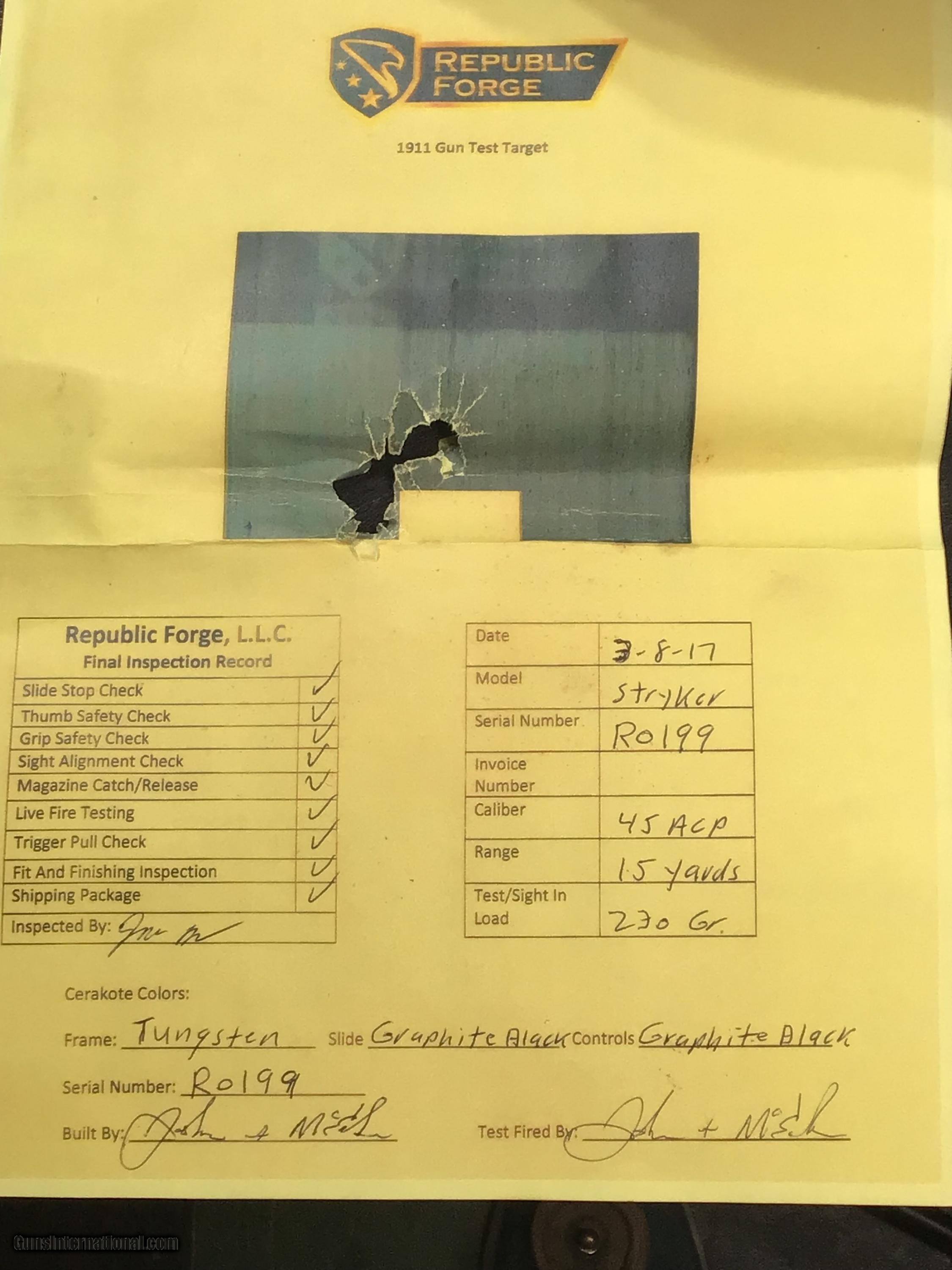 Republic Forge Stryker Commander, .45 acp, NIB Custom Hand Built In Texas, Trades Welcome!