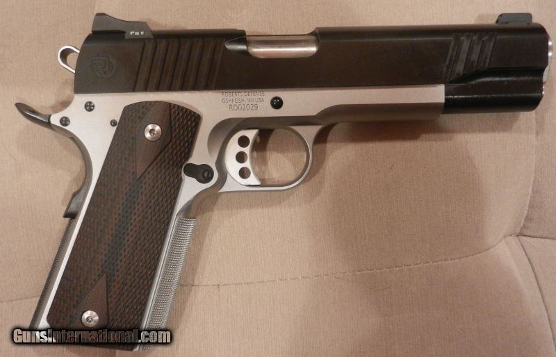 Description: I have a like new Roberts Defense SuperGrade 2-Tone, .45ACP. These guns were made in Oshkosh, Wisconsin. Purchased new in 2017 it has been fired approximately 30 times, plus whatever they did at the factory. It has a 5" barrel and satin stainless steel frame with a black cerakoted stainless steel slide, 3-hole trigger and single side safety. This is a premium custom 1911 with slide and frame hand lapped to a precise fit with four grits, coarse, medium, fine and ultra fine. Comes complete with a soft case, 2-8 round magazines, manual, firearm lock, 3 small tubes of Slip 2000 lubricand and a disassembly tool. I shot several other custom 1911's, including a Les Baer and purchased this gun as I felt it was equal if not better in quality and accuracy. The trigger on this pistol is very nice. I will pay shipping and insurance to your FFL. Please contact me with any questions. SOLD Handgun Caliber: .45 ACP (.45 Auto) Manufacturer: Roberts Defense Model: Super Grade 2-Tone Serial Number: RD02029 Barrel Length: 5 Condition: Excellent Metal Condition: Excellent Wood Condition: Excellent Bore Condition: Excellent Case: Factory Soft Item Location: New Berlin, WI |