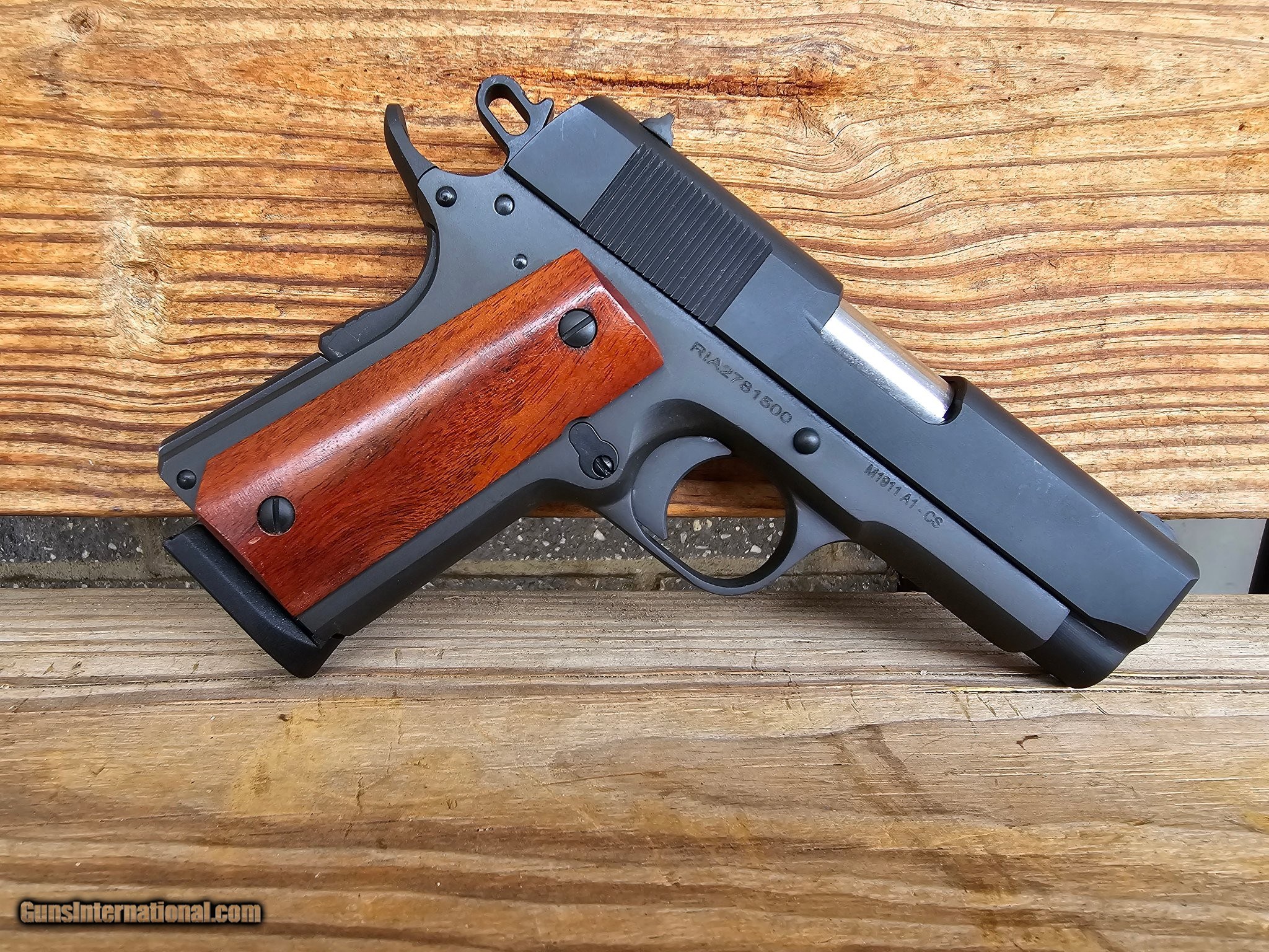 Description: Guns Listing ID: 600567 This Rock Island Armory M1911-A1 GI Standard CS in .45 ACP is a compact, no-nonsense 1911 built for reliability and classic performance. Featuring the traditional GI-style look and a shortened Commander-style barrel, this pistol is a solid choice for carry, range use, or as an affordable entry into the 1911 platform. Condition Overview: Caliber: .45 ACP Condition: Good — functions properly with normal signs of use Includes the original box Wooden grips show small handling marks, purely cosmetic Slide, frame, and bore remain in solid condition with no functional issues Features: Forged steel construction GI-style sights 3.5\" compact/Officer-length barrel Parkerized finish Classic checkered wood grips Series 70-style action for a cleaner trigger pull Why You’ll Like It: Affordable, dependable 1911 from a proven manufacturer Compact size makes it suitable for carry Classic GI look and feel with a robust steel build Great option for first-time 1911 owners or anyone wanting a reliable .45 This RIA M1911-A1 GI Standard CS is a solid, well-kept pistol with its box included—ready for the range, carry rotation, or to round out a 1911 collection. Manufacturer: ROCK ISLAND ARMORY Model: M1911-A1 GI STANDARD CS Caliber Info: .45 ACP Condition: Used - Non-Certified Barrels: 3.5" BARREL Action: SINGLE ACTION Finish: black Weight: 2.36 LBS Price: $379.99 Contact Seller |