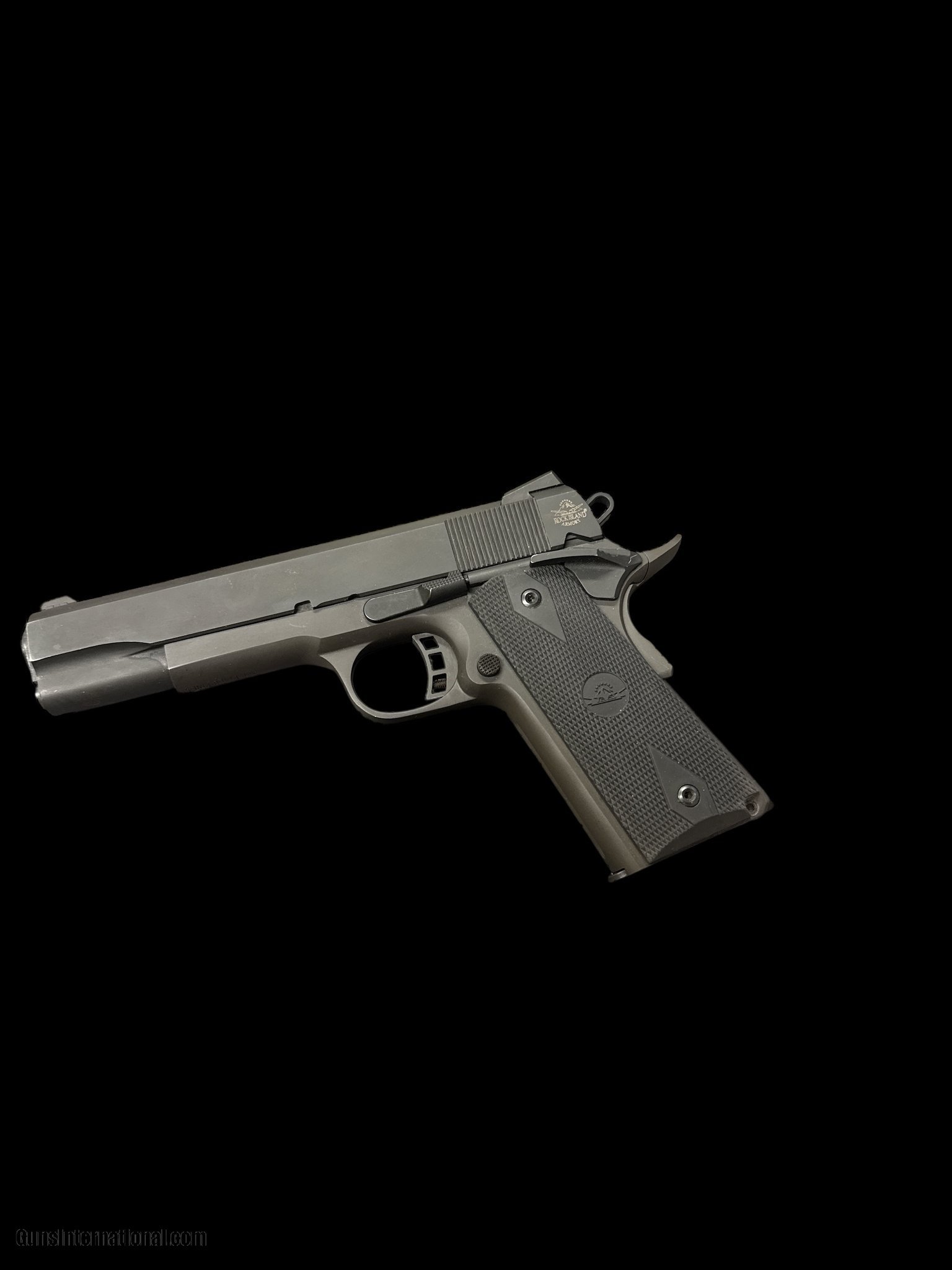 Description: Guns Listing ID: 602045 his pre-owned Rock Island Armory M1911 A1 FS chambered in .45 ACP delivers classic 1911 design with proven, no-nonsense performance. Built on a full-size steel frame, this pistol offers the solid weight and balance that shooters expect from a traditional Government-style 1911. The pistol features a 5-inch barrel, single-action trigger, and standard GI-style controls. Its parkerized finish gives it a rugged, utilitarian look while helping protect against wear. The fixed sights are simple and functional, staying true to the original A1 pattern. The slim grip panels and straight-forward ergonomics make it comfortable to shoot, especially for those who appreciate the familiar feel of a classic 1911 platform. Chambered in .45 ACP, this firearm delivers the authoritative performance the cartridge is known for, making it suitable for range use, home defense, or collection purposes. This example is pre-owned and shows typical cosmetic wear consistent with normal use, such as minor finish wear and handling marks. It has been inspected for function and is in good working condition. If you’re looking for an affordable, full-size 1911 with a traditional look and dependable operation, this Rock Island Armory M1911 A1 FS offers solid value and timeless appeal. Manufacturer: ROCK ISLAND ARMORY Model: M1911 A1 FS Caliber Info: .45 ACP Condition: Used - Non-Certified Barrels: 5" BARREL Action: SEMI AUTOMATIC Finish: black Price: $399.99 Contact Seller |