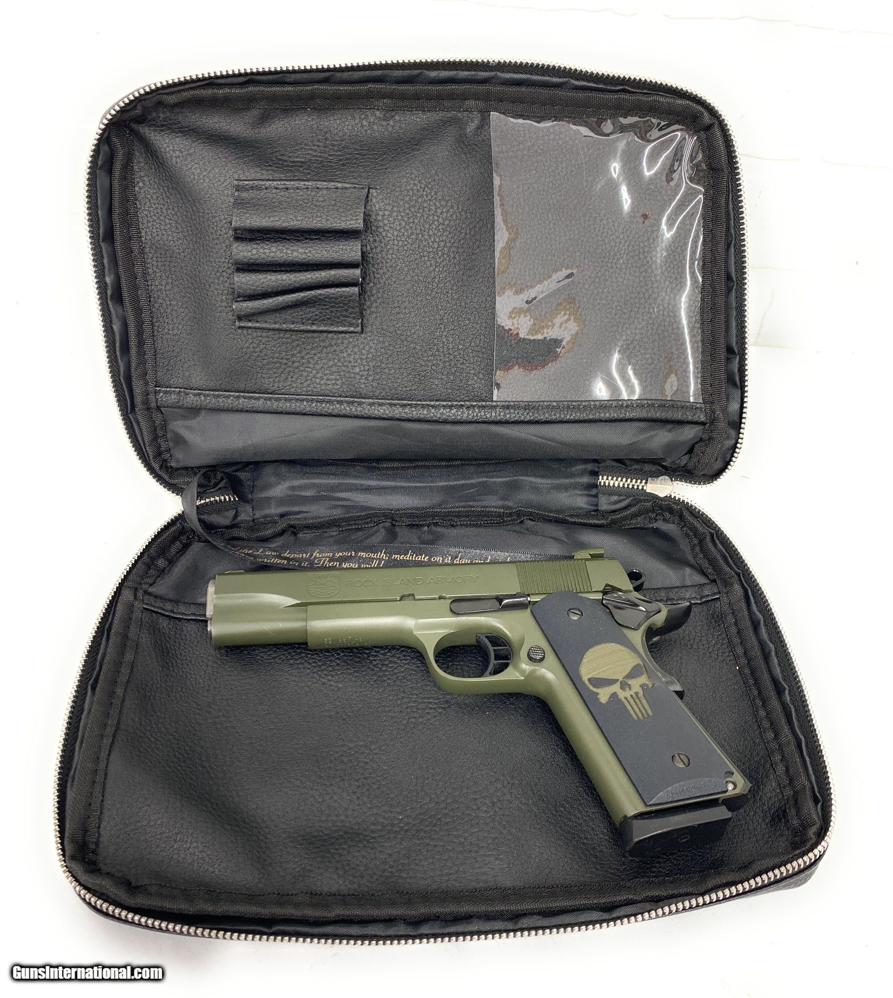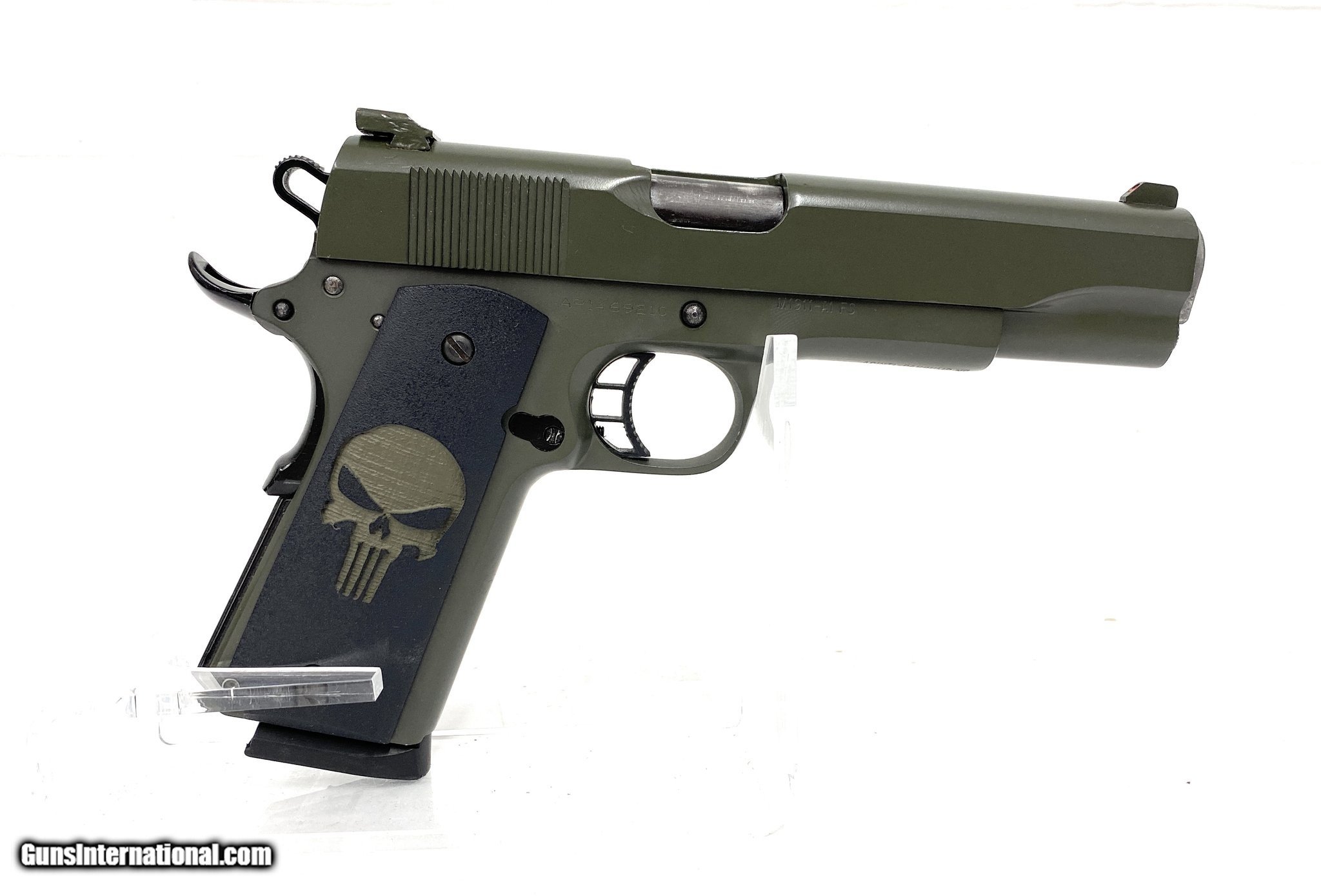 Description: Guns Listing ID: 601423 This 1911-A1 FS is in very good condition. Visually this pistol looks amazing. A real looker. Punisher grips look mint. Green cerakote. Small scratches on finish near rear sights. Barrel is clean, clear and has a good bore. External barrel has discoloration from use. Perfect range toy. Comes with 1 magazine, additional replacement grips and storage zip bag. All information is correct to the best of our knowledge. Before making a purchase do your own due diligence. SKU-25090022 WEIGHT: 3.30lbs BOX: M1 Manufacturer: ROCK ISLAND ARMORY Model: M1911-A1 STANDARD FS Caliber Info: .45 ACP Condition: Used - Non-Certified Barrels: 5" BARREL Action: SEMI AUTOMATIC Price: $650.99 Contact Seller |