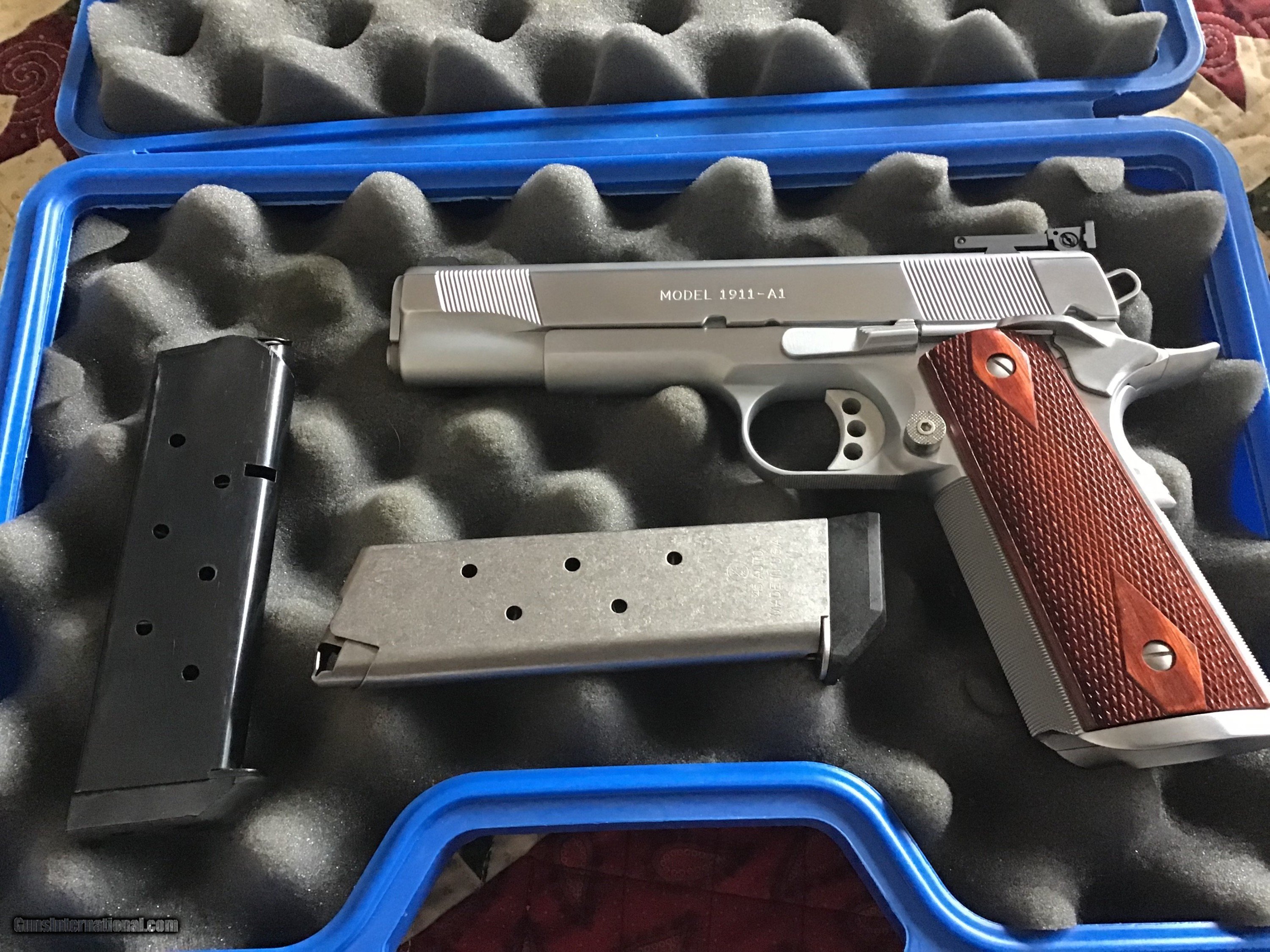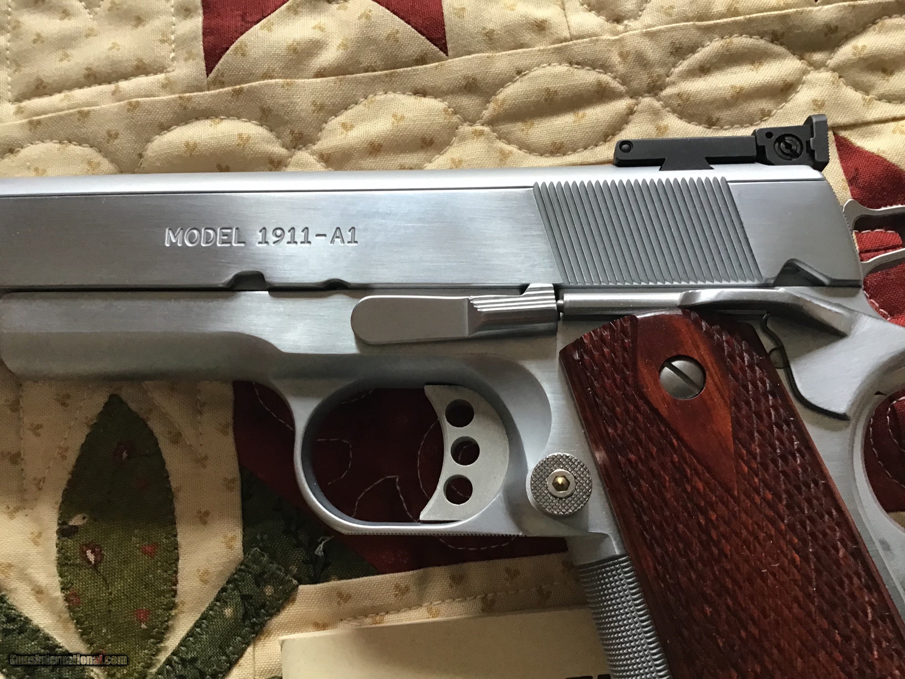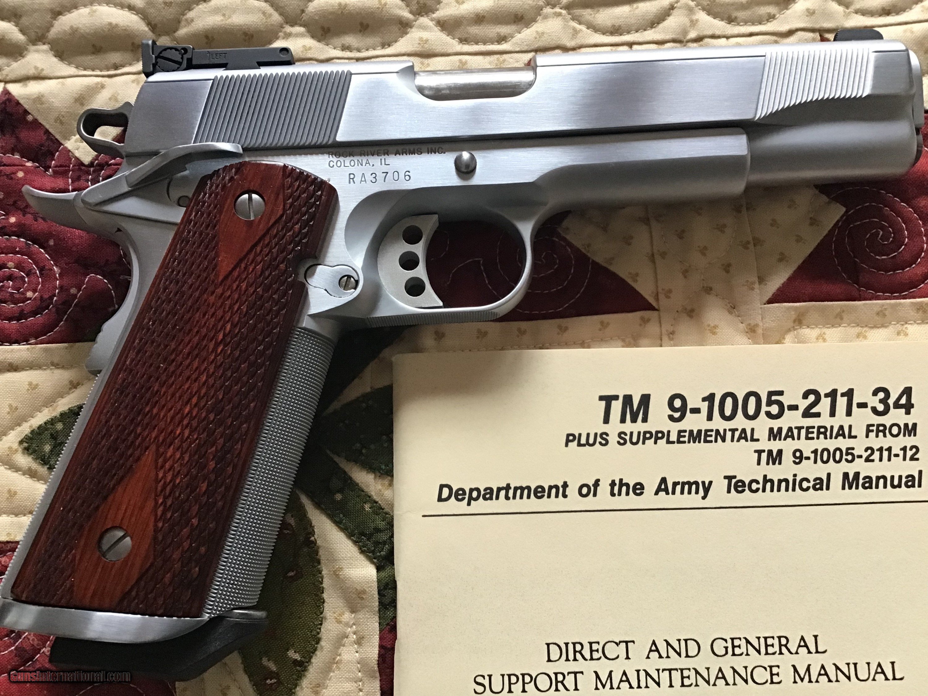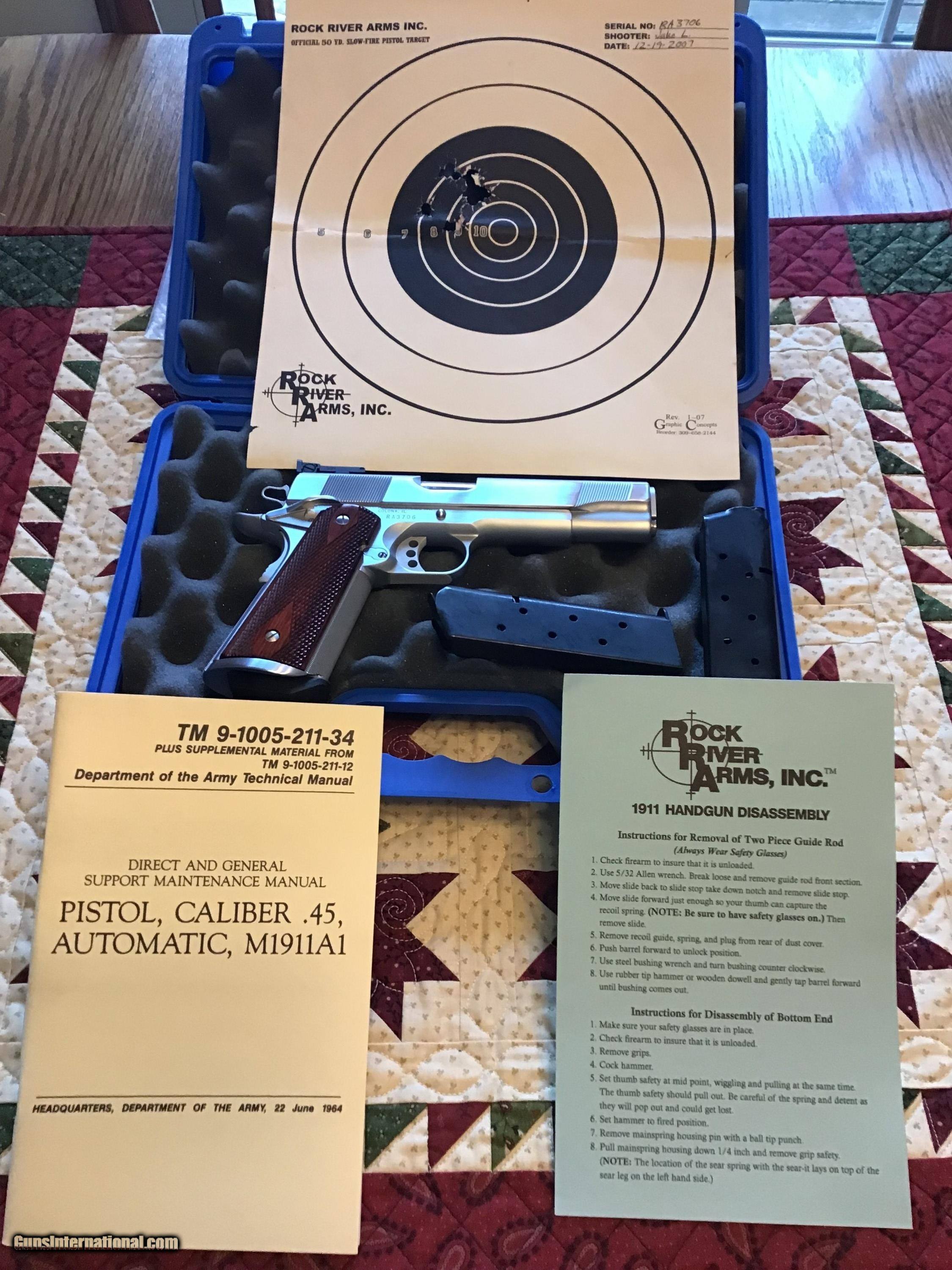 Description: Rock River Arms Stainless 1911-A1 45 ACP - 5" barrel, Rosewood grips, Kurt NM barrel and one extra magazine. This is a new old stock pistol that was only shot by the manufacturer on 12/19/2007 which that test target is included as well as the factory manual. Pictures speak for itself on this beautiful Rock River Arms pistol. SOLD Handgun Caliber: .45 ACP (.45 Auto) Manufacturer: Rock Rivers Arms Model: 1911-1A Barrel Length: 5 Condition: New old stock. Action: SEMI AUTOMATIC Finish: Stainless Manufacture Date: 2007 |