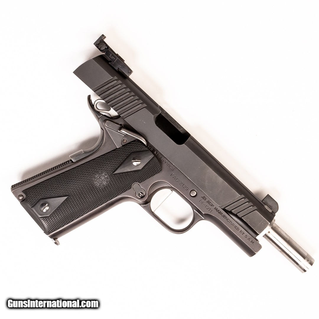 Description: Guns Listing ID: 451107 For sale is a S.A.M. Inc M1911. It‚‚s an excellent choice for personal protection and recreational shooting. This pistol is sure to serve you well without breaking the bank. This M1911 has Hogue grips, adjustable Kimber sights, a flat trigger, and Kart barrel and bushing. One 7-round magazine is included SOLD Manufacturer: S.A.M. INC. Model: M-1911 Caliber Info: .45 ACP Condition: Used - Certified Barrels: 5 BARREL Finish: BLACK |