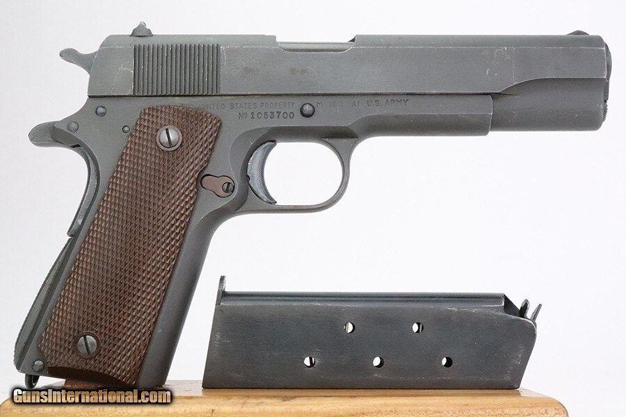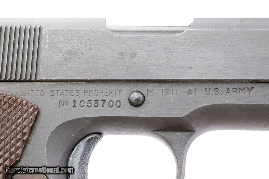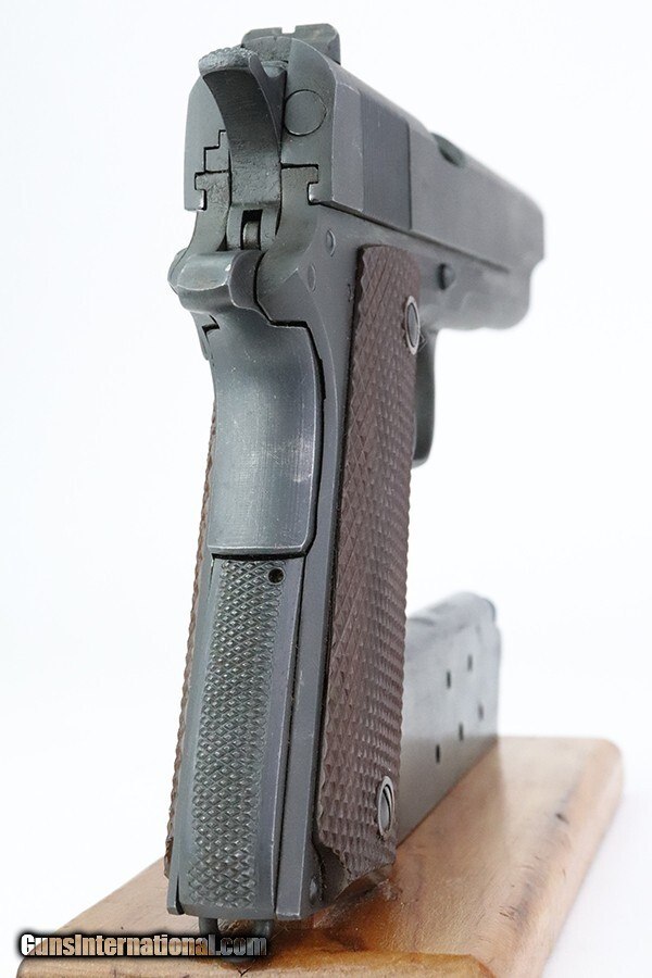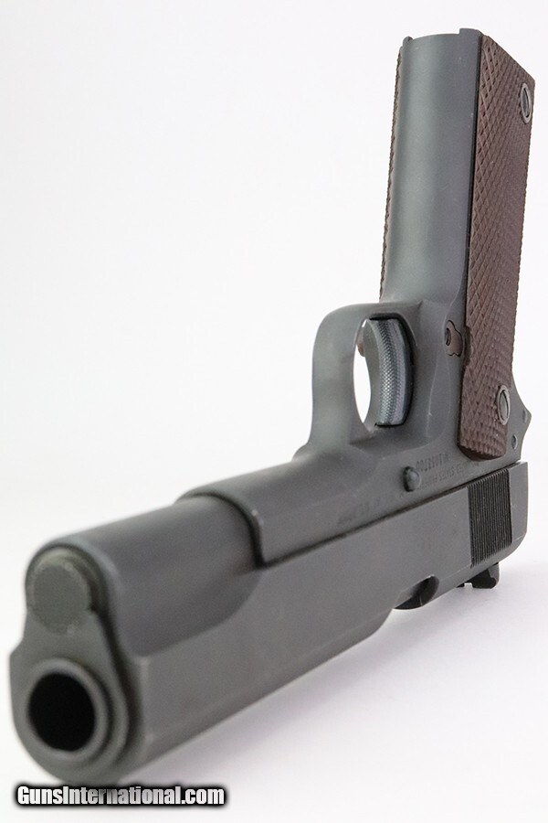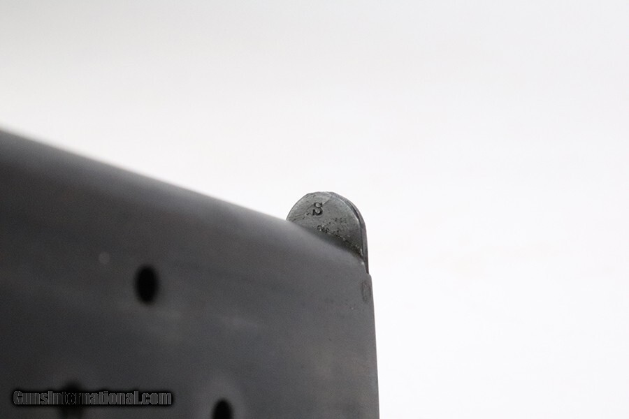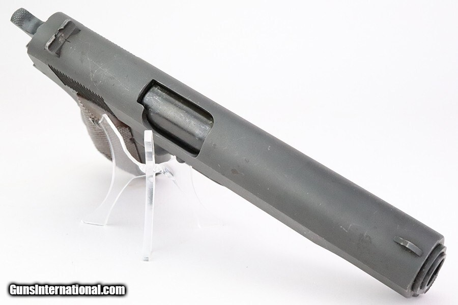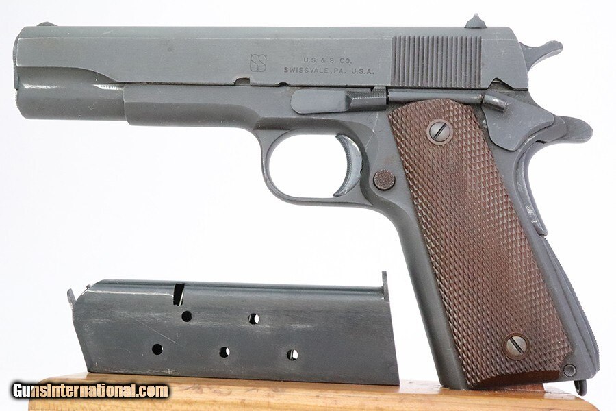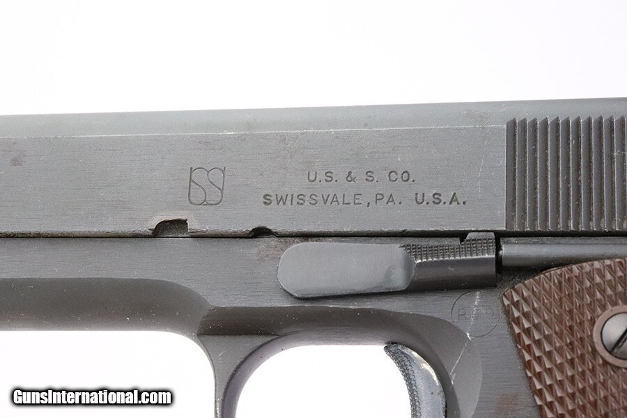 Description: This is a rare Union Switch & Signal made 1911A1 from 1943 in fantastic, original condition. The serial dates this pistol to May of that year. It is all original and correct with 97-98% dulite finish remaining. There is hardly any wear to mention, just a hint of wear from the slide moving against the frame and a few minor surface scuffs. Sharp RCD inspector proof on frame. Concentric circles on the barrel bushing. HS marked barrel. 'S' marked magazine. Excellent grips and bore. ___________________ The Union Switch & Signal company of Swissvale Pennsylvania, primarily made railroad signaling equipment but received a contract on May 5, 1942 for the manufacture of M1911A1 pistols. The first pistols were accepted by Ordnance inspectors in January 1943, but the company received word that their contract would be canceled. Within a month U.S.&S. had signed a contract to supply carbine parts. On March 8, 1943 the company was officially notified that their contract had been cut back from 200,000 pistols to 30,000 pistols. However on June 26th, when the contract was nearly complete, and many of the workers had been transferred to Carbine operations, the company received a letter of intent to purchase an additional 25,000 pistols. The last of the pistols was shipped on November 27, 1943. 55,000 Union Switch and Signal pistols were delivered serial numbered from 1041405 to 1096404. U.S.&S. pistols are the second rarest of the M1911A1s (55,000 produced), only the Singer is rarer (500 produced). None of the Union Switch & Signal 1911A1s have the crossed cannons ordnance stamp. We are told these were issued to the Army Air Corps during the war. Curio/Relic: Yes Handgun Caliber: .45 ACP (.45 Auto) Price: $9,250.00 Contact Seller |