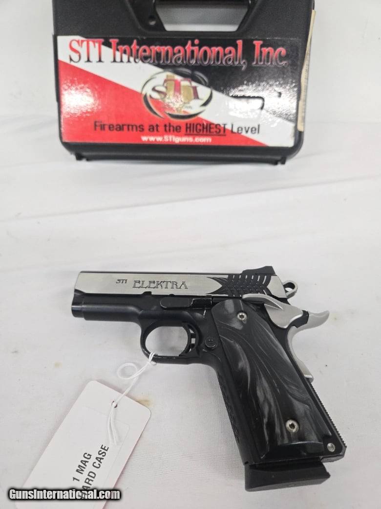 Description: Guns Listing ID: 576943 Used STI Elektra 1911 .45ACP 3in Stainless Semi-Auto Pistol w/Original Box STI Elektra 1911 .45 ACP Semi-Automatic pistol Stainless steel 3 inch barrel Original box Excellent condition SOLD Manufacturer: SMI ARMS Model: STI Elektra 1911 w/Original Box Caliber Info: .45 ACP Condition: Used - Non-Certified Barrels: 3" BARREL Action: SEMI AUTOMATIC Finish: 1 |