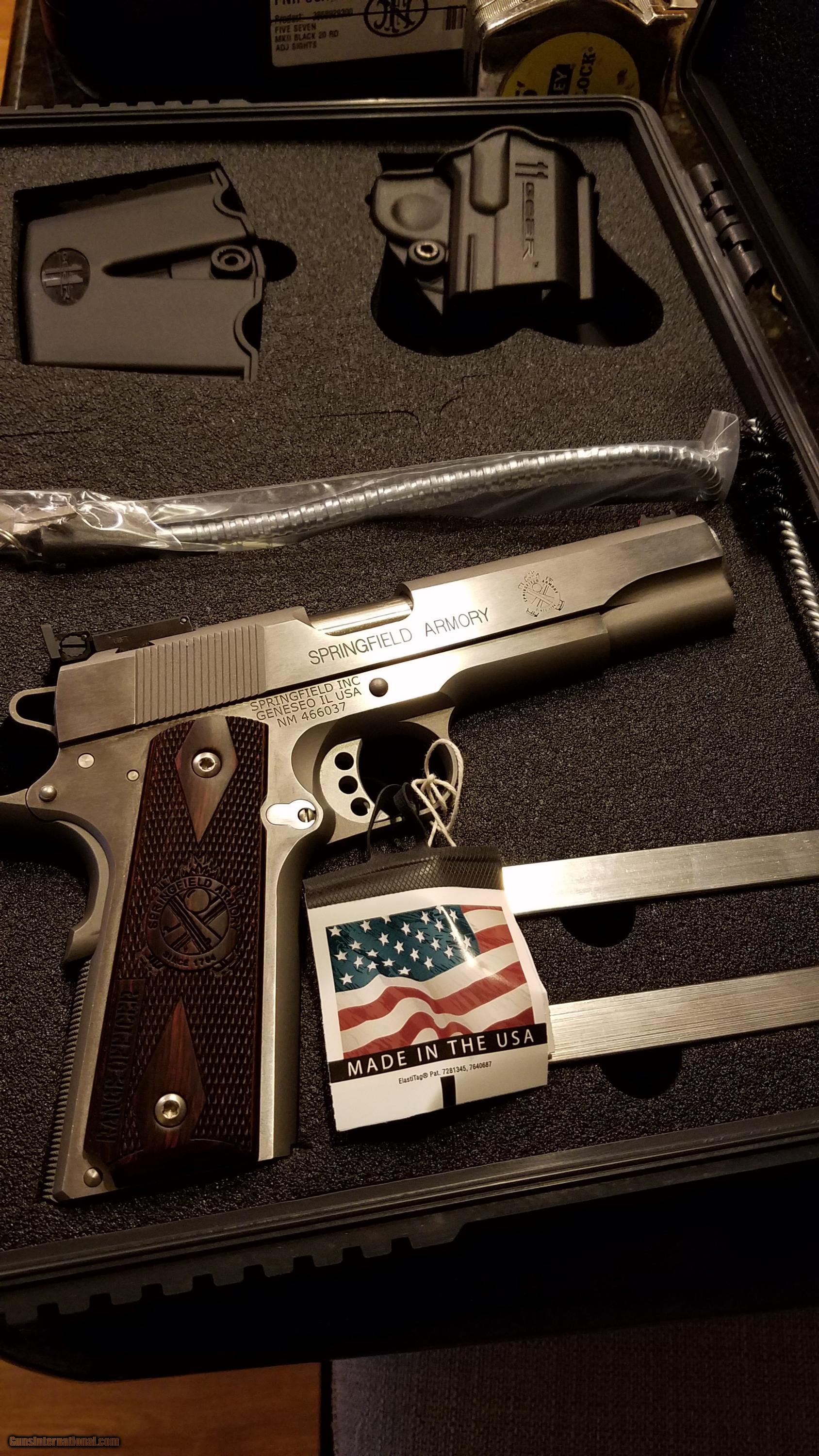 Description: Factory in-box Springfield Armory 1911 A1 Range Officer, 9mm. 5" Stainless Steel Match Grade Barrel. Forged Carbon Steel, Parkerized Frame and Slide. Cross Cannon™ Double Diamond Cocobolo grip. Fully adjustable rear sight. Brand spanking new, first owner, never been used. Comes with two 9 round stainless steel magazines, paddle holster, mag holder, lock and case. SOLD Model: 1911 A1 Range Officer Caliber Info: 9mm Condition: New Metal Condition: New Wood Condition: New Bore Condition: New |