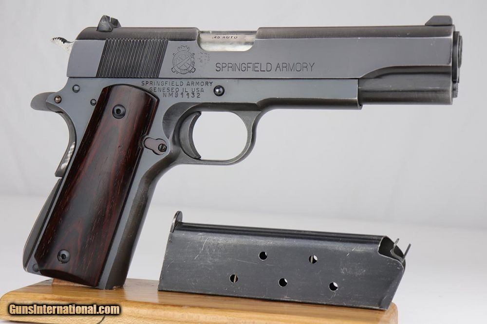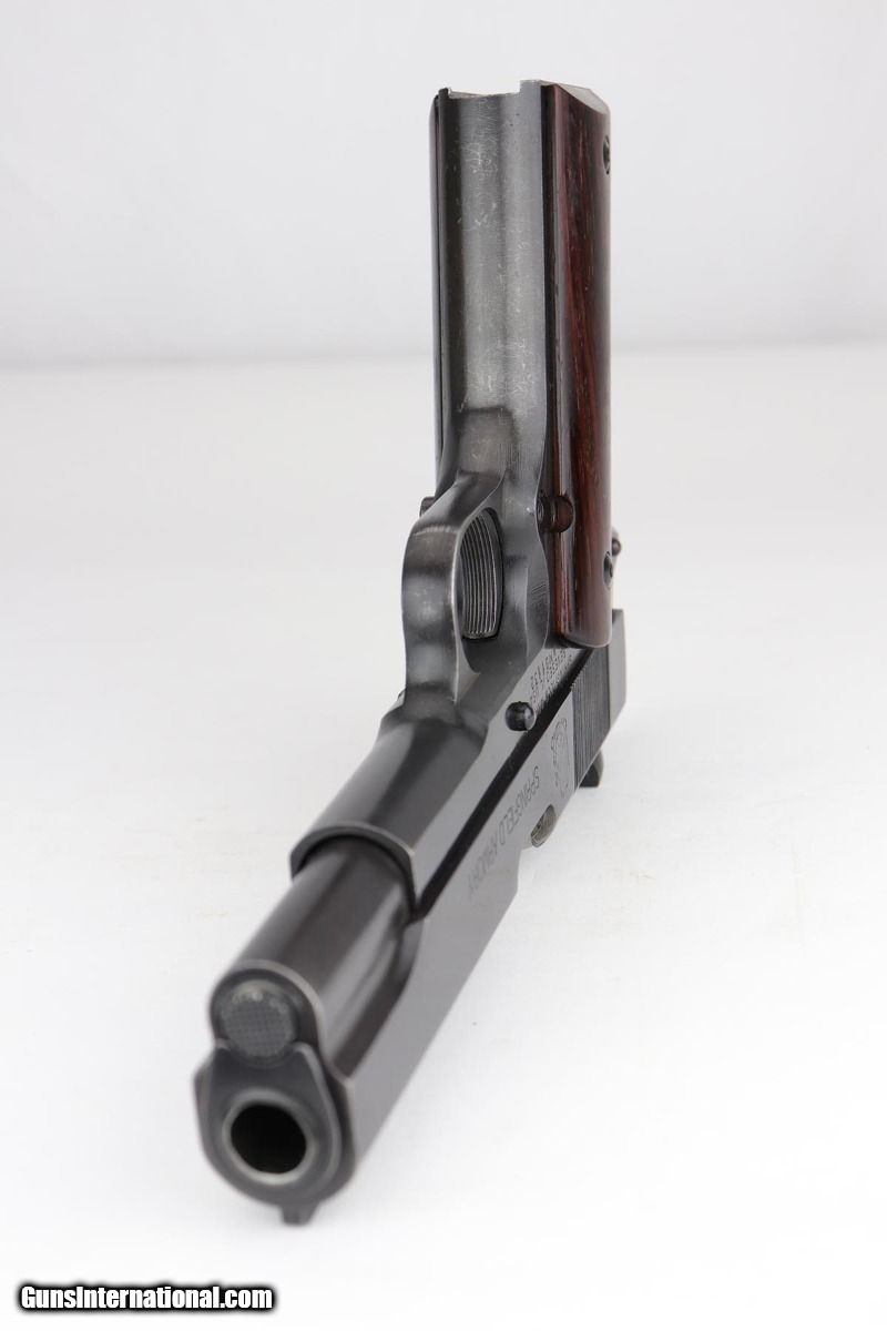 Description: This is an excellent Springfield Armory 1911-A1 that was made in May of 1990. The blued finish rates at 97-98% with minor high edge wear, and some thinning of the grip safety. Minty bore. Excellent grips. SOLD Manufacturer: Springfield Armory Model: 1911-A1 Serial Number: NM91132 Caliber Info: .45 Bore: 9.5/10 Condition: 97-98% Manufacture Date: 1990 |