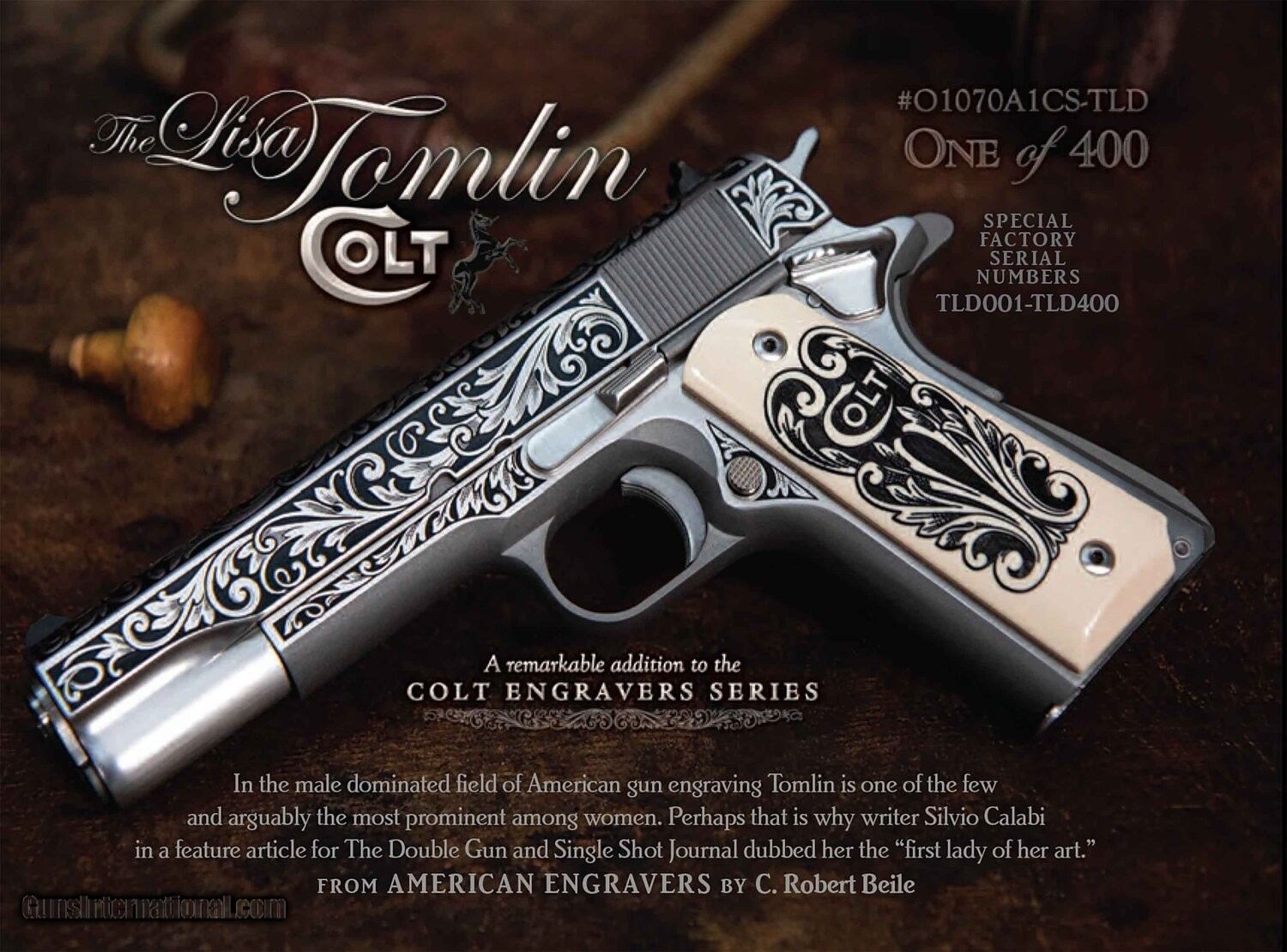 Description: AUTOGRAPHED HIGH DEMAN-VERY SCARCE TALO LIMITED EDITION SPECIAL S/N from TLD 001 of 400. I AM THE ONLY SELLER OFFERING AUTOGRAPHS FROM BOB COYLE AND LISA TOMLIN WITH YOUR PURCHASE!!!! THE VALUE TO THIS IS PRICELESS!! OVER 20+ of THIS LIMITED EDITION SOLD OUT PRODUCTION RUN IN MY POSSESSION AND IN STOCK READY TO SHIP "STOCK PHOTOS OF MY COLLECTION" FIREARM IS IN MINT CONDITION/NIB. ITEM HAS BEEN VACCUM SEALED IN ADDITION TO THE x2 MAGS BEING SEPARATELY VACCUM SEALED. I CARE ABOUT VALUABLE COLLECTABLE ITEMS AS SHOULD YOU! Up for is a very Limited Colt 1911. This pistol was done by TALO and has a very short run of only 400 total guns! It is out of the TALO Engravers Series and features a design by Lisa Tomlin. The deeply embellished engraving stands out beautifully against a stainless steel finish. Lisa Tomlin Colt .45 One of 400 O1070A1CS-TLD A remarkable addition to the Colt Engraver series The Design Lisa’s unique design embellishes a Colt series 70, Model O, stainless, 5 inch, .45acp. She cites the Ken Hurst influence in the very distinct American bank note style scroll that exhibits a combination of Italian and Germanic influences. Her design is elaborately displayed over most of the firearm. The slide sides, top and lug are polished and detailed with deep etch scroll and then black filled. The frame is bright polished and deep etched and black filled. Bright polished parts include the hammer , slide stop, mag catch, mag catch lock and barrel bushing, thumb safety, 3 pins, grip screws and plunger tube. The unique grips reflect the overall design w stainless polished hex style grip screws This unique firearm embraces a modern design anchored in the tradition of the finest engraving artistry. Special factory serial numbers TLD001-TLD400 Please contact me for more info, once this is gone its GONE! Please read terms of sale before . Winner to pay shipping and insurance to your preferred FFL dealer with adult signature required. S/N May not be as pictured. Virginia residents must pay 7% sales tax SOLD Manufacturer: Colt Model: O1070A1CS-TLD Serial Number: 1 of 400 Barrel Length: 5 Caliber Info: 45 acp Condition: NIB Action: SA Engraving: Yes Extras: TALO |