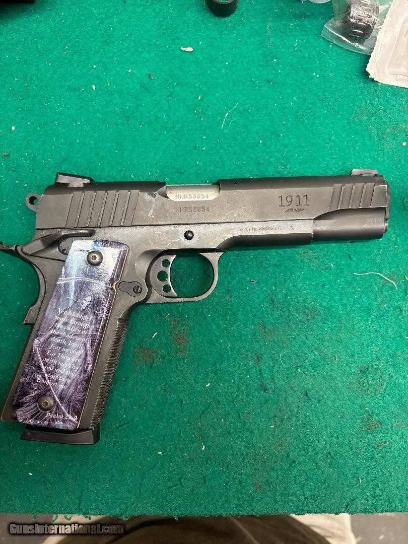 Description: Guns Listing ID: 576214 TAURUS 1991 IN GOOD CONDITION Manufacturer: TAURUS Model: 1911 Caliber Info: .45 ACP Condition: Used - Non-Certified Barrels: 5" BARREL Action: SEMI AUTOMATIC Finish: black Price: $379.99 Contact Seller |