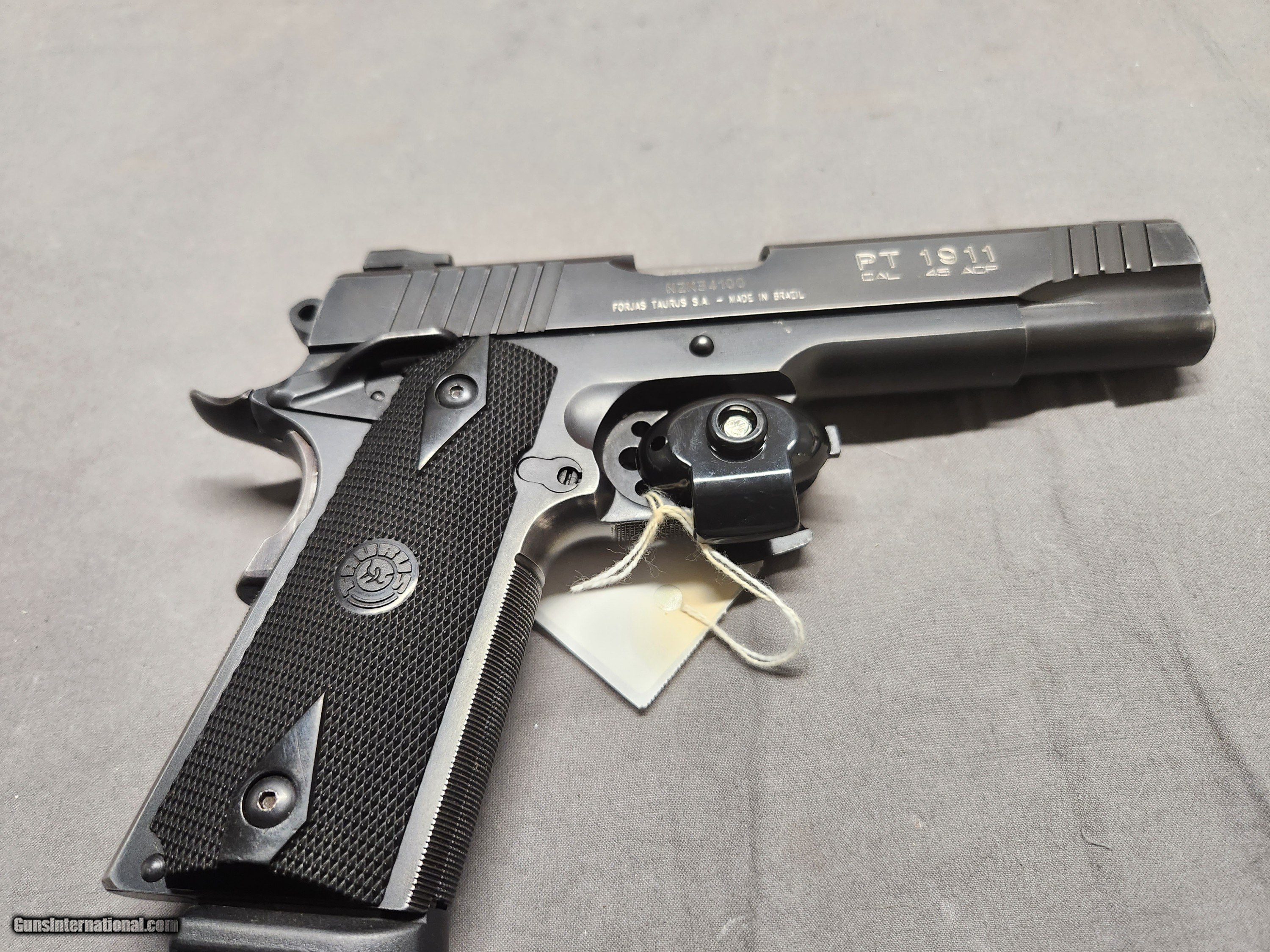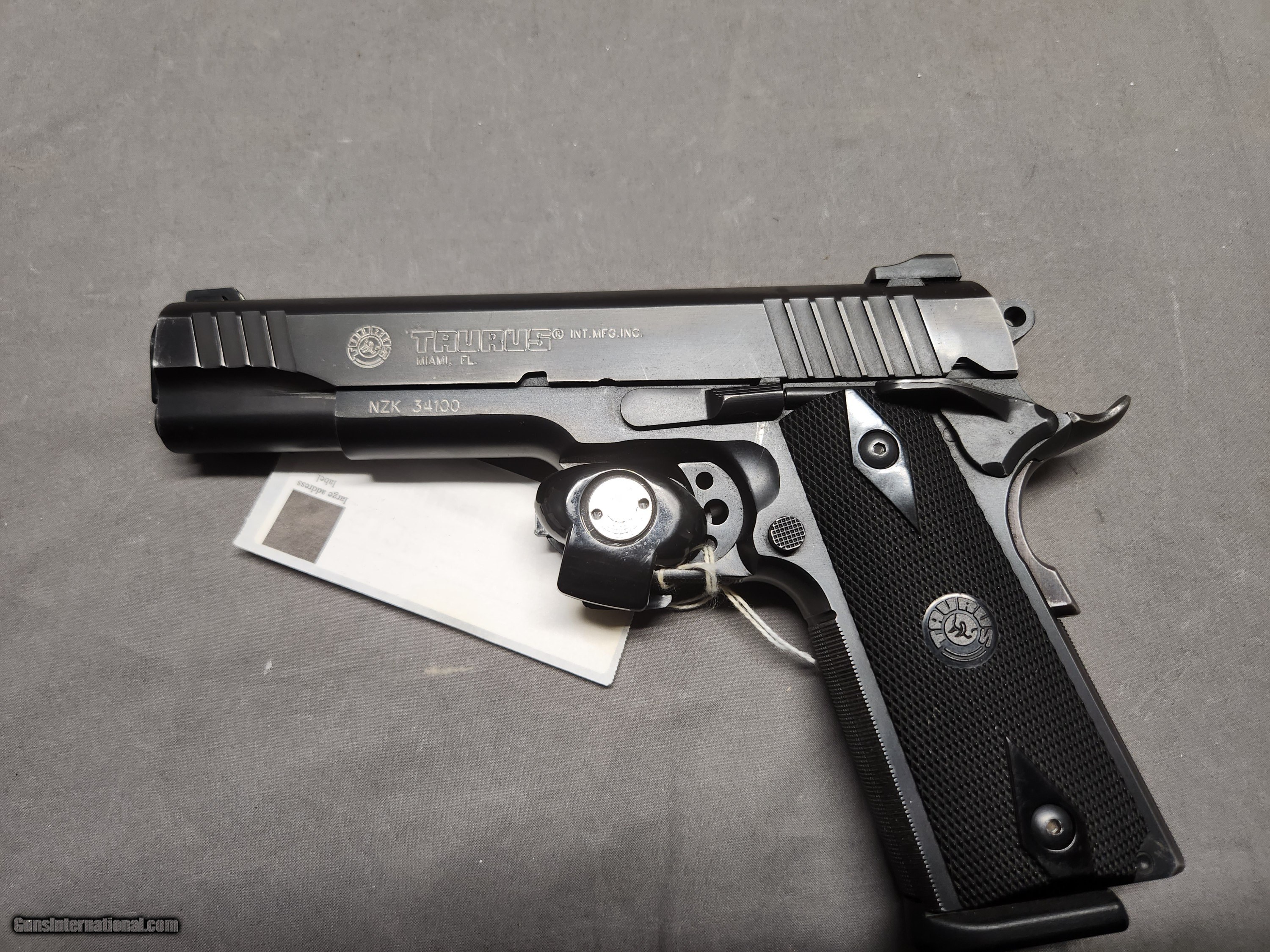 Description: This is a pre-owned Taurus PT-1911 semi-automatic pistol featuring a 5” barrel chambered in .45 ACP with Adj sights in a black finish. The pistol shows some finish wear on the slide and frame. The bore is in excellent condition with strong rifling and there are no mechanical issues. Please refer to photographs for a more detailed look at the condition. Comes with one mag. We review all offers. Please review all photo's as we do our best to take photo's of all imperfections of the firearms. To purchase a firearm from us we need you to do the following. 1. Send an e-mail stating that you would like to purchase the firearm. Please include your name, address, and phone number. We also need to know how you will be paying for the firearm, Cashiers Check, Money Order, Personal Check, or Debit/Credit Card up charge on Debit/Credit Card 3%. We also need the FFL Dealer's Name and Phone number we will be shipping the firearm to. After we recieve this information we will e-mail you over the invoice with the total due. If payment is not received within 5 business days the firearm will be relisted. Thank you for looking! Ron SOLD Handgun Caliber: .45 ACP (.45 Auto) Manufacturer: Taurus Model: PT1911 Serial Number: NZK34100 Condition: 85%+ Metal Condition: 85 Bore Condition: VG Action: Semi Auto |