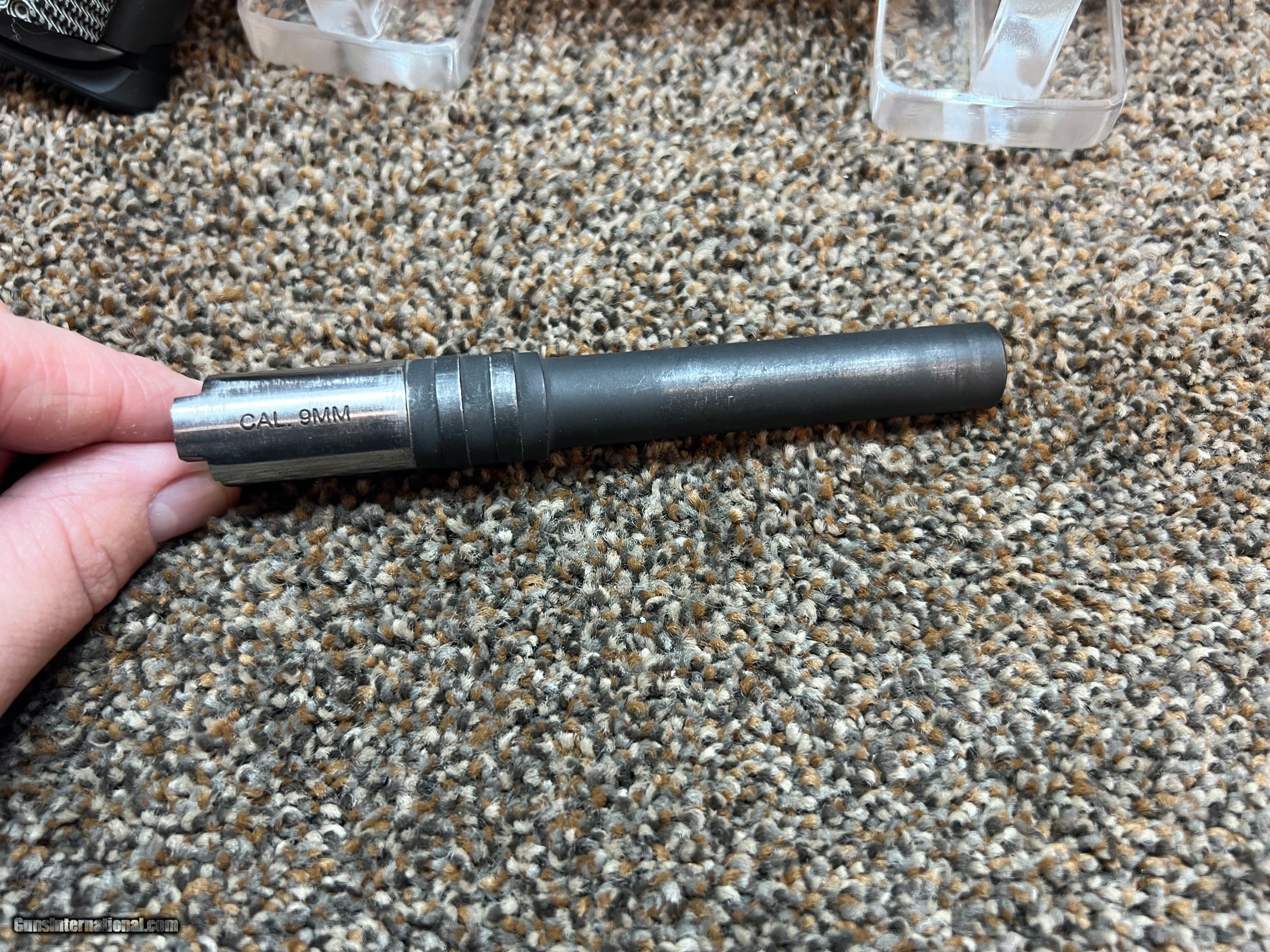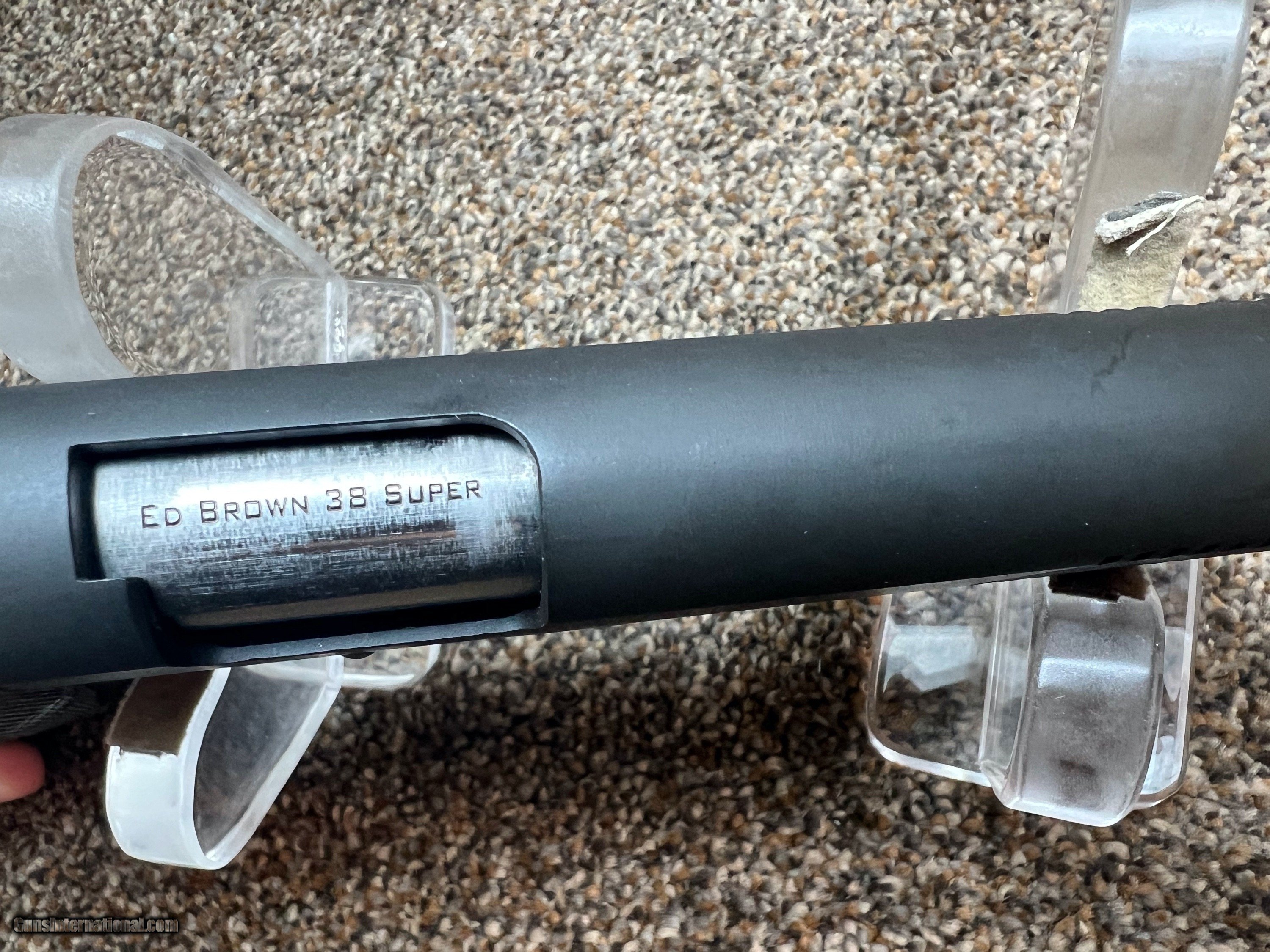 Description: Here's a nice used Taylors & Company 1911 A1 FS Tactical 38 super & 9mm 2 barrels, exc bore, 5" barrel, 2 dot rear and green fiber optic front sight, with it's orig box. 50.00 shipping 2.99% credit card fee, PA residents add 6% sales tax. SOLD Handgun Caliber: .38 Super Auto |