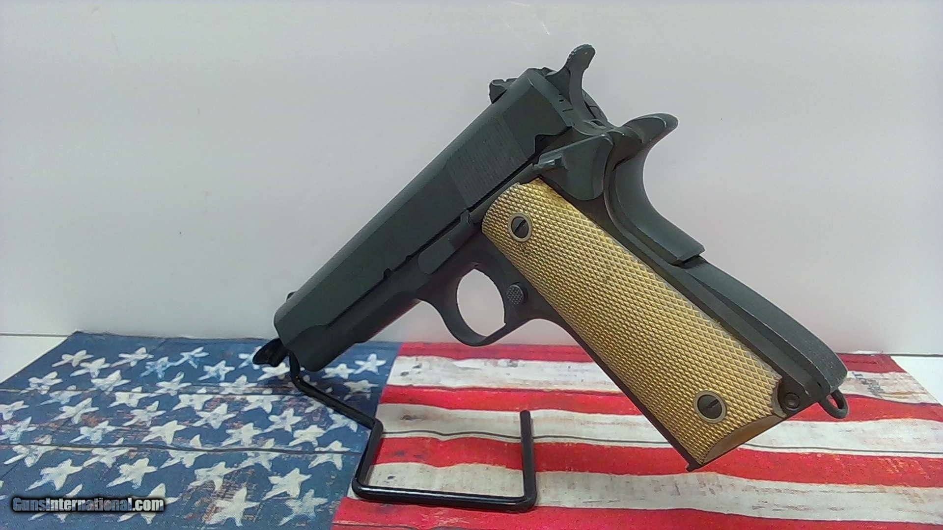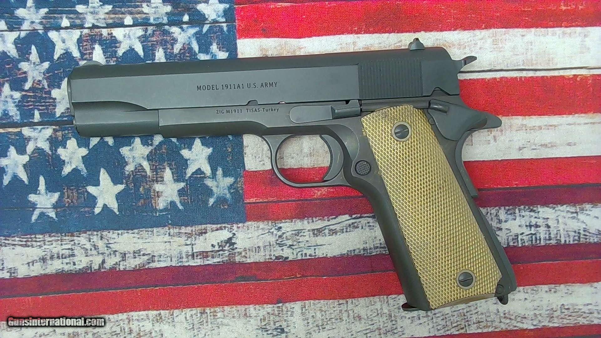 Description: Guns Listing ID: 601170 Pre-owned Tisas 1911 A1 pistol chambered in .45 acp. This gun is in good condition. The bore is clean, and the action is tight. However, the grips have been painted a gold color, and it looks like they were painted while on the gun. There is gold paint on the frame of the gun. See photos. The Tisas 1911A1 US ARMY WWII is a faithful reproduction of the classic M1911A1 model. Chambered in the powerful .45 ACP caliber, with a barrel length of 5\" and a magazine capacity of 8 rounds, this pistol captures the spirit and specifications of the wartime original. They say a picture is worth a thousand words. These photos are the best statement of condition; please review them carefully before purchasing. Manufacturer: TISAS Model: 1911 A1 u.s. army Caliber Info: .45 ACP Condition: Used - Non-Certified Barrels: 5" BARREL Action: SEMI AUTOMATIC Finish: grey Price: $399.99 Contact Seller |