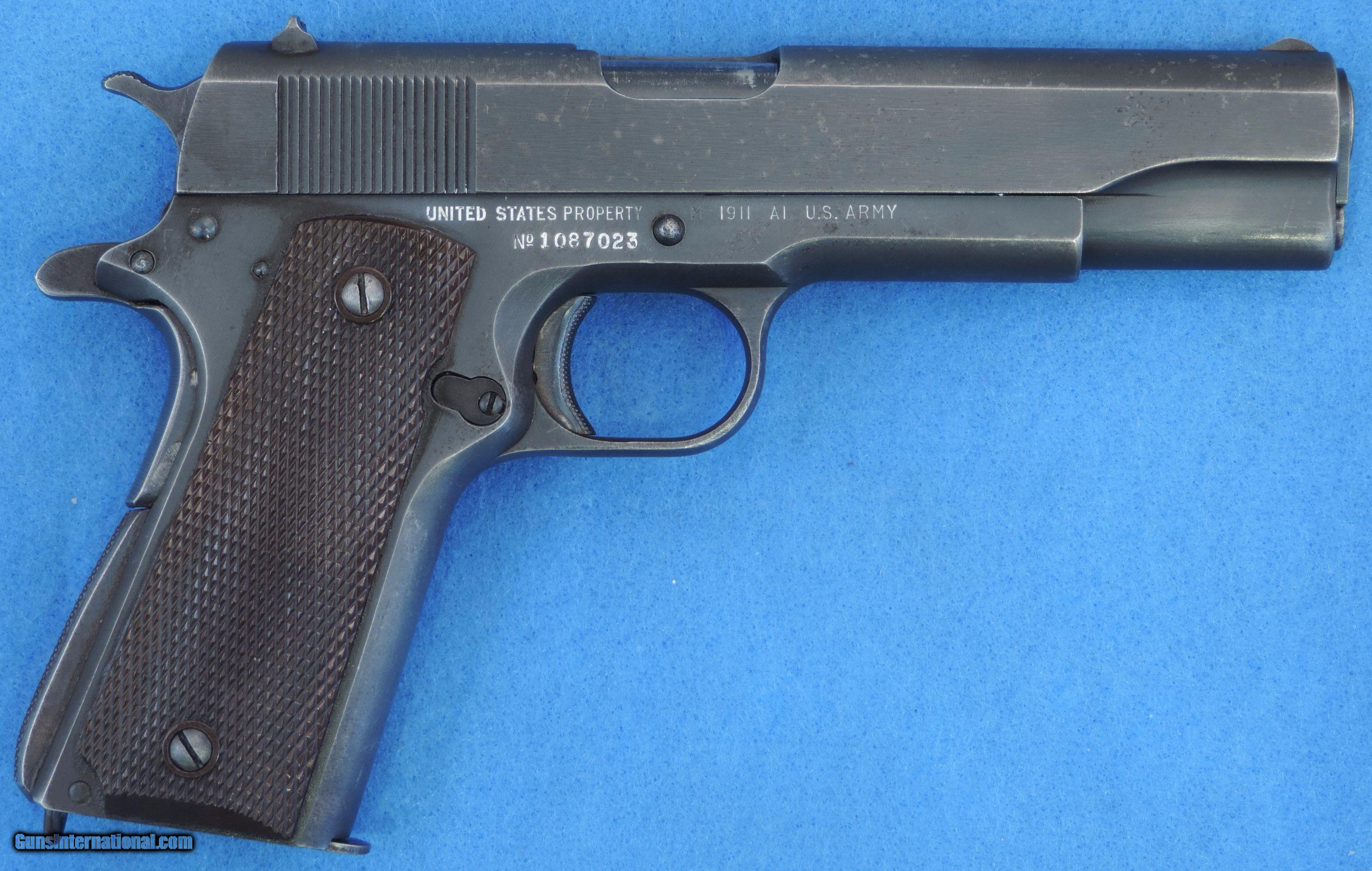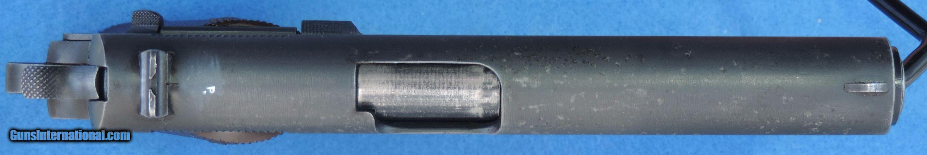 Description: Inv. 6434 Union Switch & Signal U.S. Model 1911 A1. Cal. .45 acp, Ser. 10870XX. An exceptional nice example of the second smallest and most sought-after manufacturer of the 1911 A-1. The gun has retained about 95% of the original factory Duco Lite finish. It appears that all the loss is due to holster wear. As usual there is the sharp edge silvering, and that's about it There are no pits, rust spots, rub marks or scratches other than the usual one from the take down lever. The grip straps of this "Holster Queen" show no signs of graying. The top of the slide has the proper "P" proof. The right side of the frame has the correct inspector stamp, RCD in a circle. All parts match and are proper for the gun. The barrel bushing does have the circular machining marks typical of the U.S.& S production. The grips are the correct small ring type with the square interior reinforcement ribs. They are mold marked K inside a Star and the number 12. The grips are flawless, not a chip, crack or even a flattened point. The proper High Standard barrel is mirror bright with razor sharp rifling. Not a hint of frost anywhere. This "Holster Queen" comes with one Risdon stamped magazine. This Pride of the Collection is priced according to its great condition and rarity.......$6750. To purchase this firearm or if you want to request more information contact us at: Email ckgunsymail Phone 201-512-0002 Cell 201-575-6838 FAX 201-215-4759 We accept most major credit cards. Prices shown are Discounted 3% for Cash or Check. The buyer must be familiar with all the laws governing the purchase and the ownership of firearms in their own city and state. The Yankee Armorer, Inc is not responsible for any failure to comply with or observe these laws. The Yankee Armorer, Inc will only ship after full payment and receipt of all required documents. Shipping: Add $35.00 for handguns, $45.00 for long guns. New Jersey buyers are subject to a 7% sales tax. The Yankee Armorer, Inc offers a 3 day inspection period with full refund upon return of intact firearm and in the original condition. The Yankee Armorer, Inc offers a no interest lay away program - 25% down; 25% in 30 days; 25% in 60 days; and full payment in 90 days. Any violation of this policy is subject to restocking and forfeiture of all payments. Any variation from this policy must be agreed to in advance. Unshipped Cancelled sales are subject to a 20% restocking fee. Be advised that all firearms sold by The Yankee Armorer, Inc. or the Gun Exchange, LLC (SELLER) are sold as collector’s items. They have not been fired or tested for safety and must be examined by a license gunsmith prior to use. By purchasing any item from the (SELLER), you are agreeing to hold the (SELLER) free from any damages or lawsuits of any nature. Any item left for transfer or storage will be charged to $25.00 per month, per item from the day of its receipt. Any variation from this policy must be agreed to in advance. Store hours 10:00 am to 5:00 pm Tuesday -Saturday. It's always best to call for appointment. Store 201-512-0002, cell 201-575-6838. SOLD Curio/Relic: Yes Manufacturer: Union Switch & Signal Model: 1911 A1 Serial Number: 10870XX Caliber Info: .45 ACP |