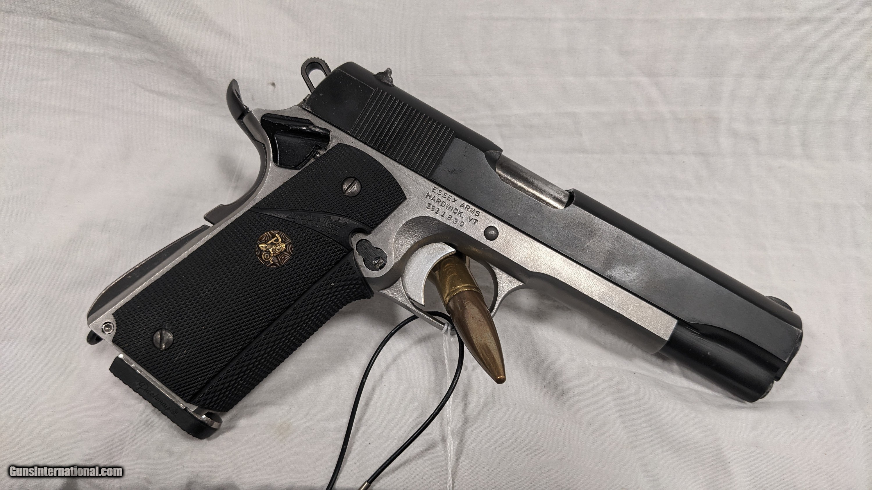 Description: This is a used item. While we do not test fire our used firearms, we perform an inspection and function check to determine the firearm is fully functional to the best of our ability. Please call with any questions. If you are interested in purchasing this item, please give us a call. Please have the "Seller #" and/or "Guns International #" ready along with the contact information for the FFL you'd like the item shipped to. For Sale from First State Firearms of Delaware AKA "The Gun Shop" in New Castle, DE. Shipping is $25.00. Includes $100.00 in shipping insurance. Additional insurance available at buyer's expense and request. SOLD Handgun Caliber: .45 ACP (.45 Auto) Manufacturer: ESSEX ARMS Model: 1911 Serial Number: SS11830 Barrel Length: 5 INCH Condition: USED, 70% Metal Condition: FRAME HAS BEEN POLISHED Action: SEMI-AUTO Extras: NONE / GUN & MAGAZINE ONLY Case: NO CASE/BOX |