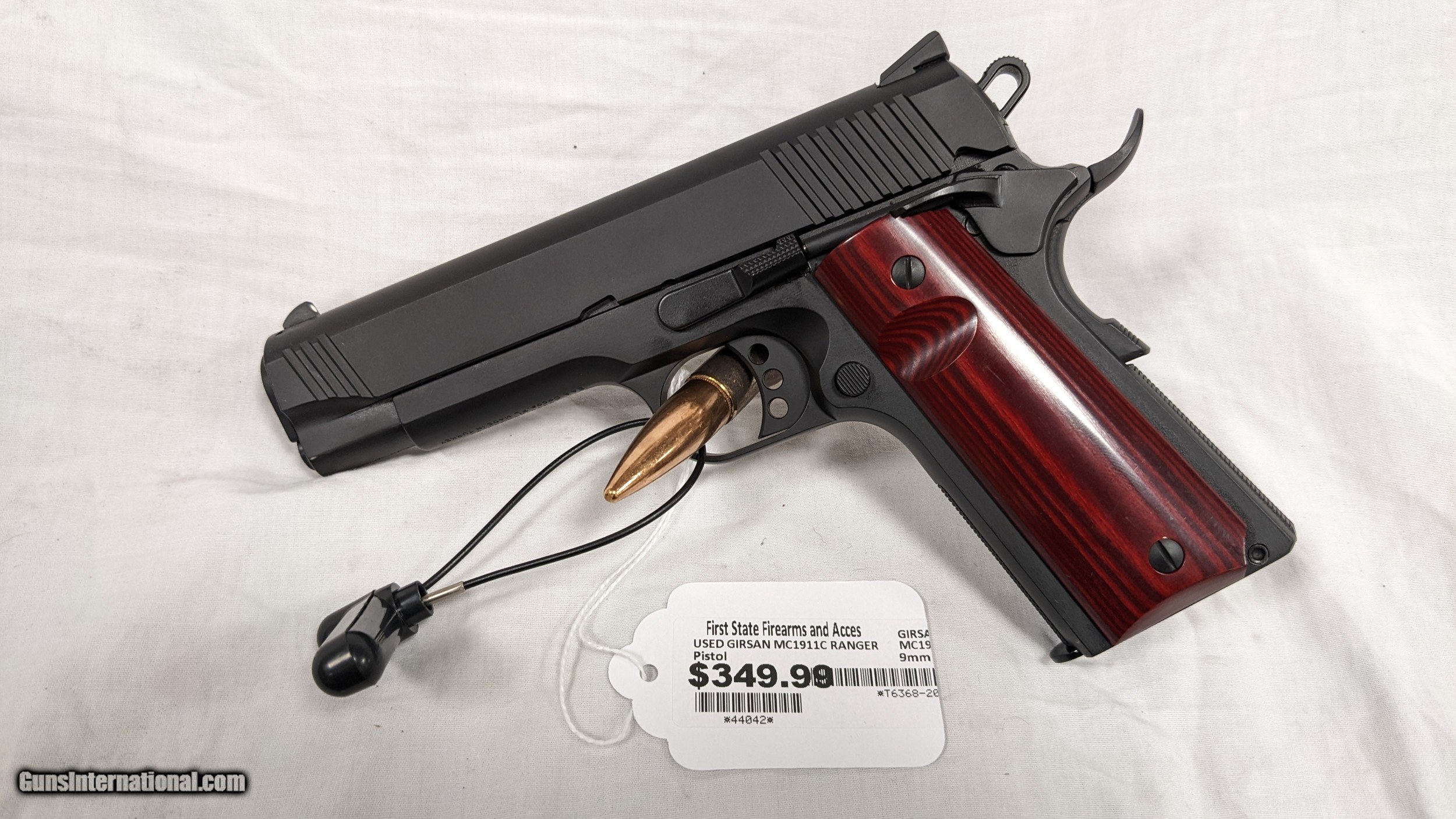 Description: This is a used item. While we do not test fire our used firearms, we perform an inspection and function check to determine the firearm is fully functional to the best of our ability. Please call with any questions. If you are interested in purchasing this item, please give us a call. Please have the "Seller #" and/or "Guns International #" ready along with the contact information for the FFL you'd like the item shipped to. For Sale from First State Firearms & Accessories AKA The Gun Shop in New Castle, DE. Shipping is $25.00. SOLD Handgun Caliber: 9x19mm Parabellum (9mm Luger, 9x19mm NATO) Manufacturer: GIRSAN Model: MC1911C Serial Number: T6368-20CG00130 Condition: USED, VERY GOOD Action: SEMI-AUTO Extras: BOX, X2 SPARE MAGAZINES |