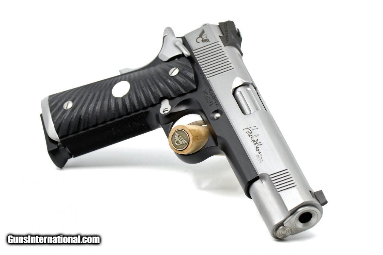 Description: Please contact us at 337.205.2180 or via email to purchase this firearm. We gladly accept check, cashiers check, money orders and all major credit cards. On this item, there is NO ADDITIONAL FEE for paying by credit card. SHIPPING $15 FOR THIS ITEM! In order to get your item to you as quickly as possible, please have your FFL send me a copy of their license. I ship Monday - Thursday. I will hold personal checks and cashiers checks until I verify that they have cleared. Orders placed by Credit Card will be shipped on the following business day. Handguns and non- firearms will ship USPS Insured and Rifles will ship FedEx Ground Insured. If you would like to upgrade to overnight, or use UPS, you will be responsible for the difference in shipping cost. Item Description This Wilson Combat Hackathorn Special is chambered in 9mm. Upgrades include: Reverse Two-Tone Stainless Steel Small Parts Bullet Proof Ambi Safety Sterling Silver Grip Medallions Tritium Front Sight The Hackathorn Special is a unique combination of our time-tested best features. This model is geared towards the needs of the serious defensive shooter and has “Everything you need and nothing you don’t.” SOLD Manufacturer: WILSON COMBAT Model: Hackathorn Special Caliber Info: 9MM Condition: FACTORY NEW |