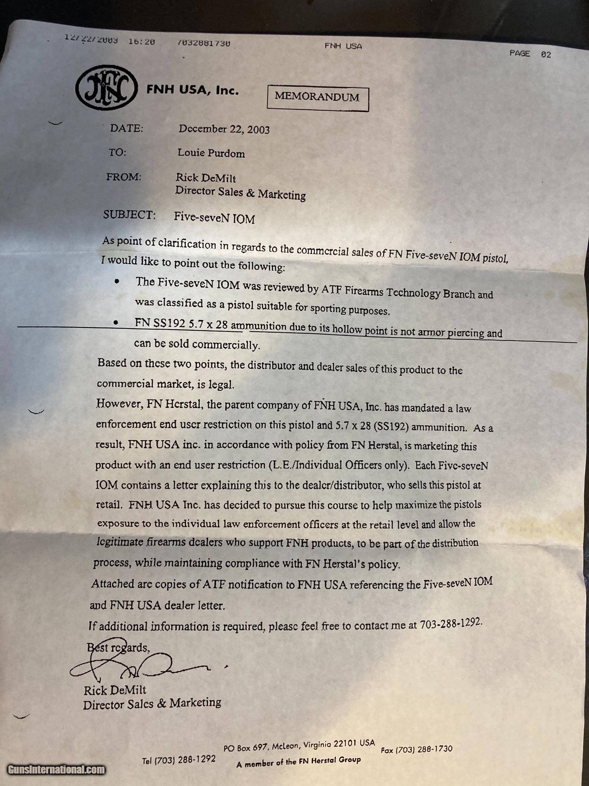 Fn 5.7 x 28 IOM, with round trigger and the official letter and box, 2 clips, shoot very few rounds