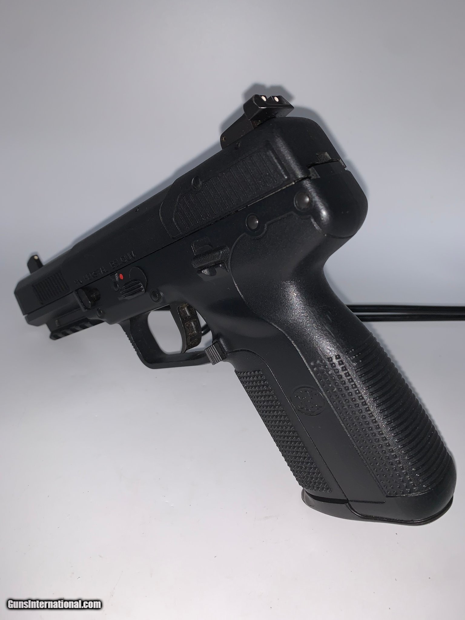 Description: Guns Listing ID: 586836 This is a preowned FN FIVE-SEVEN in VERY GOOD condition. Comes as pictures. A lightweight, easy handling pistol that fires the flat trajectory, low recoil 5.7 x 28mm cartridge, the FN® Five-SeveN ® Semi-Auto Pistol is an ideal personal protection piece. The FN Five-SeveN polymer receiver and slide cover provide a gun much lighter than traditional semi-autos, while its hammer forged, chrome-lined barrel and chamber provide enhanced accuracy and extended service life. The textured, ergonomic polymer frame design features checkered grip panels. Model: Five-SeveN Cartridge or Gauge: 5.7x28mm Barrel Length: 4.8\" Hand: Ambidextrous Finish: Matte Black Stock Color: Black Round Capacity: 20 + 1 Adjustable rear sights 1023489-EEM Manufacturer: FN Model: FIVE-SEVEN Caliber Info: 5.7X28MM Condition: Used - Non-Certified Barrels: 4.8" BARREL Action: SEMI AUTOMATIC Finish: MATTE BLACK Price: $1,149.99 Contact Seller |
