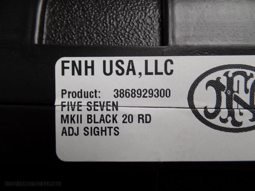 Description: NIB: FNH Five Seven 5.7X28mm Pistol, MKII, Black, 3-20RD Magaines, Adjustable Sights SHIPPING: Shipping and handling charge will be $40.00. All firearms must be shipped to a FFL transfer dealer. We ship to the continental US ONLY. It is your responsibility to make sure you comply with the laws of your county, state, and city on this item. We ship via USPS Priority Mail or UPS with insurance. PAYMENT: We accept Money Orders and Cashier’s Checks. We also accept Discover, MasterCard, and Visa but add 3% credit card processing fee. We must collect sales tax if you live in Illinois (6.75%). We are a licensed FFL dealer. Thank you for your interest! SOLD Manufacturer: FNH USA Model: Five Seven Caliber Info: 5.7X28mm Condition: NEW Barrels: 4.75 Finish: Black-Matte Weight: 20.8oz Sights: Adjustable Case: Plastic Case Item Location: Lovington IL |