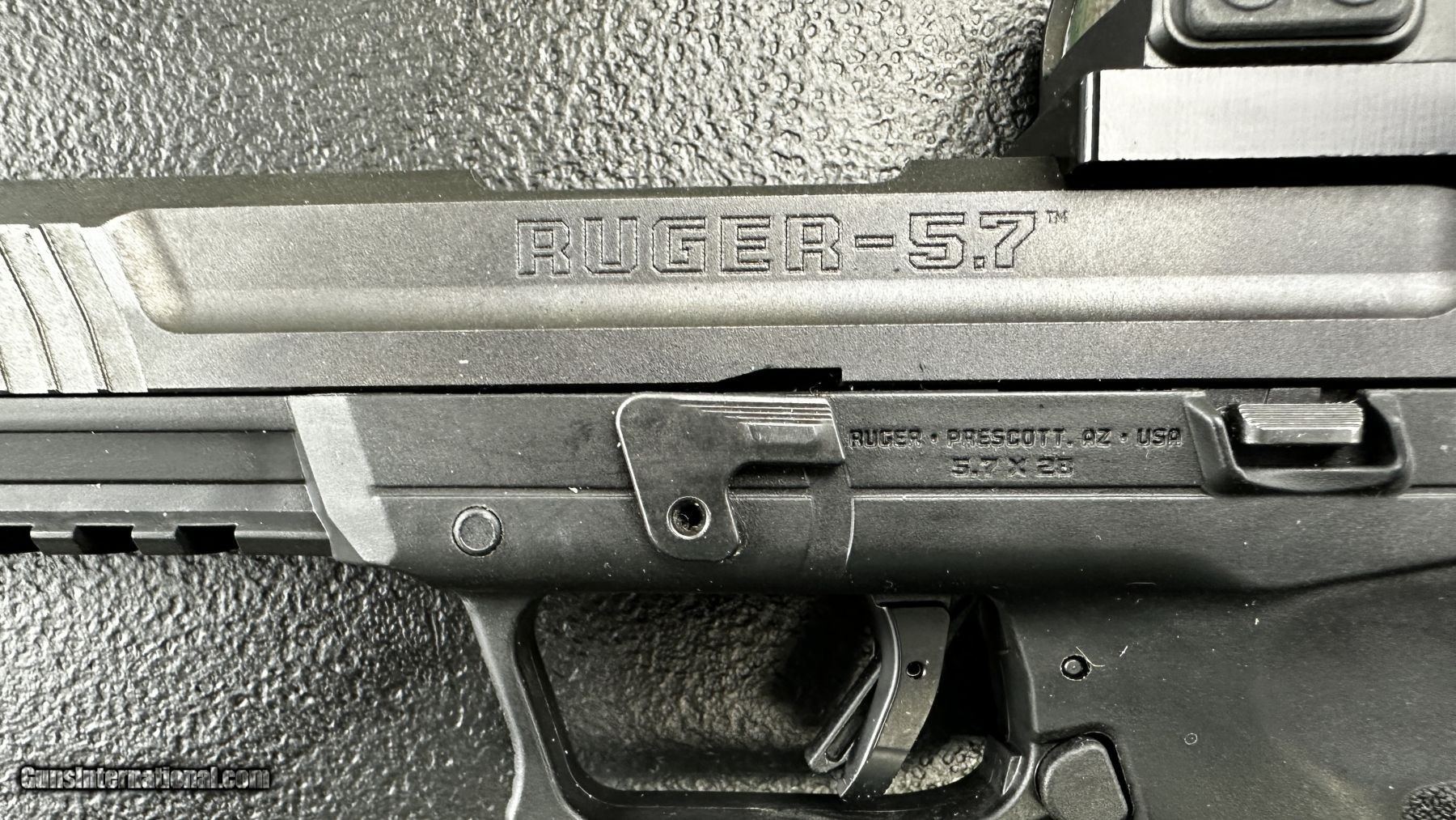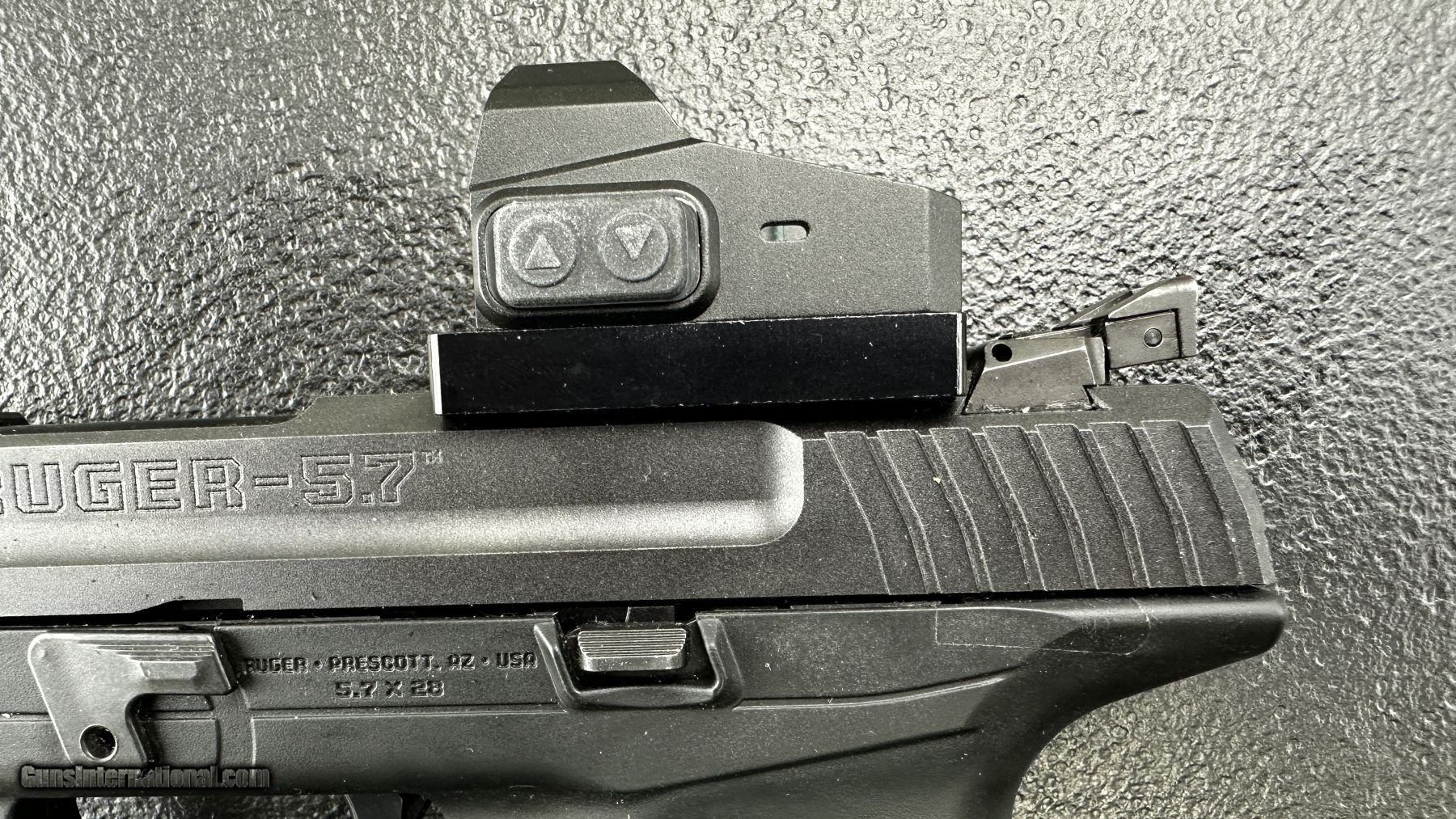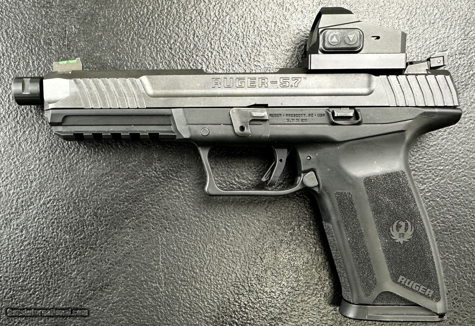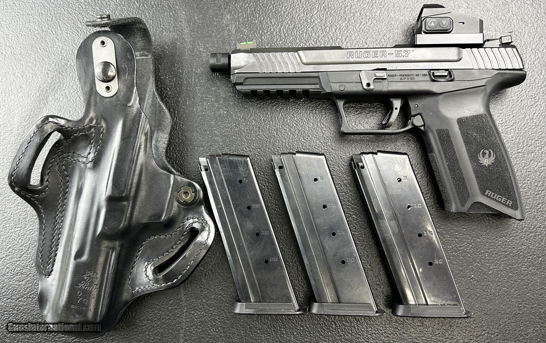 Ruger 5.7 Pistol in 5.7 x 28, Red-Dot installed, with three (3) 20 round Magazines and a new DeSantis leather scabbard holster. PRICED TO SELL!