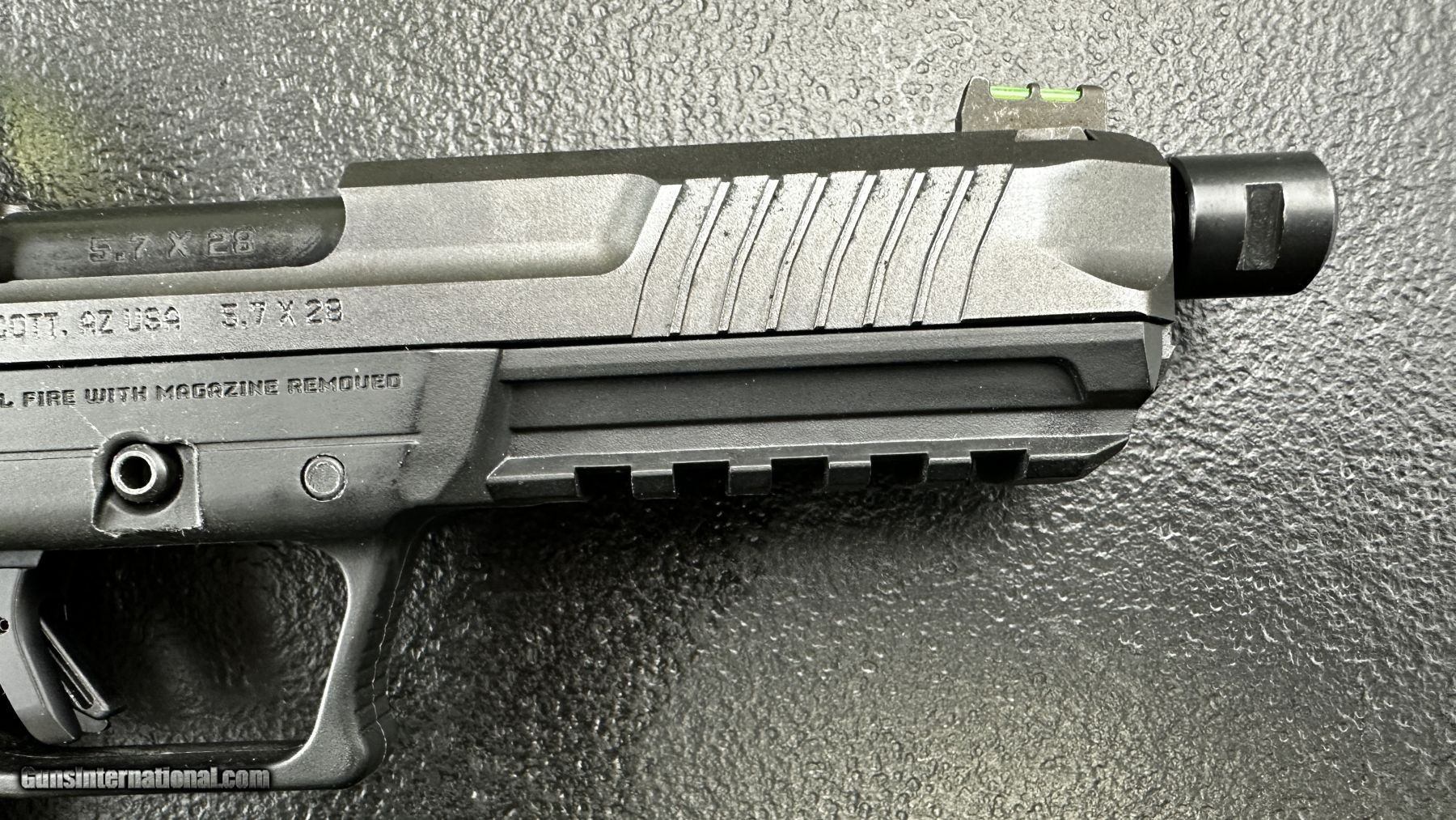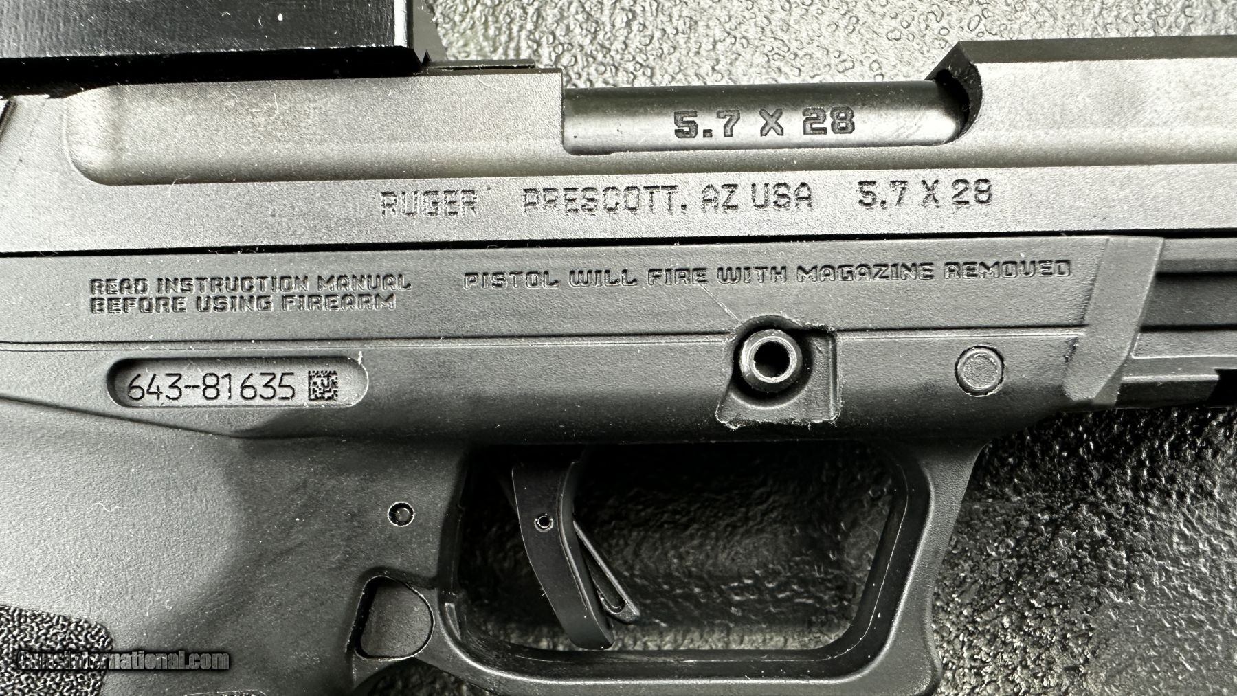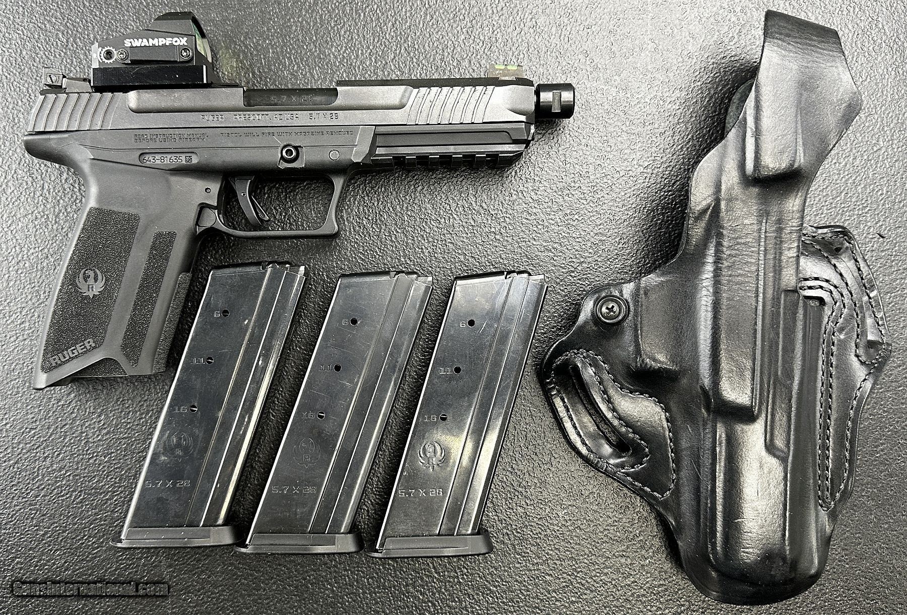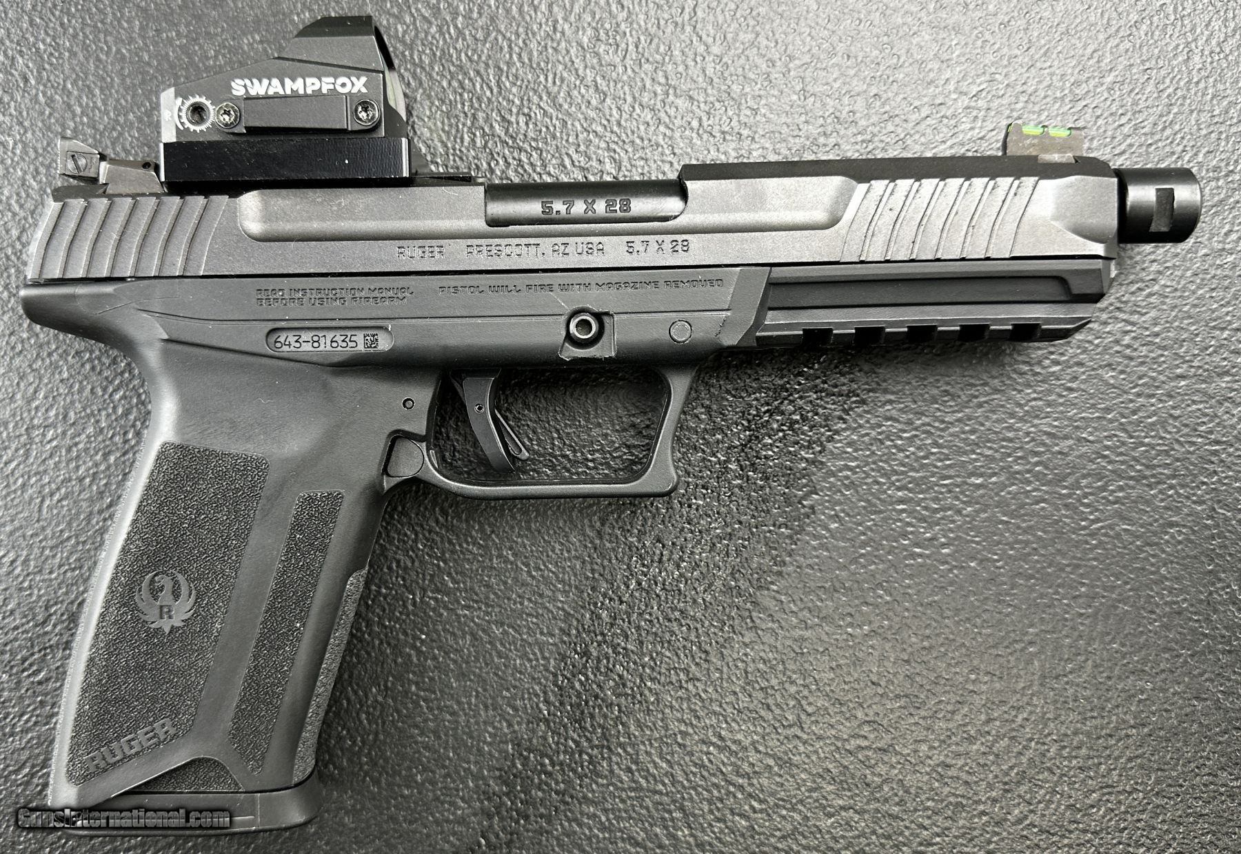 Ruger 5.7 Pistol in 5.7 x 28, Red-Dot installed, with three (3) 20 round Magazines and a new DeSantis leather scabbard holster. PRICED TO SELL!