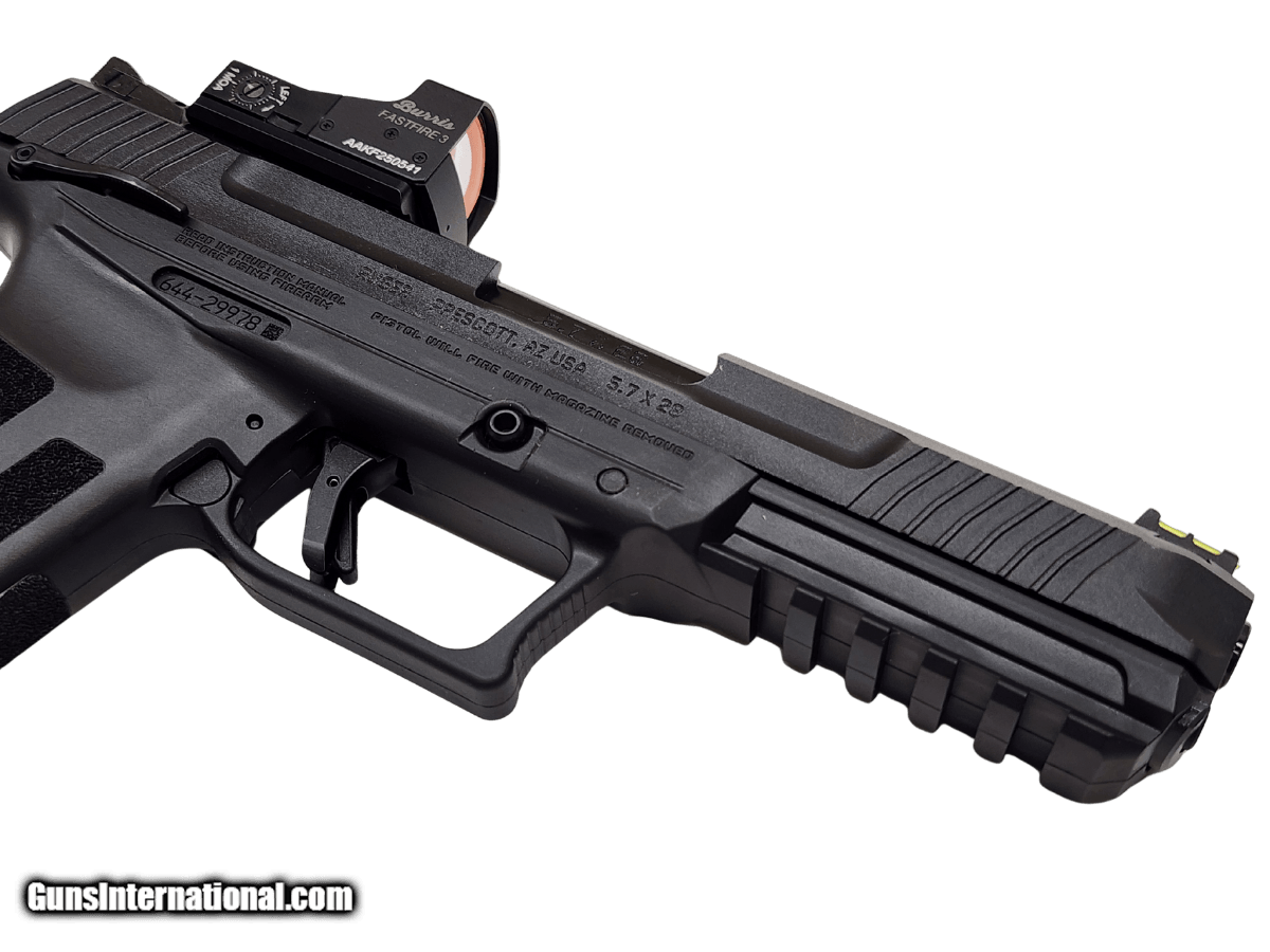 Description: Guns Listing ID: 612687 Ruger-5.7 5.7x28mm Pistol – w/ Burris FastFire 3, Includes (2) 20-Round Magazines and Original Box The Ruger-5.7 chambered in 5.7x28mm is a lightweight, high-performance pistol designed for speed, accuracy, and low recoil. This new firearm comes upgraded with an installed Burris FastFire 3 red dot sight, giving you fast target acquisition right out of the box with no additional setup required. Featuring a slim, ergonomic frame and Ruger’s secure-grip texture, the Ruger-5.7 is comfortable to shoot and easy to control. The 5.7x28mm cartridge offers high velocity with minimal recoil, making this pistol an excellent choice for range use, home defense, or shooters looking for a modern, high-capacity handgun with optic-ready capability. This package includes: Installed Burris FastFire 3 red dot sight (2) Factory 20-round magazines Manufacturer: RUGER Model: 57 Caliber Info: 5.7X28MM Condition: Used - Non-Certified Barrels: 4.94" BARREL Action: SEMI AUTOMATIC Weight: 1.5 LBS. Price: $699.99 Contact Seller |