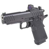 The Springfield Hellcat Pro Comp OSP is a compact 9mm pistol featuring an integral compensator to reduce muzzle rise. It has a 3.7-inch barrel and an optics-ready slide. With a capacity of 15+1 or 17+