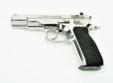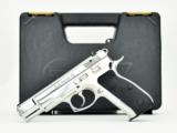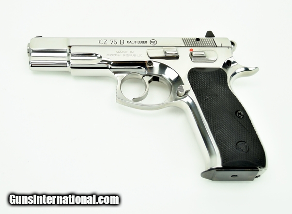 CZ 75 B 9mm caliber pistol. Full size model with polished finish and safety. New