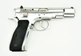 Description: CZ 75 B 9mm caliber pistol. Full size model with polished finish and safety. New SOLD |