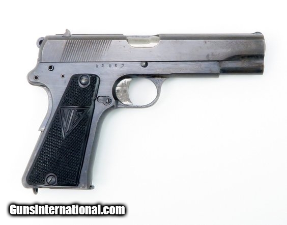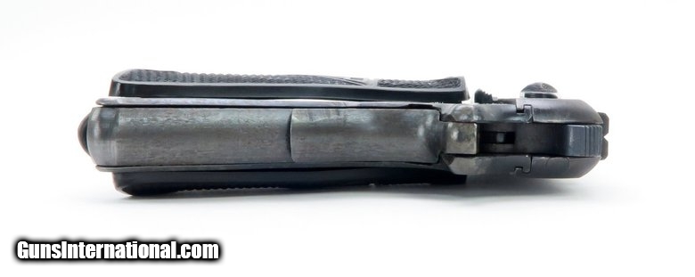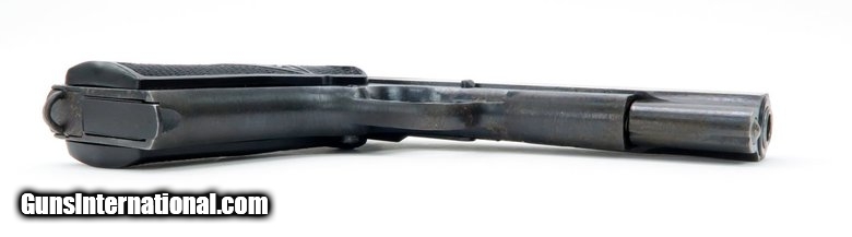 Description: F.B. Radom VIS-35 9mm caliber pistol. Late war production Radom with excellent bore. Late feature pistol with no safety. Some parts, such as back strap and safety, are semi-finished for expediency. Slide has no serial number when examined through the magazine well with the slide in forward position. Gun has about 70% blue parts. Numbers are matching.