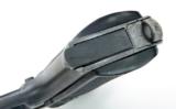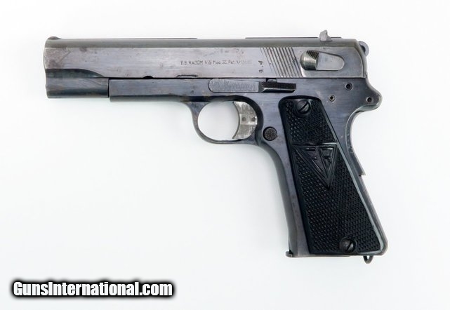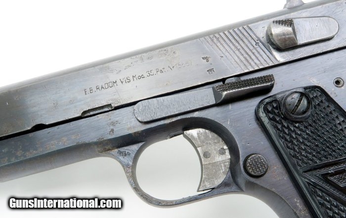 F.B. Radom VIS-35 9mm caliber pistol. Late war production Radom with excellent bore. Late feature pistol with no safety. Some parts, such as back strap and safety, are semi-finished for expediency. Slide has no serial number when examined through the magazine well with the slide in forward position. Gun has about 70% blue parts. Numbers are matching.