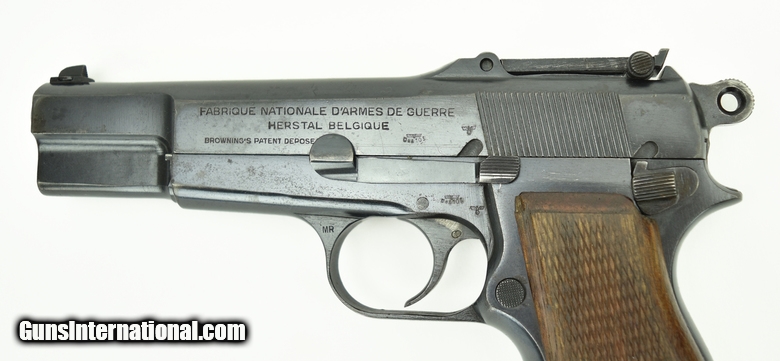 FN High-Power 9mm caliber pistol. FN High Power with Nazi Waffenamts (early Issue WAA103) Excellent bore, action works perfectly. Tangent Sight. Grips are good plus to very good. Gun has approximately 93-95% blue. Very collectable wartime FN with German Army Waffenamts.