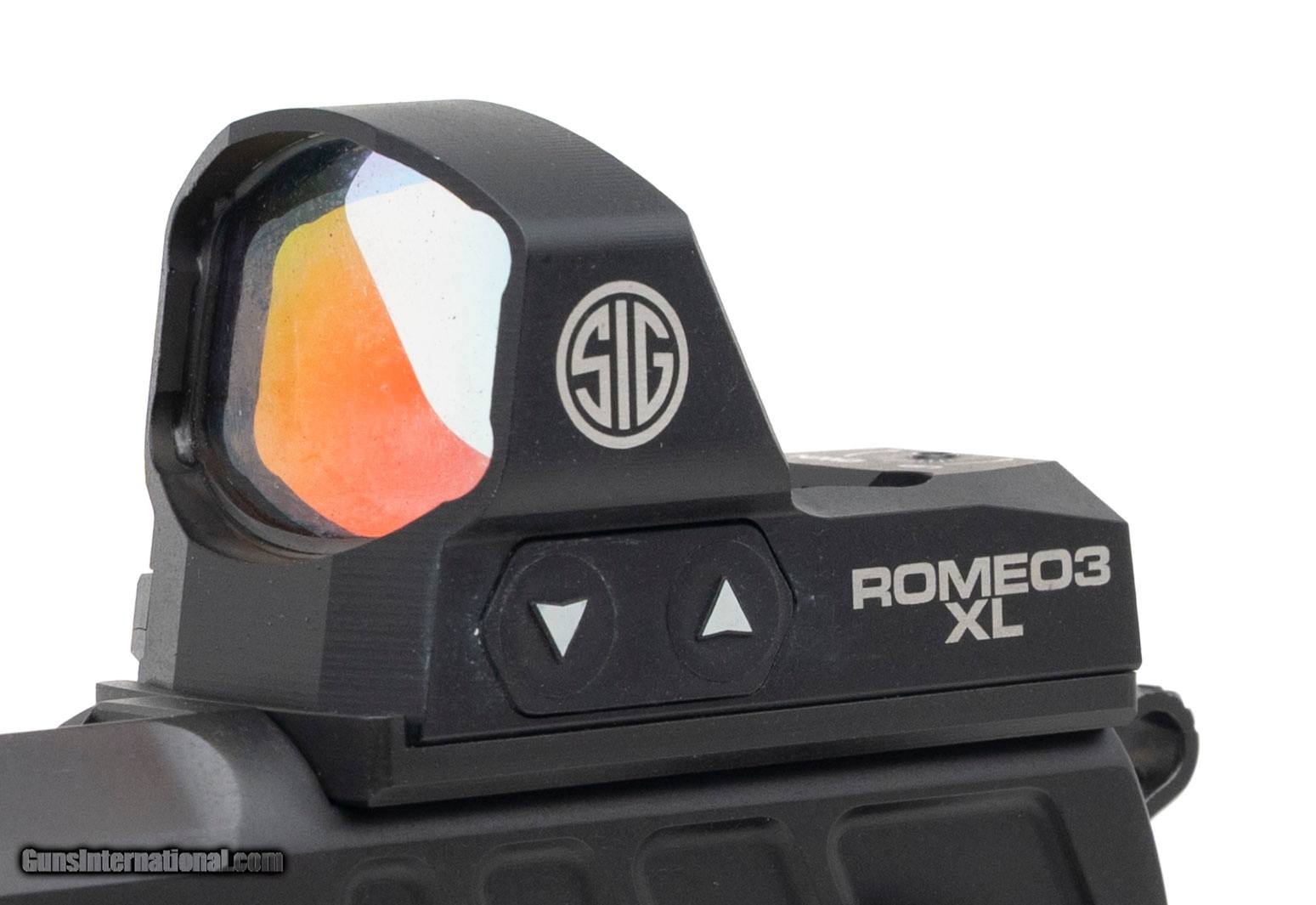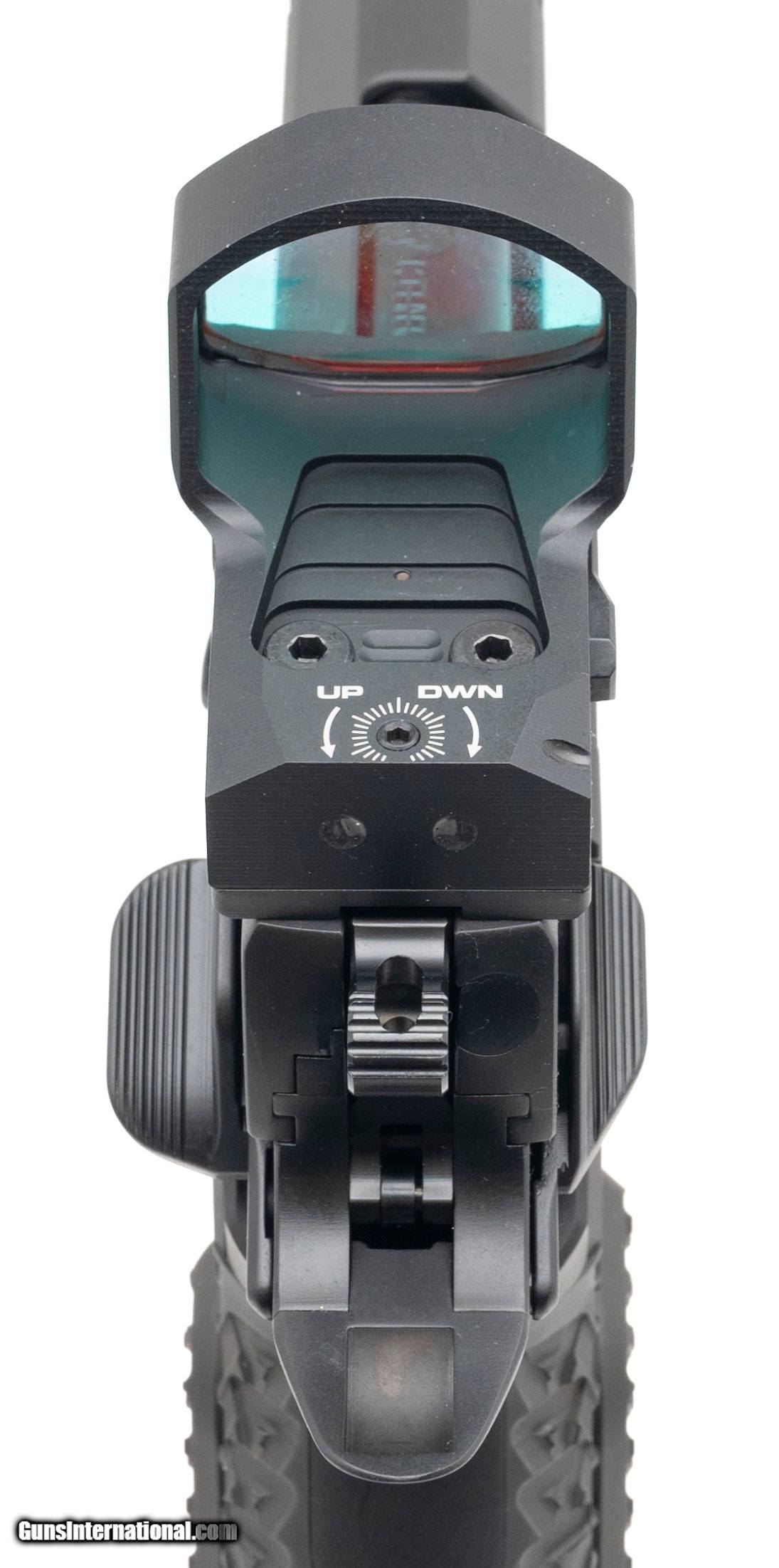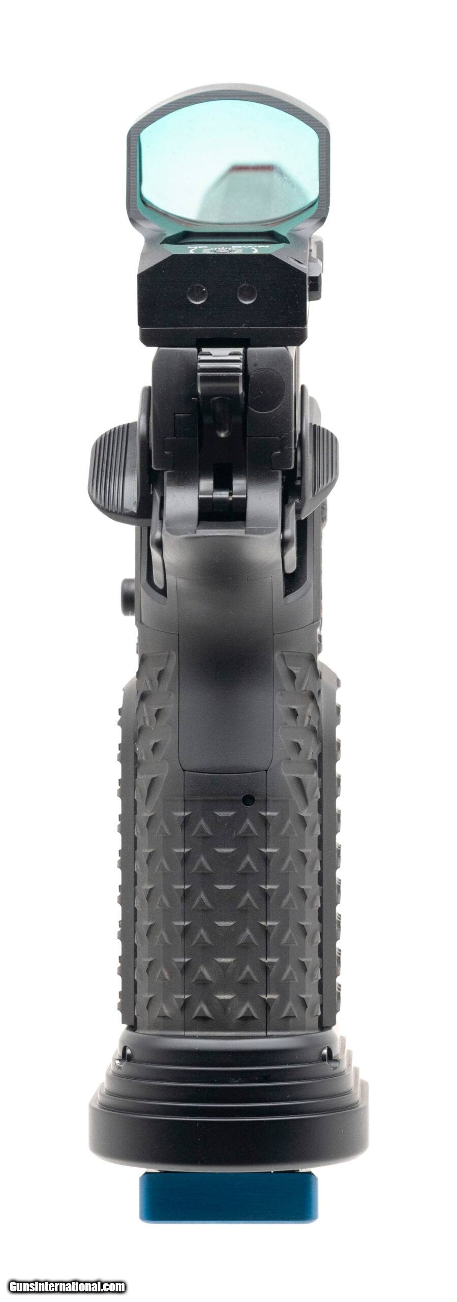 Description: "SN: AE4425. Modern production, 9mm with a 4.6"" DLC coated barrel w/compensator. Bore is bright with strong visible rifling. Premium 2011 style performance pistol with a Sig Romeo3 XL red dt optic, aluminum grip module w/palm swell & step panels, blue flat-faced trigger w/2LB weight, and a flared magwell. Near excellent condition with Atlas carry bag and two extra magazines. Price: $7,500.00 Contact Seller |