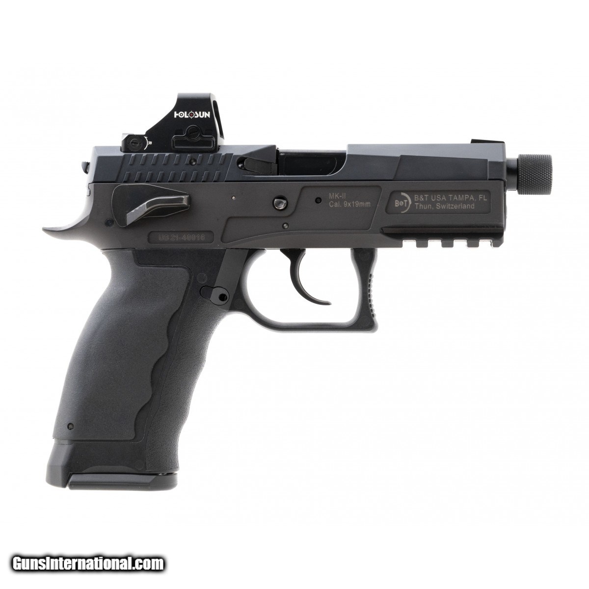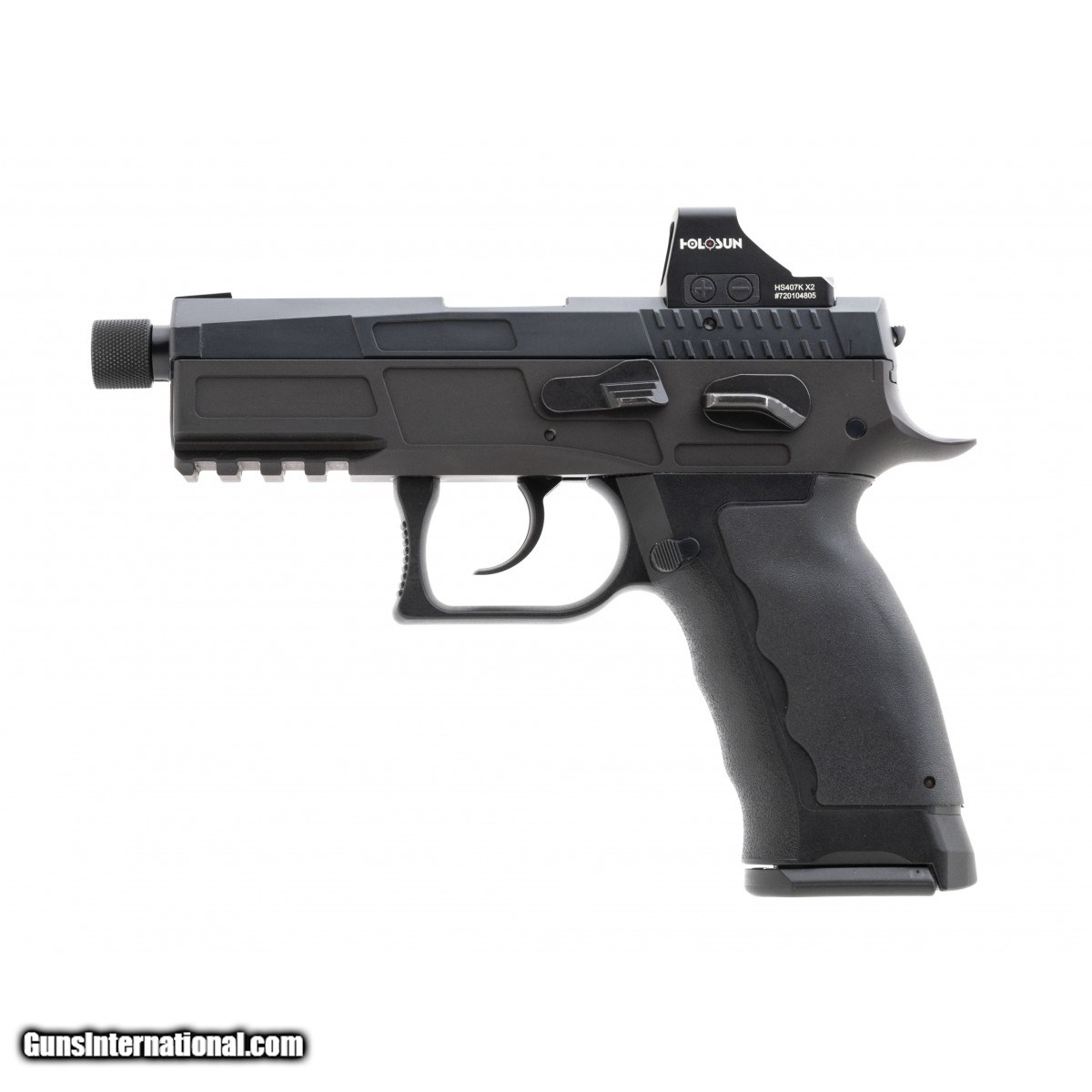 Swiss-made full size pistol with threaded barrel, micro red dot milled slide, and Holosun 407K red dot. Overall excellent condition with holster and bag.