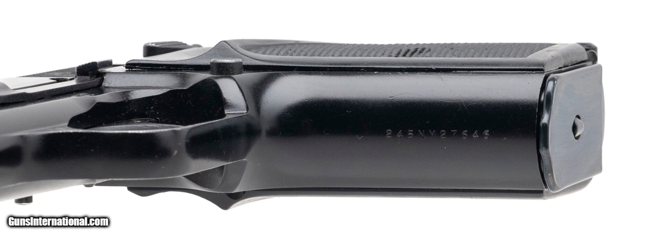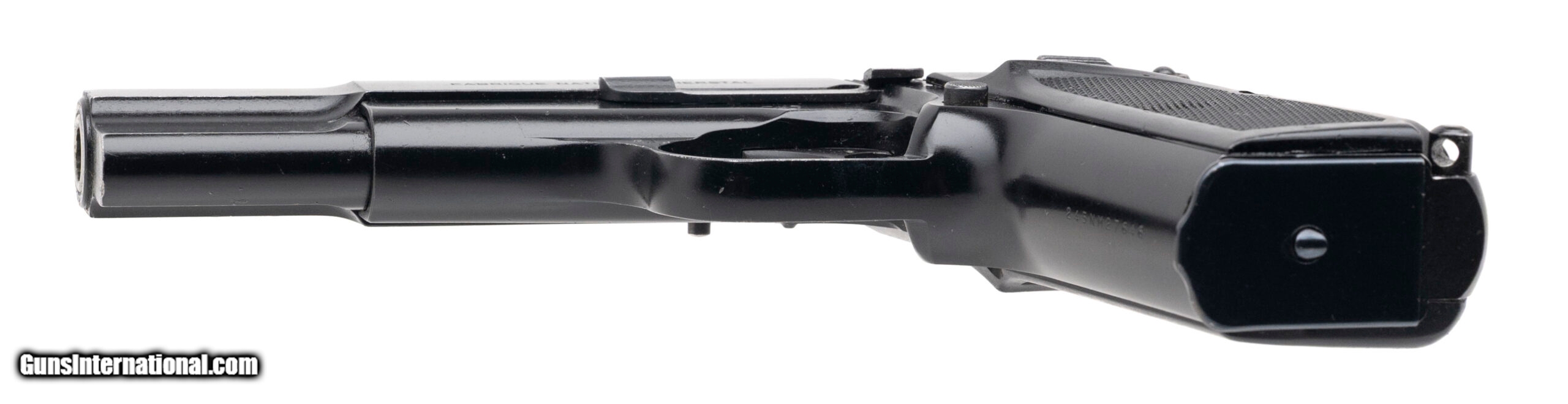 Description: "SN: 245NM27646. Made in 1990, 9mm with a 4.7"" barrel. Bore is very good. Late production Belgian made single-action pistol with an ambidextrous manual thumb-safety, matte black finish, and black plastic grips. Finish shows moderate marks throughout. Overall condition is very good. Price: $1,149.95 Contact Seller |