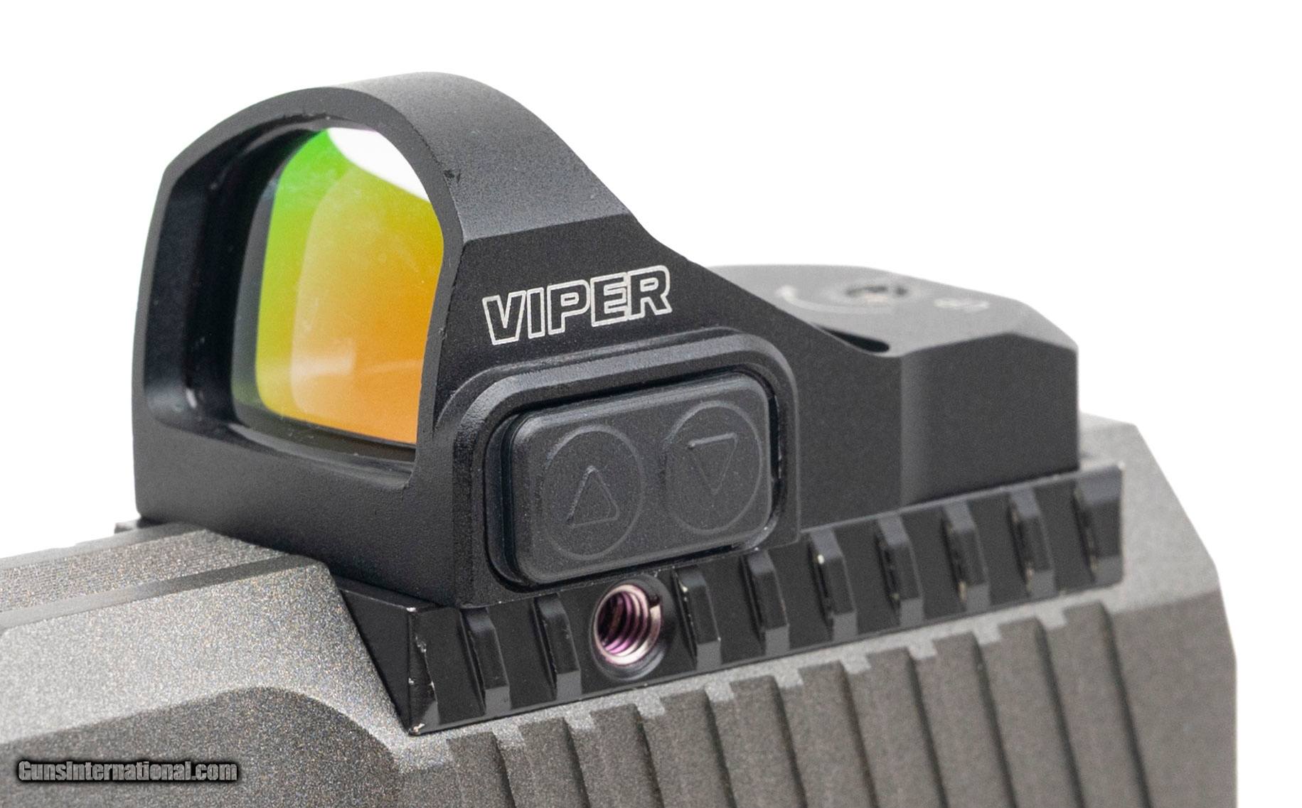 Description: "SN: 17BC10438. Modern production, 9mm with a 5.2"" barrel. Bore is excellent. Full size polymer frame striker-fired pistol with a Vortex Venom red dot sight, fiber-optic front sight, lightening cut slide, accessory rail, and tungsten gray cerakote finish. Overall condition is excellent. Includes an additional magazine, 4 optic adapter plates, original holster, and original case. Price: $749.95 Contact Seller |
