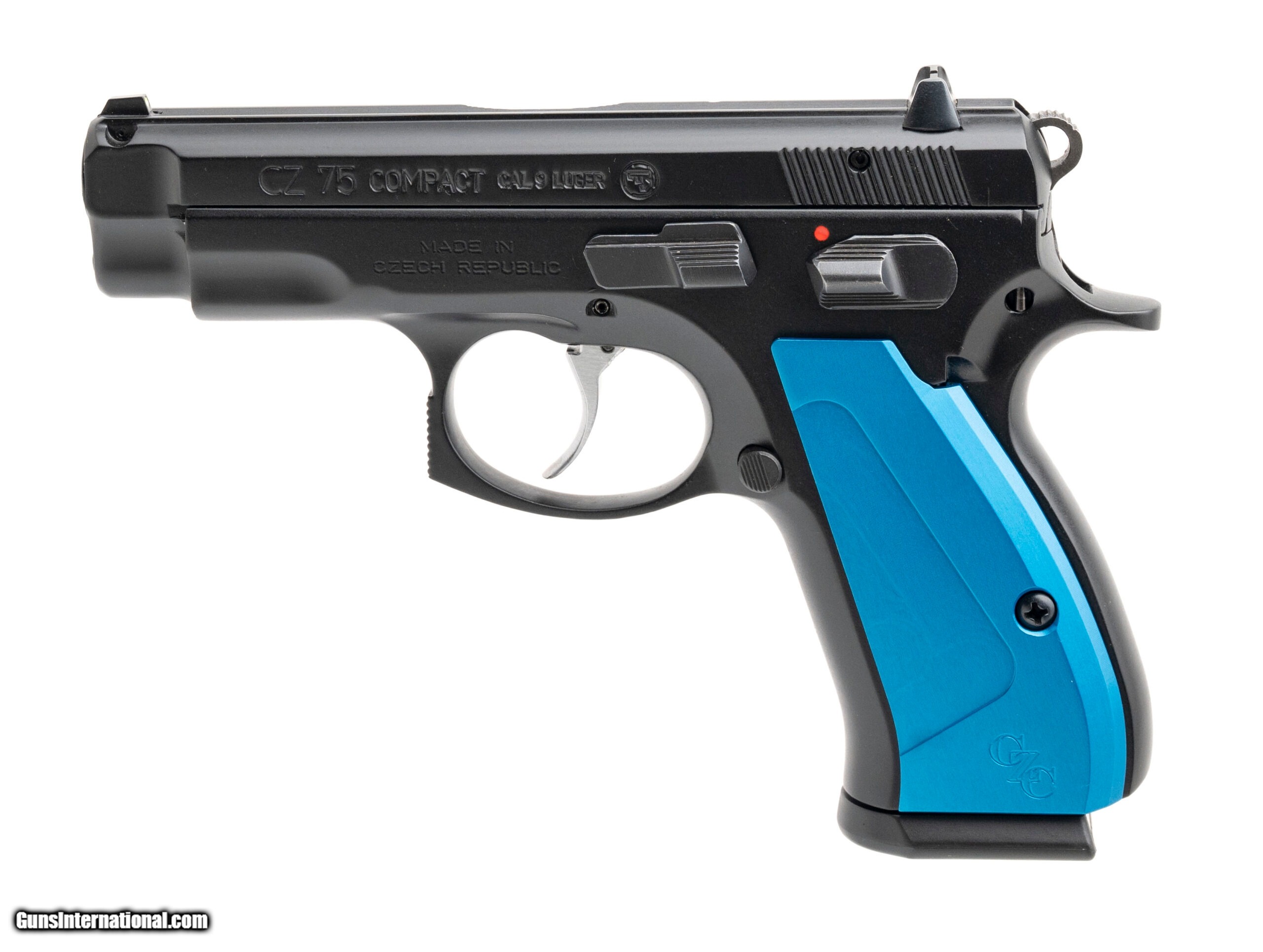 Description: "SN: C587838. Modern production, 9mm with an 3.7"" barrel. Bore is bright with strong rifling. Czech made compact double action pistol with blue CZ Custom alloy grips. Overall condition is excellent. Comes with case and an extra magazine. Price: $850.00 Contact Seller |