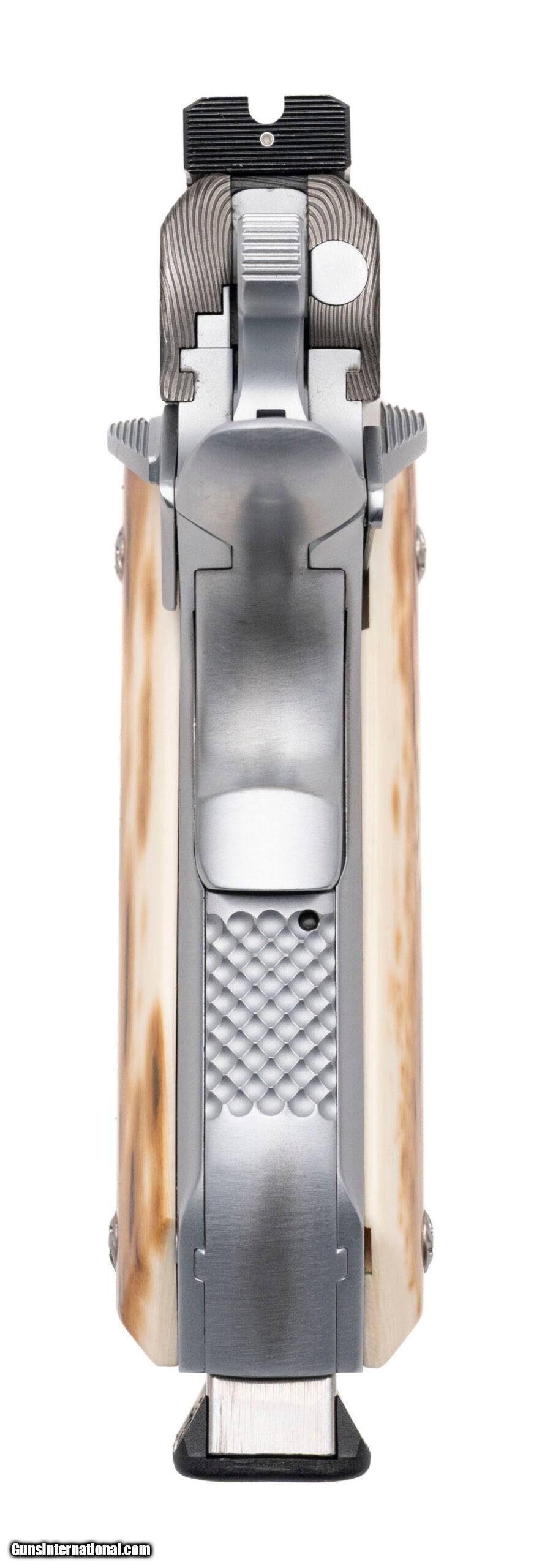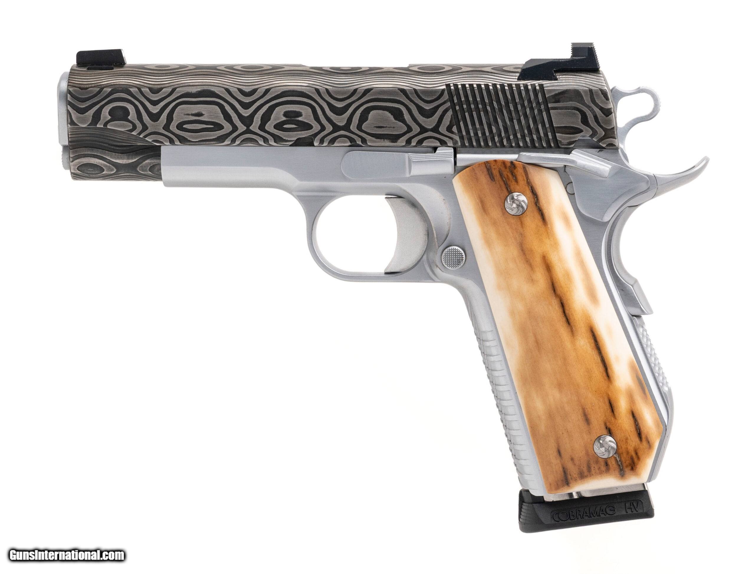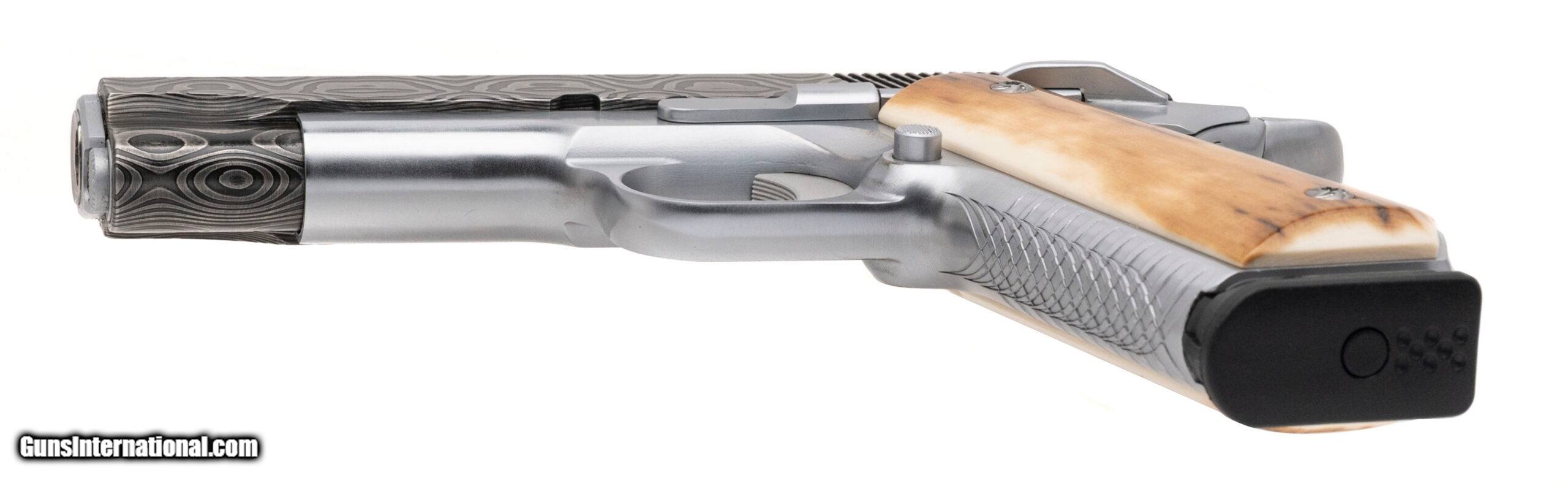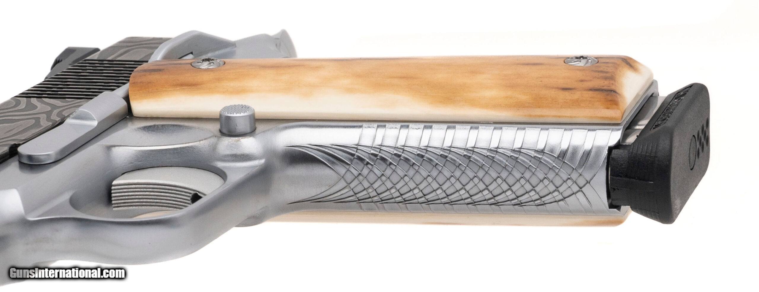Description: "SN: JSM-107. Custom (Of Georgetown Texas) 9mm 1911, Single Stack Pistol. Sporting A 4"" Damascus Slide, Barrel with Gorgeous Giraffe Bone Grips and a Bobbed Tail mainspring housing and Beavertail. Blackout rear target sights with a front Tritium Night Sights. Includes: Hard Case with two Magazines. Condition One of a Kind. (DALLAS LOCATION) Price: $3,500.00 Contact Seller |