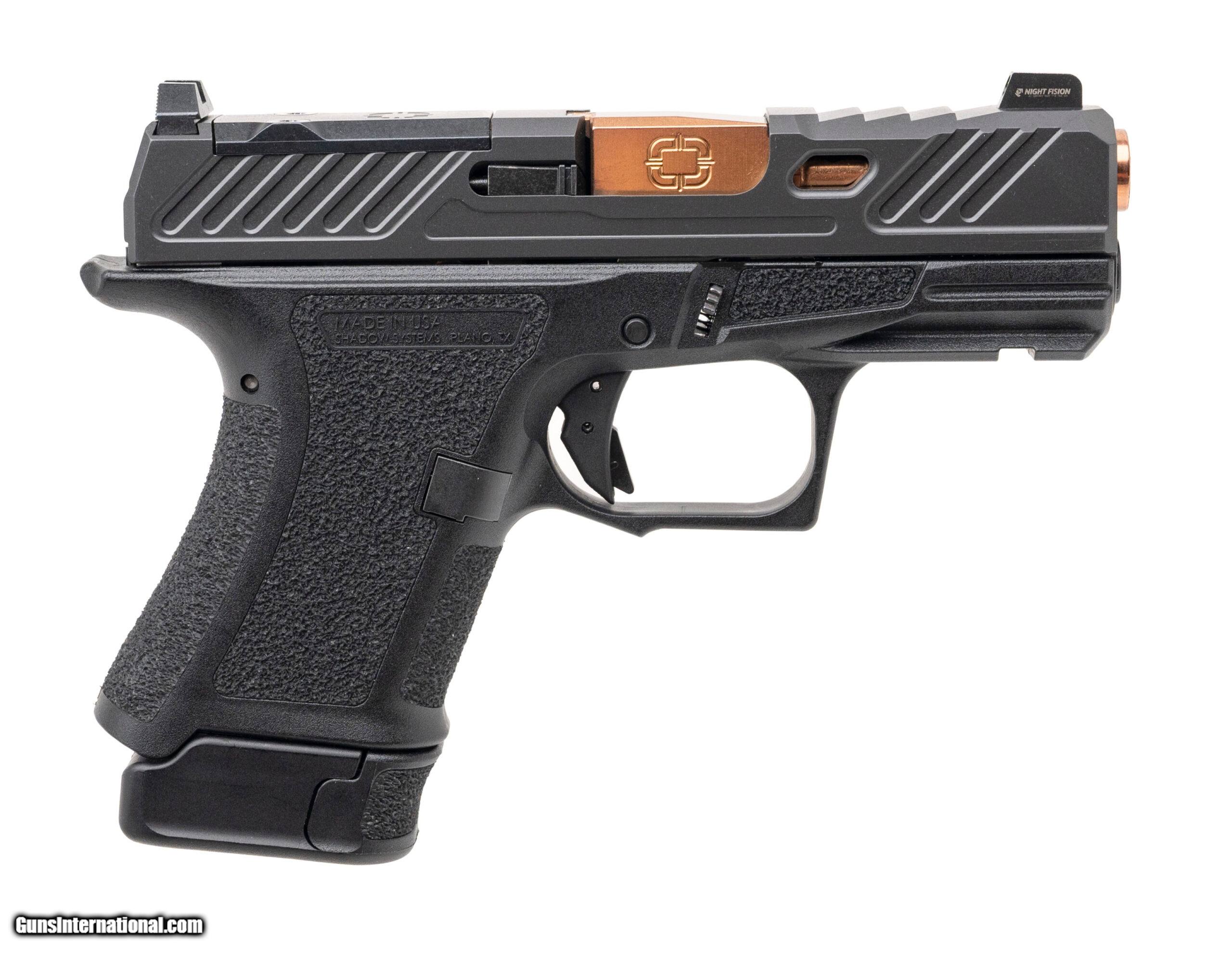 Description: "SN: S046740. Modern production, 9mm with a 3.4"" bronze spiral fluted barrel. Bore is excellent. Sub-compact striker-fired pistol with an optics ready slide, tritium front sight, lightening cut slide, accessory rail, nitride finish, and black polymer frame. Finish shows light marks. Overall condition is near excellent. Includes 3 additional magazines, original range bag, and original box. Price: $799.95 Contact Seller |