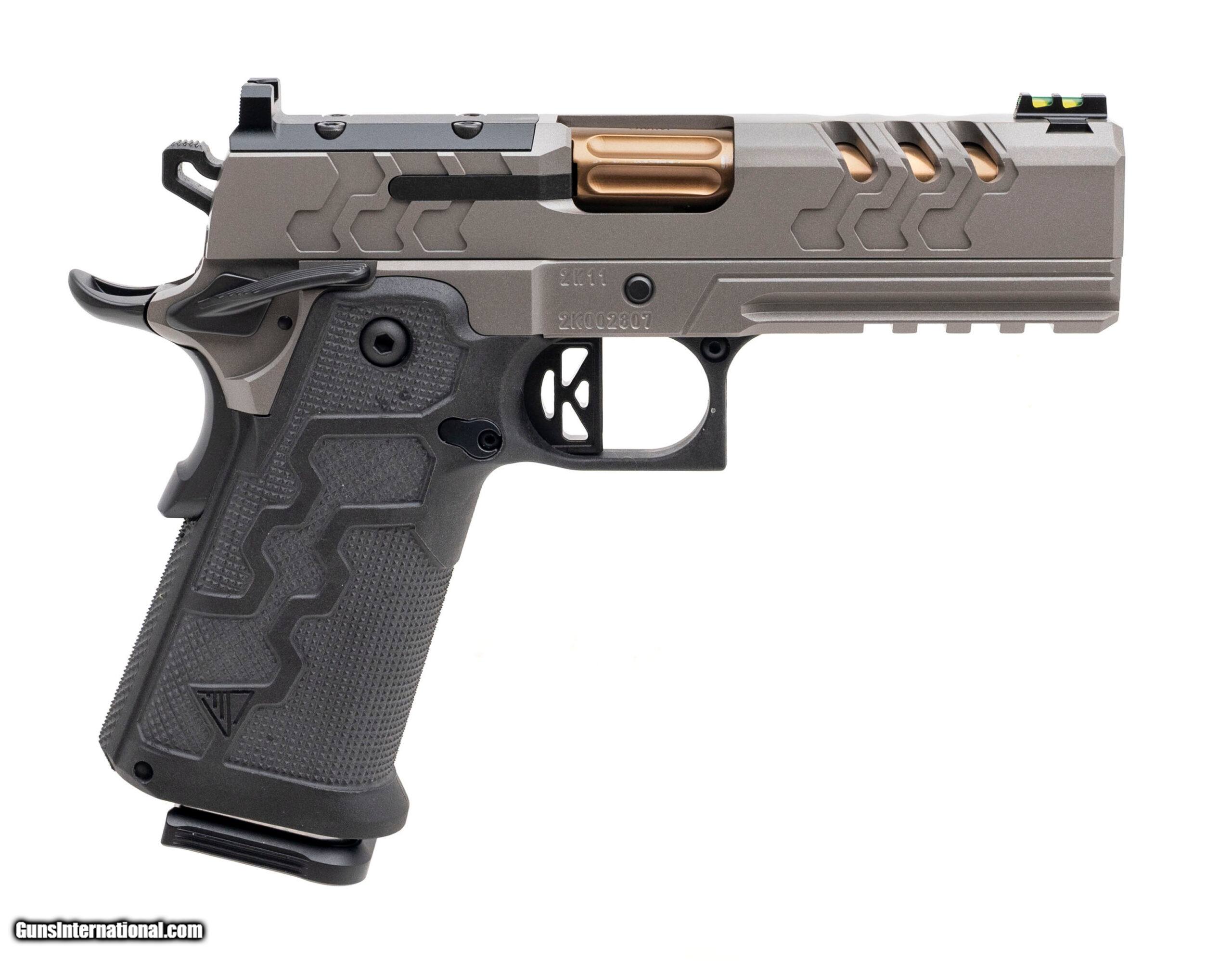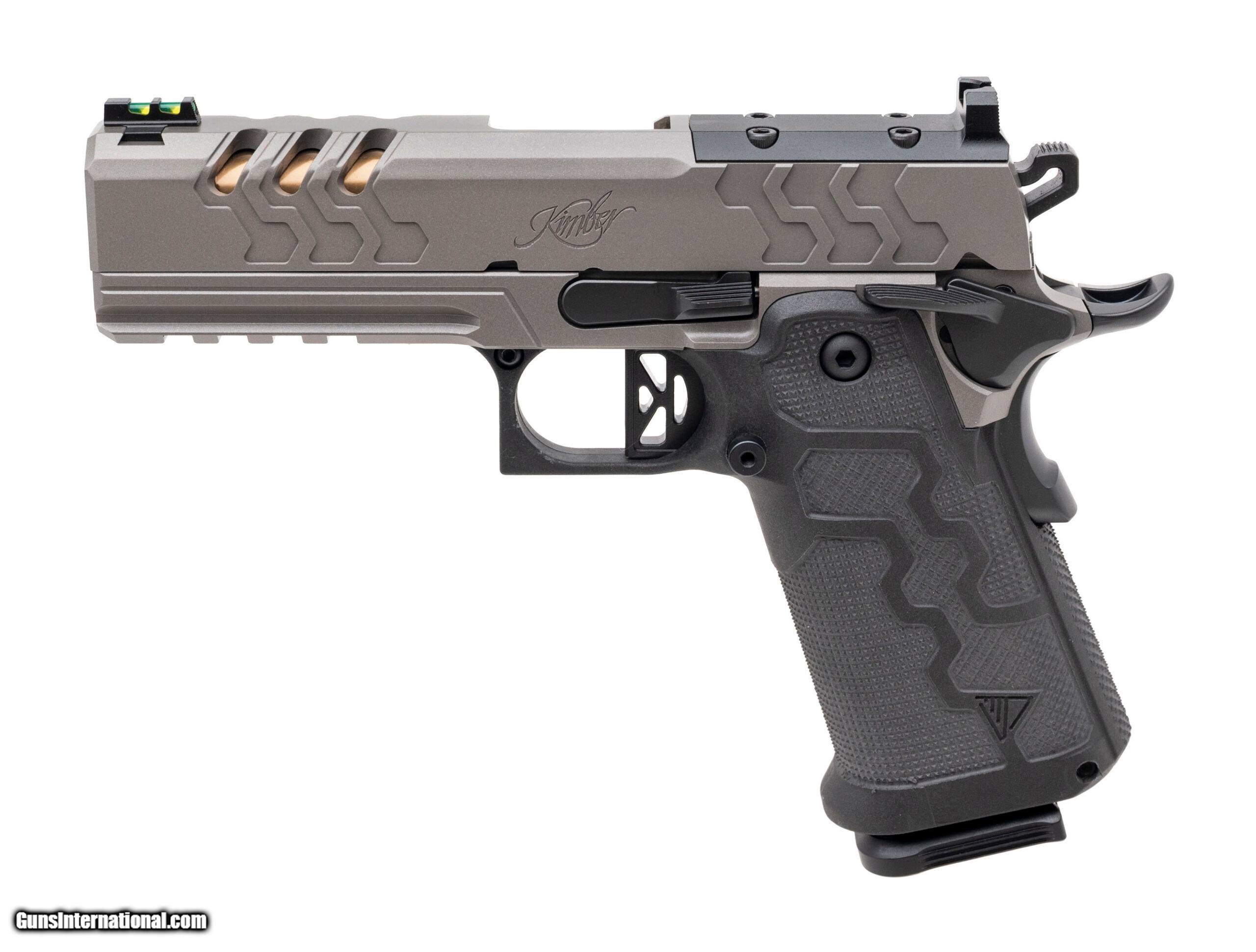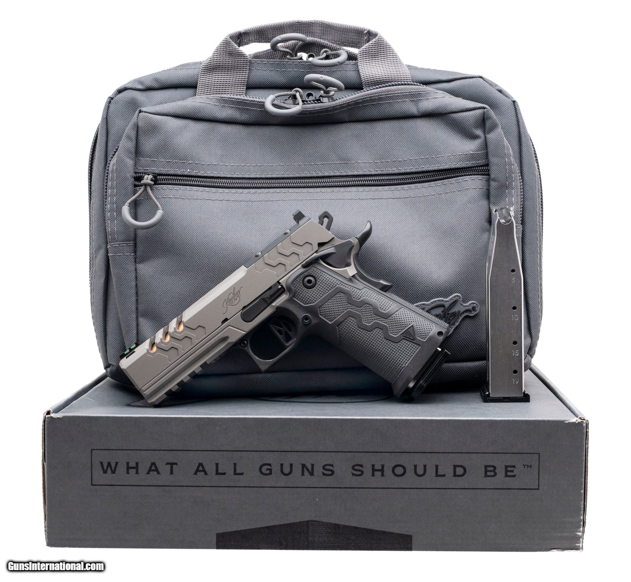 Description: "Double Stack 1911 Style Pistol with a 4.25"" Coyote PVD Polished Bull Barrel. Commander Size, Stainless Steel/Matte KimPro Granite Finish, Aluminum Grip Module, Optic Ready, GT Trigger, Lightning Cuts, and Accessory Rail. Includes 2-19rd Magazines and a Carry Bag. NEW. UPC: 669278350585 (STOCK PHOTO) Price: $2,249.95 Contact Seller |