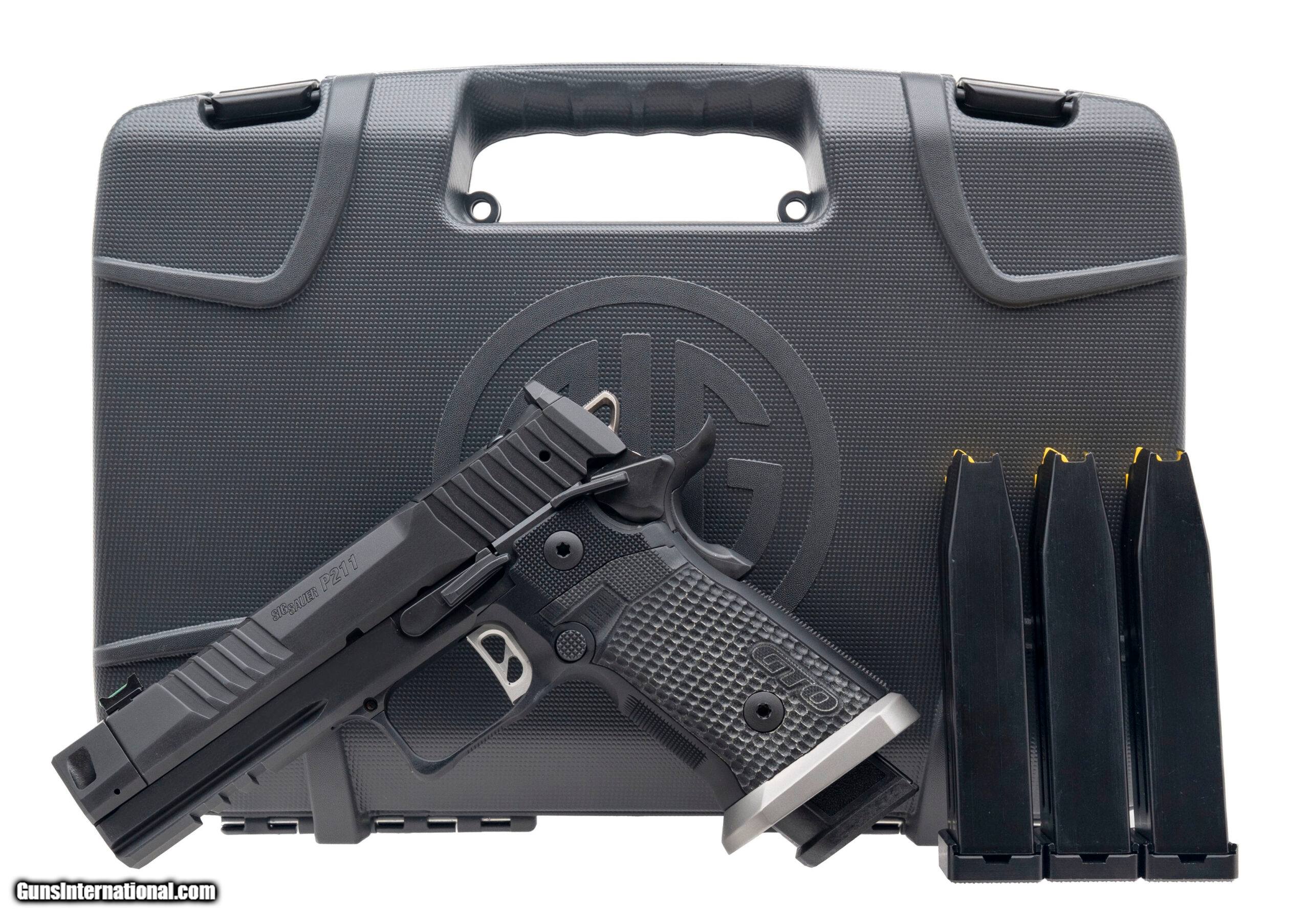 Description: "Full Size Metal Frame Pistol with a 4.4"" Bull Barrel w/MAC3HD Compensator. Sig-Loc Pro Footprint Optics Ready Slide. Fiber-Optic Front Sight, Straight Pull Trigger, Ambidextrous Magazine Release & Manual Thumb-Safety, Accessory Rail, Black Nitron Finish, and Black G10 Grips. Accepts P320 Magazines. Includes 3-21rd Magazines. NEW. UPC: 798681728077 (STOCK PHOTO) Price: $2,599.95 Contact Seller |