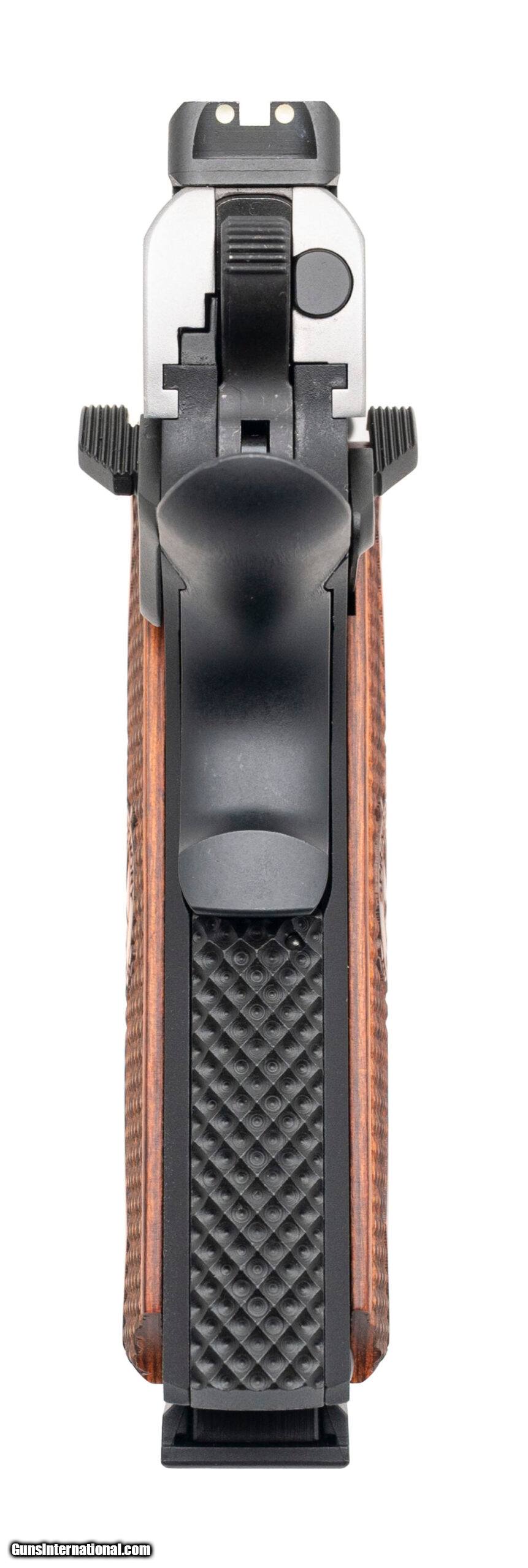 Description: "SN: EMP57870. Modern production, 9mm with a 4"" barrel. Bore is very good. Alloy frame commander size 1911 style pistol with a fiber-optic front sight, ambidextrous manual thumb-safety, two-tone finish, and checkered wood grips. Overall condition is excellent. Includes 2 additional magazines, and original case. Price: $849.95 Contact Seller |