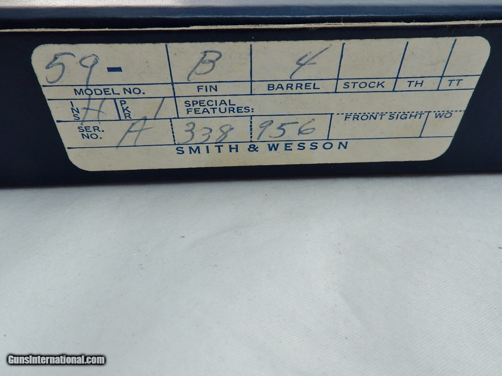 Description: This is a Smith Wesson 59 9mm. This gun is 97% in the box. Serial # is A338xxx. Buyer pays 30.00 shipping. Thank you. 45-11-14 SOLD |