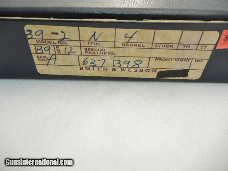 Description: This is a Smith Wesson 39-2 9mm. This gun is 100% new in the box with both magazines. Serial # is A637xxx. Buyer pays 35.00 shipping. Thank you. 30-19-7 SOLD |