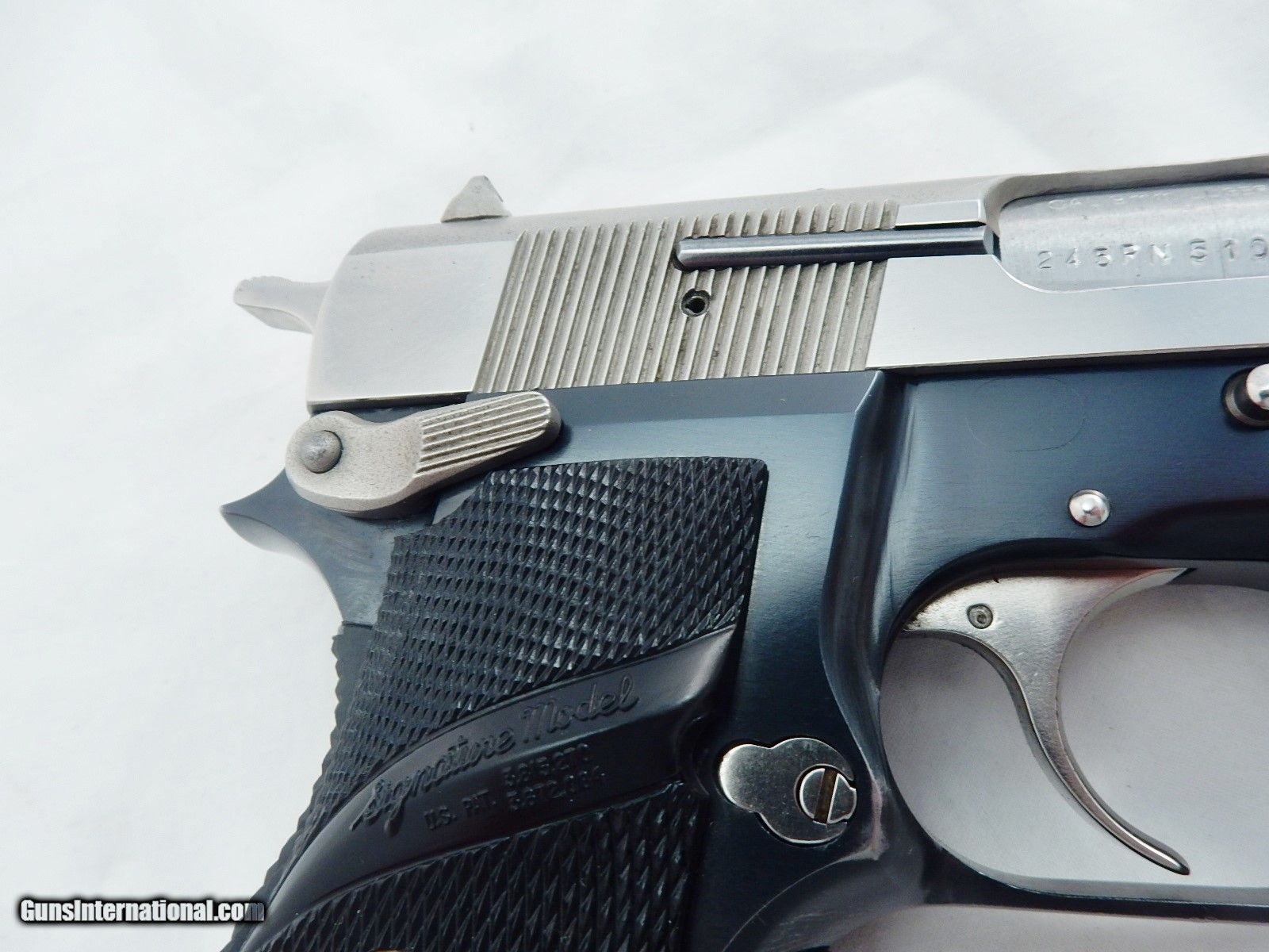 Description: This is a Browning HI Power 9mm. This gun is 98% with no box. This is an aftermarket finish but done very well. Serial # is 245PN51xxx. Buyer pays 30.00 shipping. Thank you. 45-21-12 SOLD |