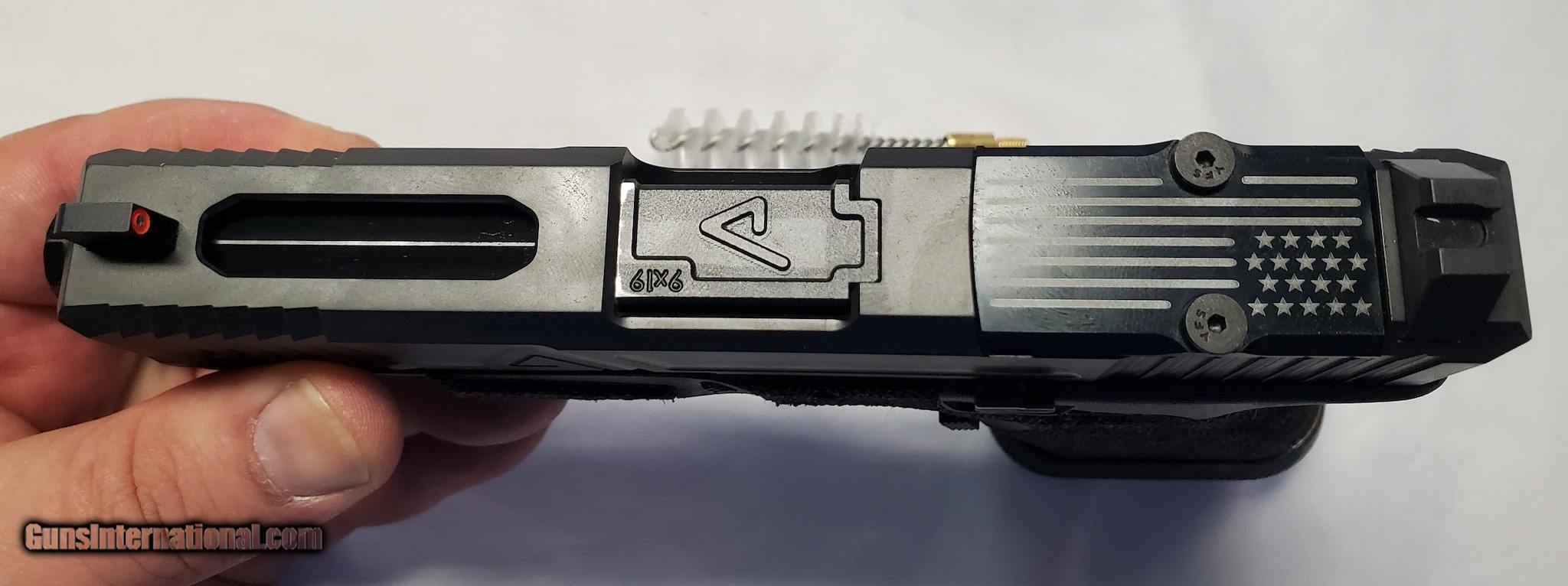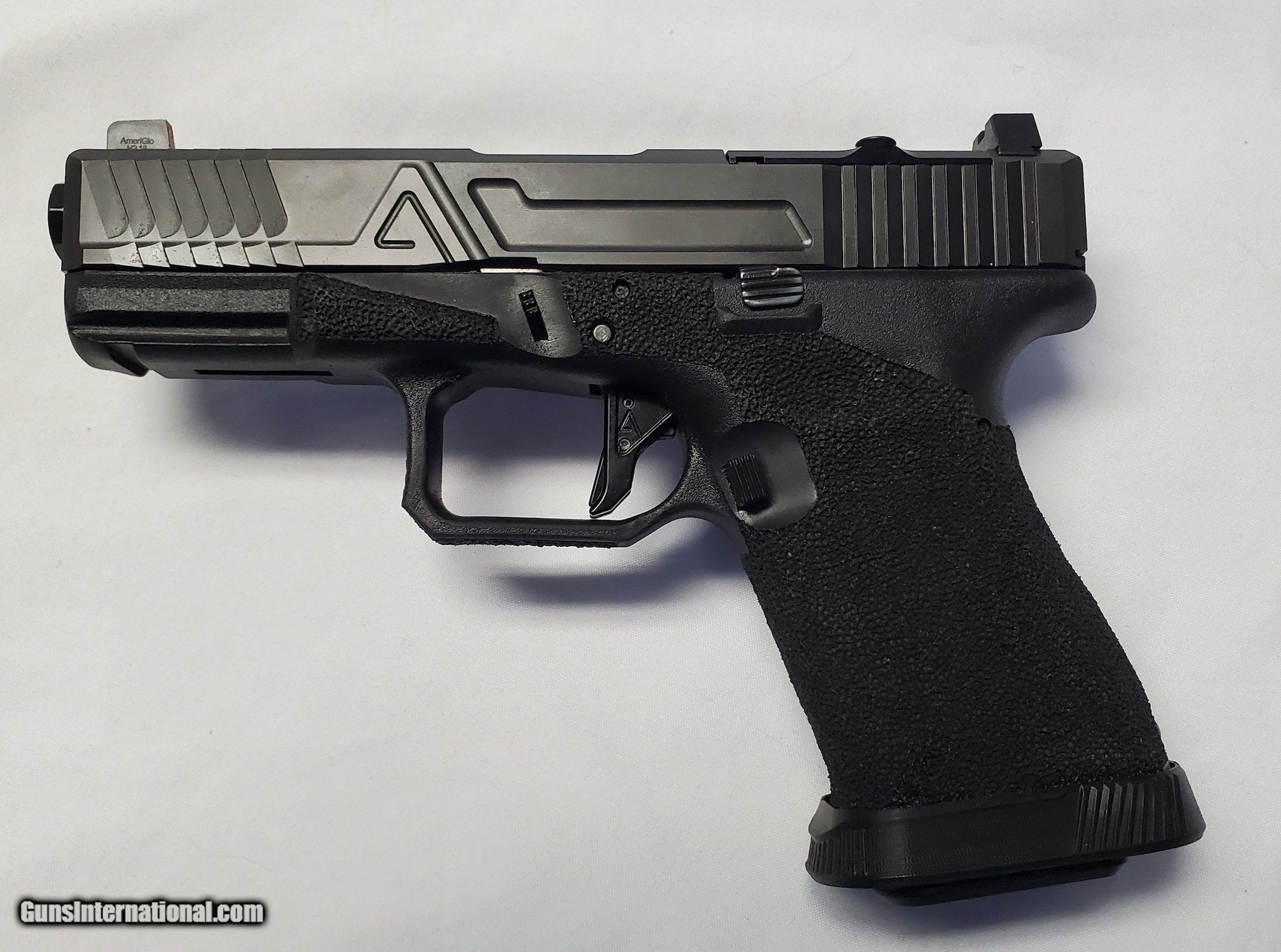 Description: Guns Listing ID: 614446 Agency Arms model 19 (glock variant) semi auto pistol. This sweet gun is loaded with all the best from Agency... Hybrid special slide with optic cut, Agency Arms premier grade match barrel, aluminum DIT trigger, full stipple frame, suppressor height sights, tactical magwell, plus an additional magwell, and the oem barrel and spring. This gun shows minimal wear and is in excellent condition. Don‚‚t miss the opportunity to grab this sweet gun at a huge discount from the original price!! SOLD Manufacturer: AGENCY ARMS Model: 19 Caliber Info: 9 MM Condition: Used - Non-Certified Barrels: 4.02 BARREL Finish: BLACK |
