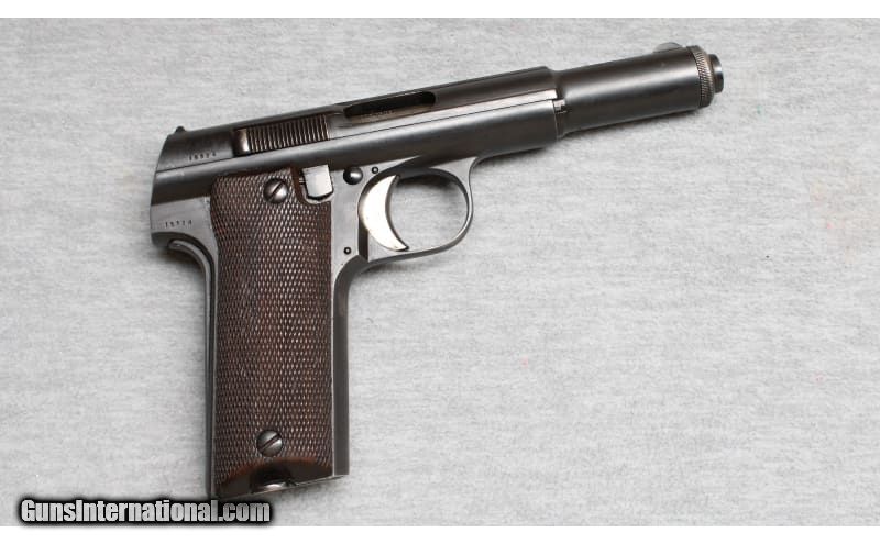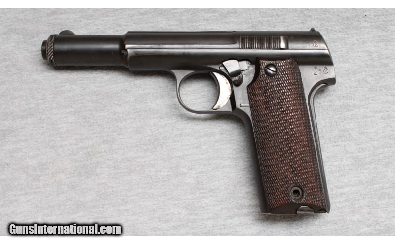 Description: Very good condition, some finish wear, few nicks and scraches, comes with one mag. The Astra model 400 was a Spanish service pistol produced by weapons manufacturer Astra-Unceta y Cia SA as a replacement for the Campo-Giro 1913/1916, which had also been chambered in 9mm Largo. It was the standard issue sidearm in the Spanish Army during the Spanish Civil War and also saw service in Germany during World War II. The pistol was mass-produced and many examples still exist today. The Spanish Navy, along with the German Luftwaffe and the Chilean Navy primarily used the smaller variant Astra 300 and the Wehrmacht later altered the Astra 400 into the Astra 600 to better handle the 9mm Luger. The 400 was considered heavy as in order to handle the power of the 9mm Largo round in a blowback action the 400 had a reinforced slide and tough spring. 9mm Largo SOLD Chambers: Semi auto Metal Condition: Very good Bore Condition: Bright Barrels: 5 Triggers: Factory Butt Pad: Wood grips Sights: Fixed sights Item Location: La Vista, NE |